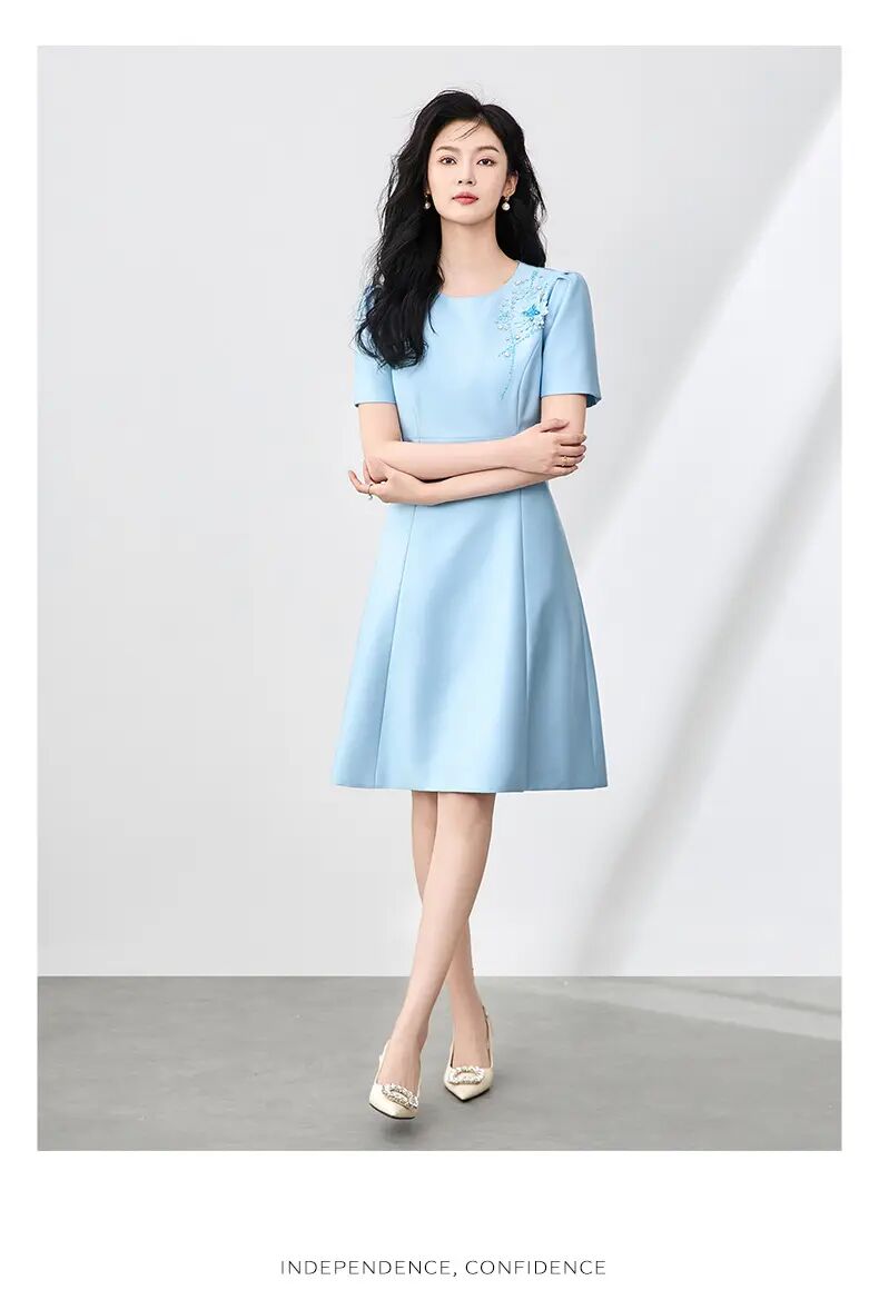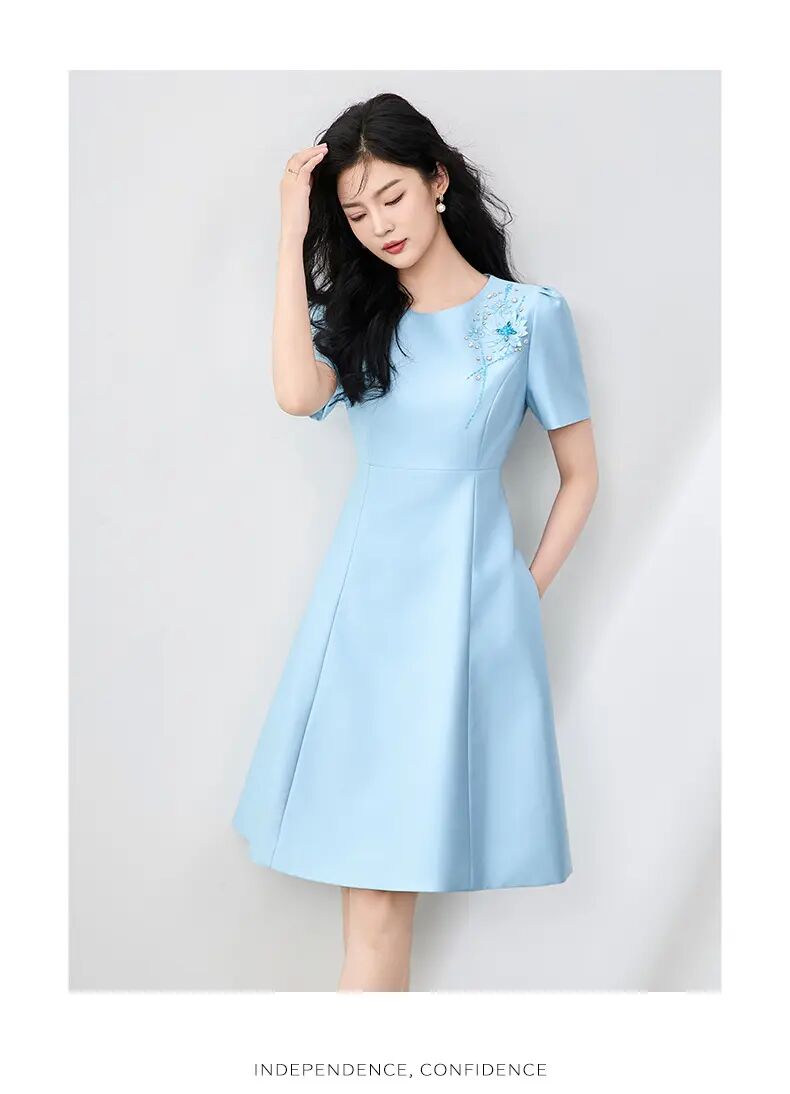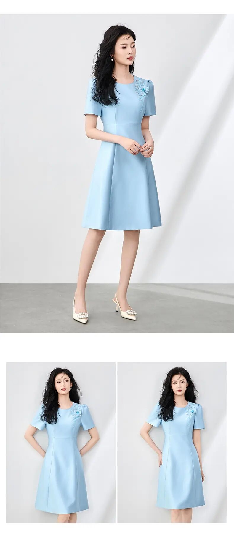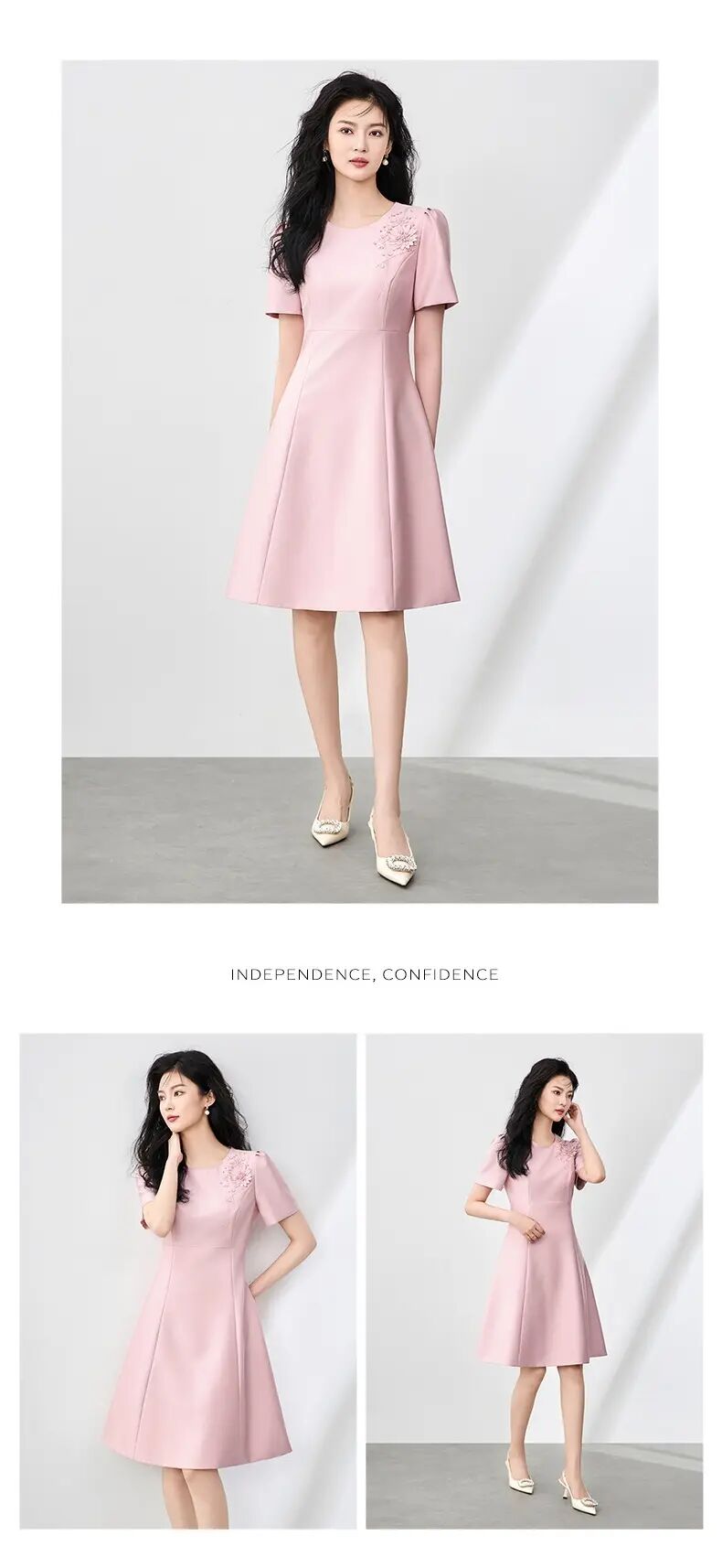 「高货wl」全新升级【铂金会员349/天猫469/差价120】(01621)洛诗琳轻奢气质立体镶钻花连衣裙2025夏季洋气优雅轻礼服裙01621