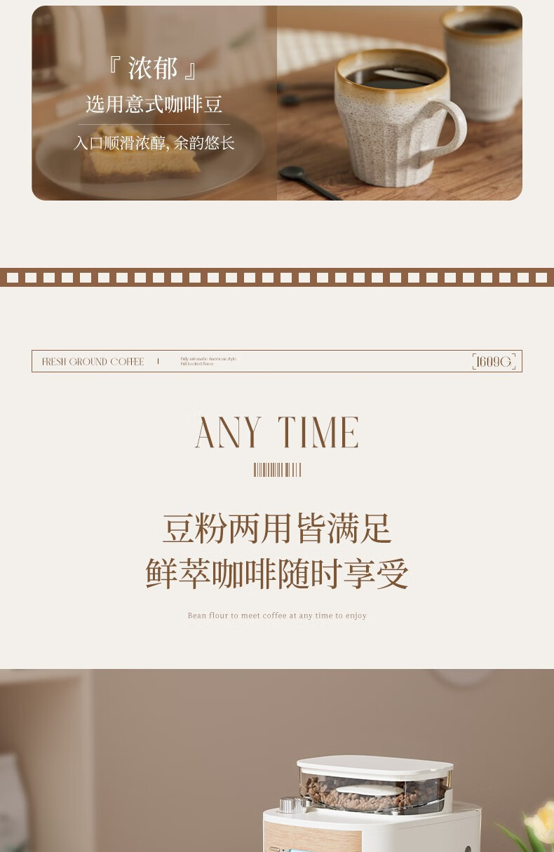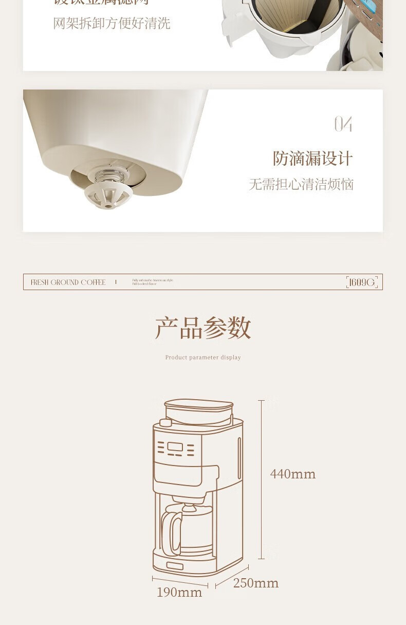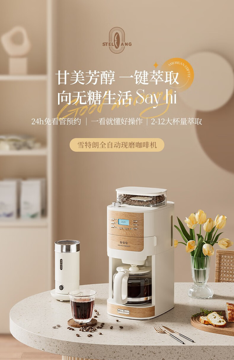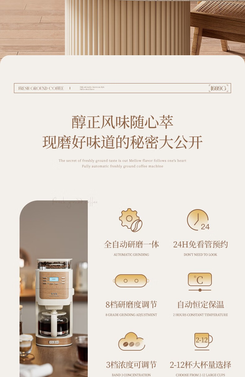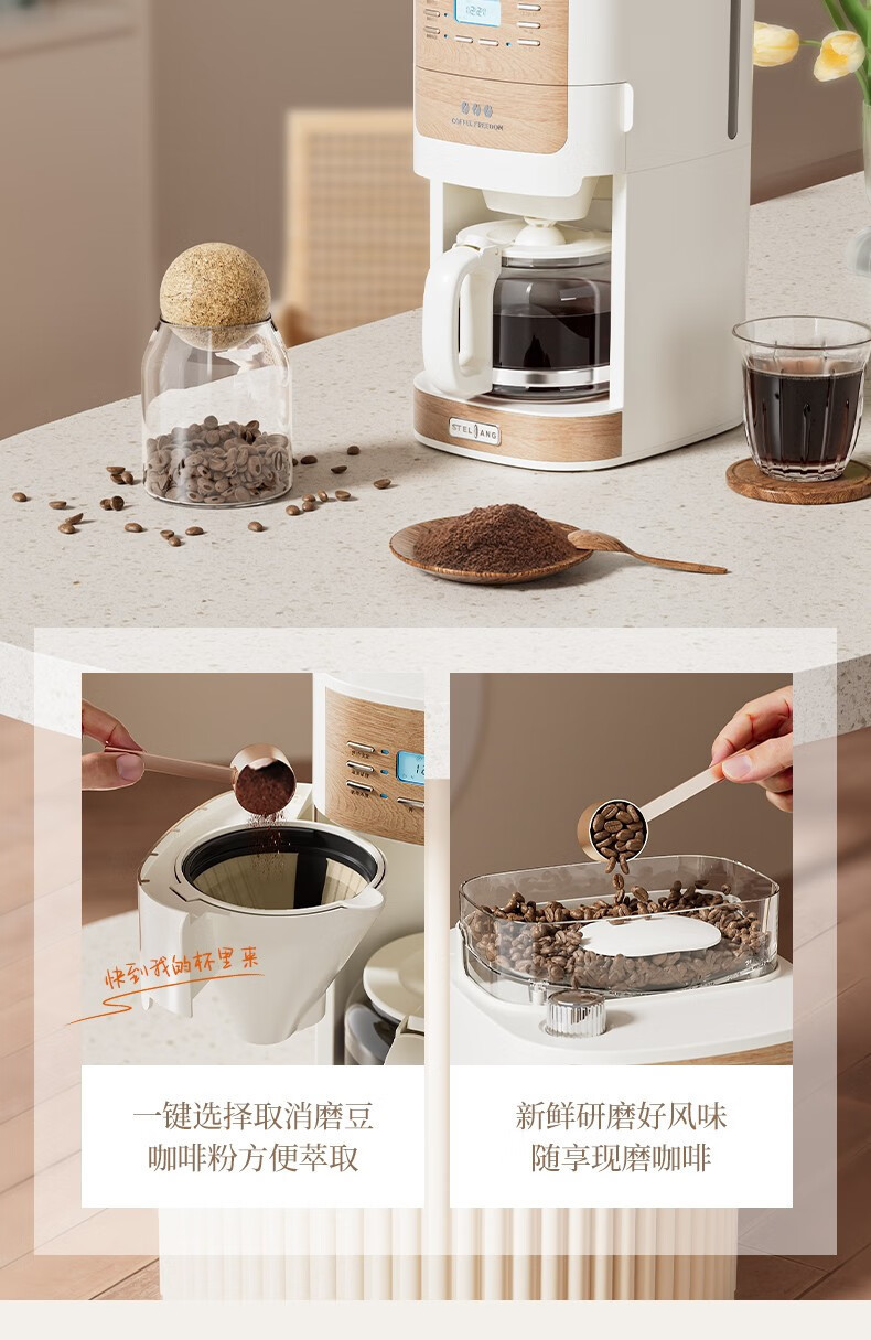 【雪特朗美式咖啡机】磨豆一体家用小型咖啡机 滴漏恒温设计 多档研磨调节