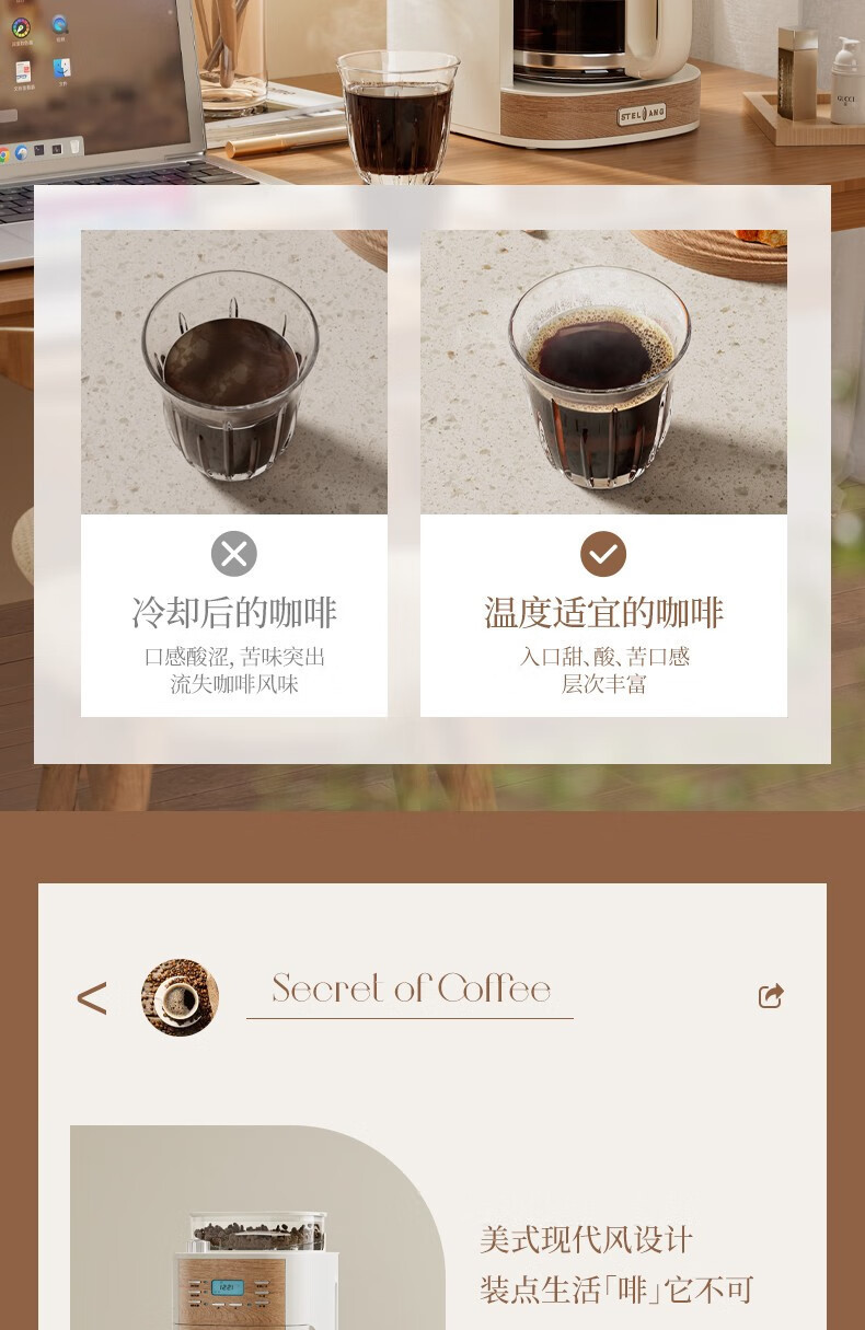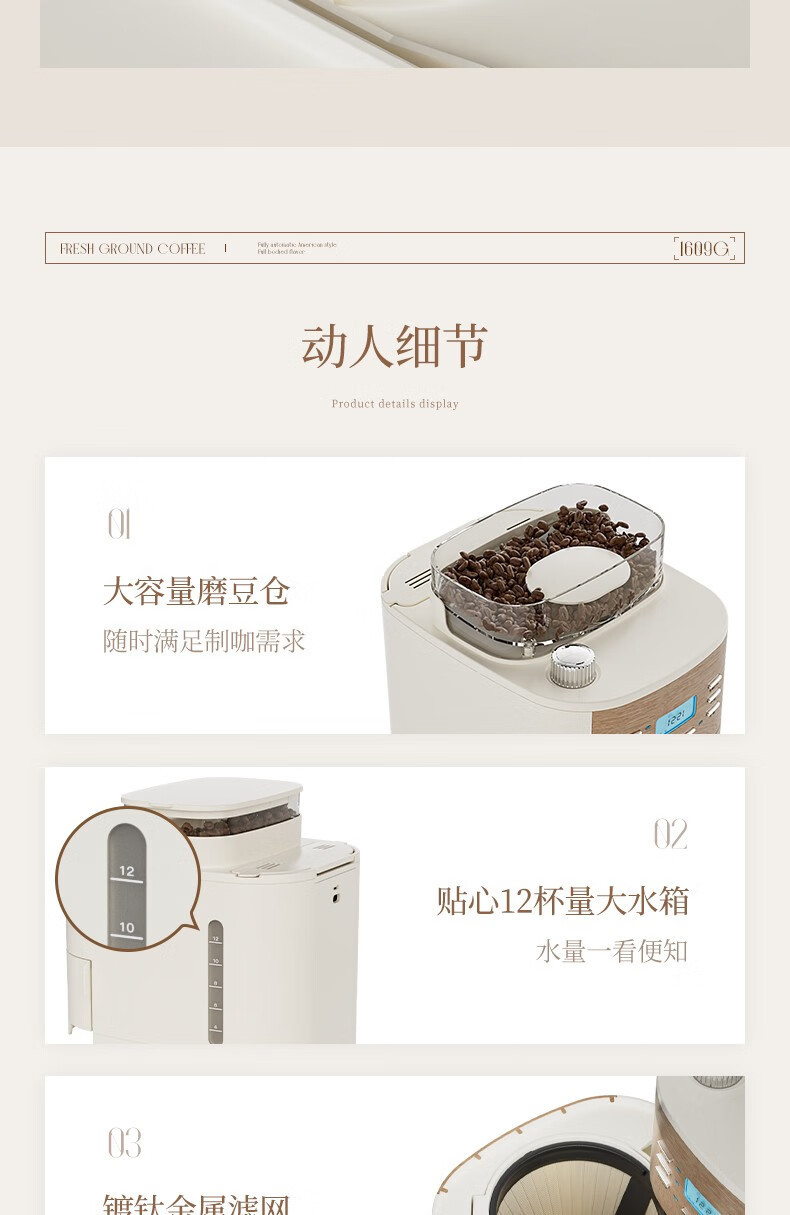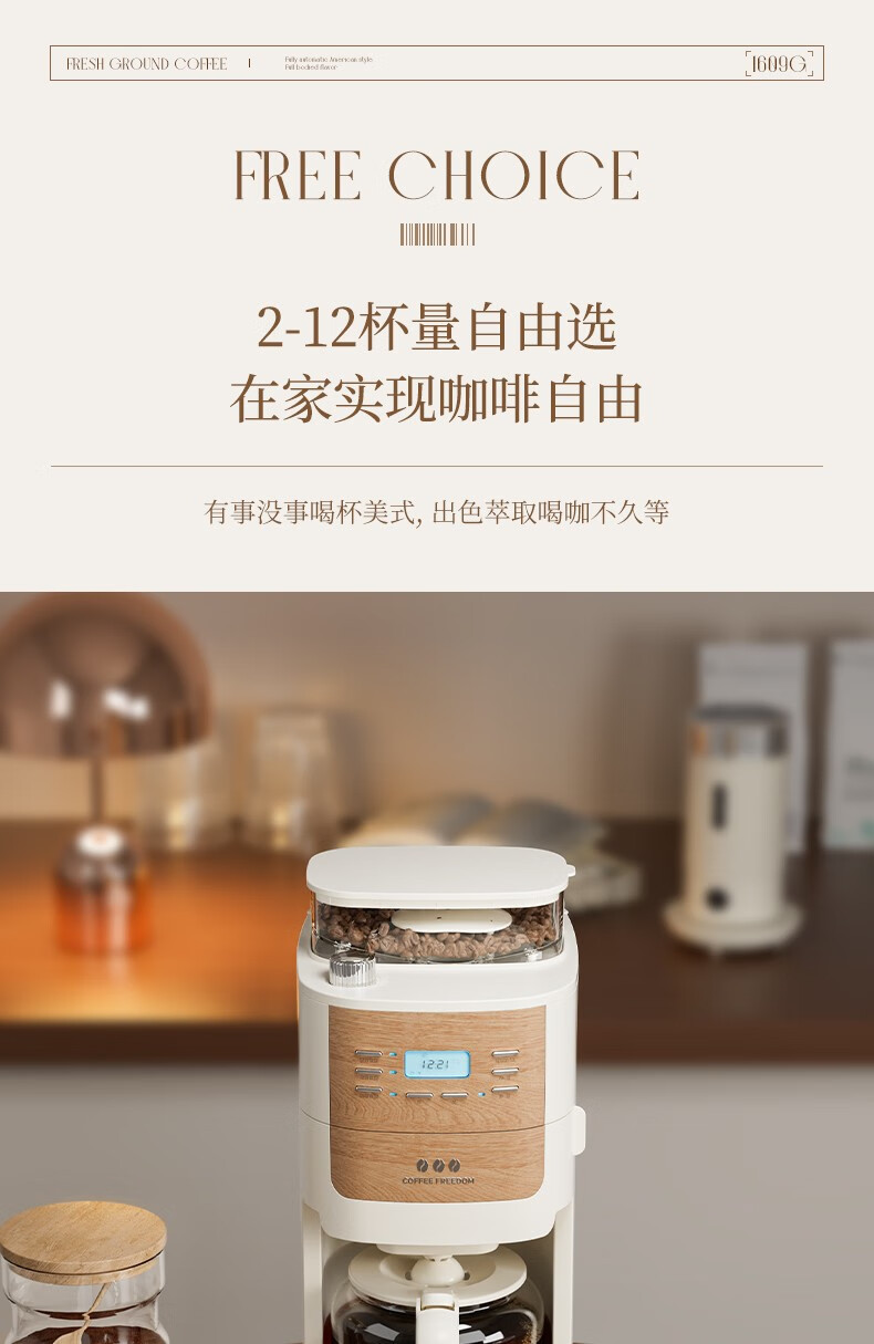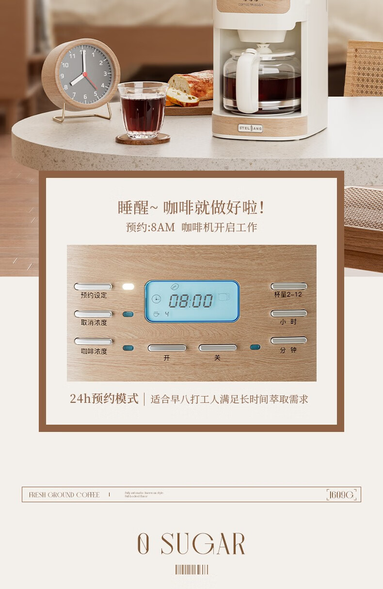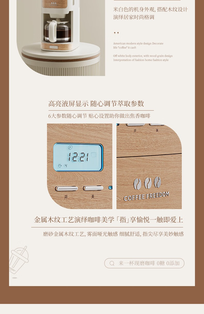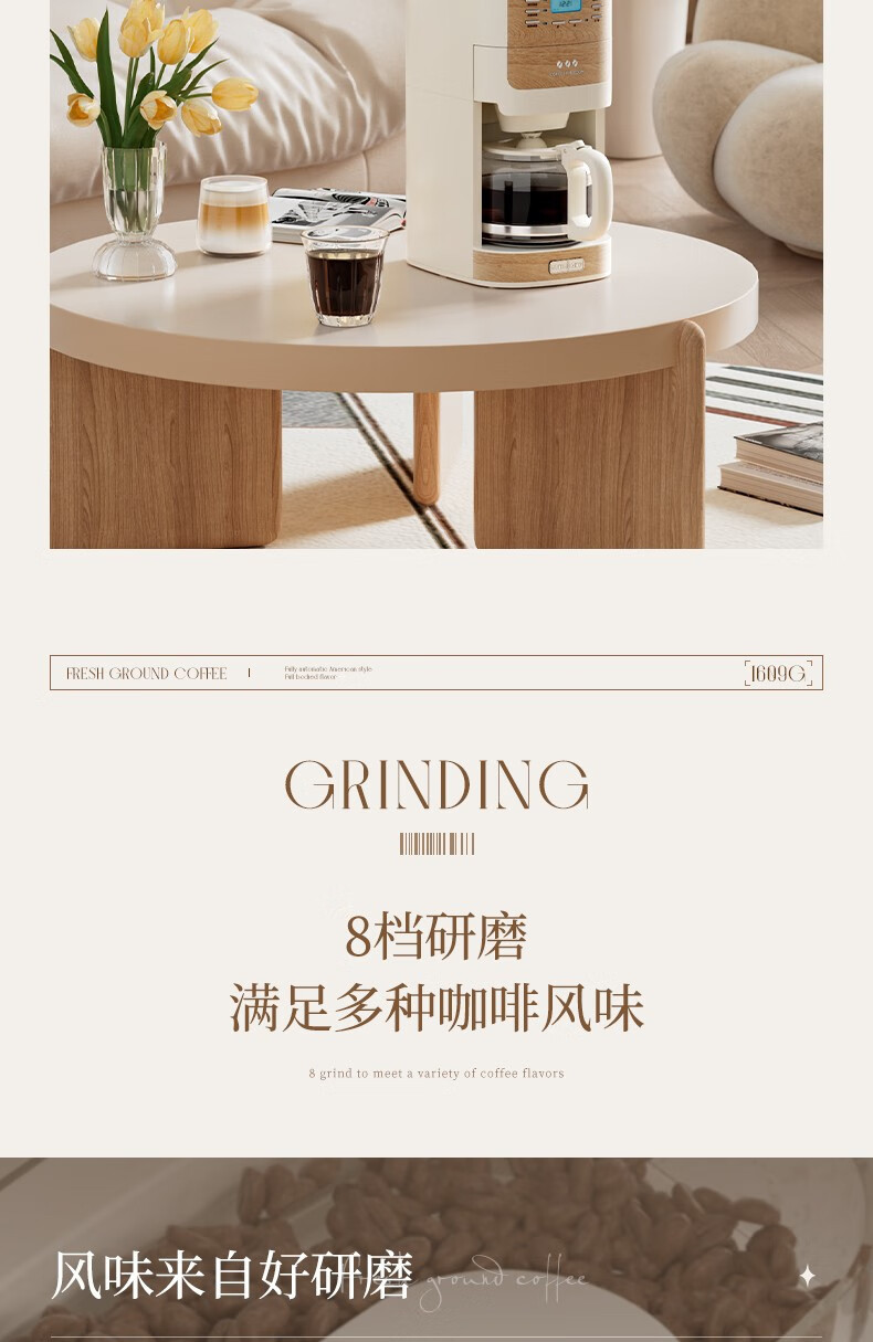 【雪特朗美式咖啡机】磨豆一体家用小型咖啡机 滴漏恒温设计 多档研磨调节