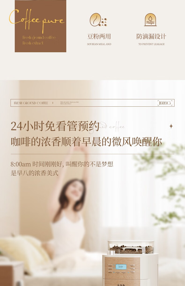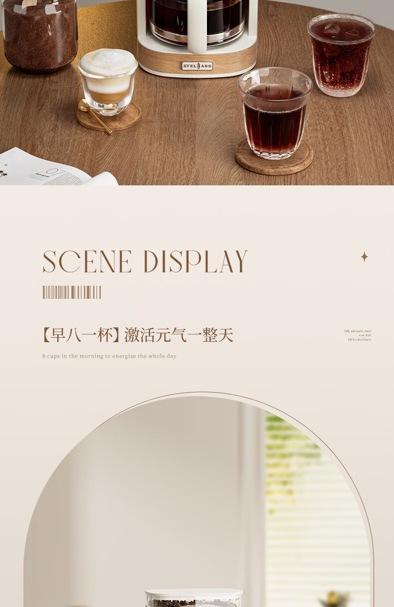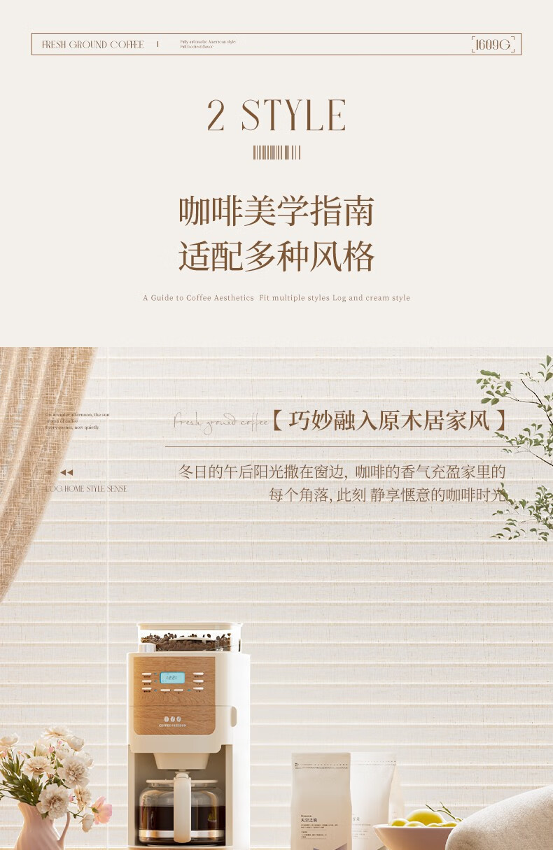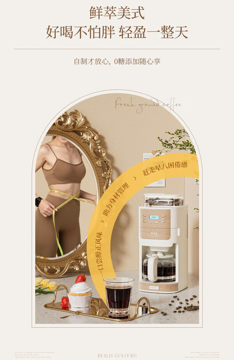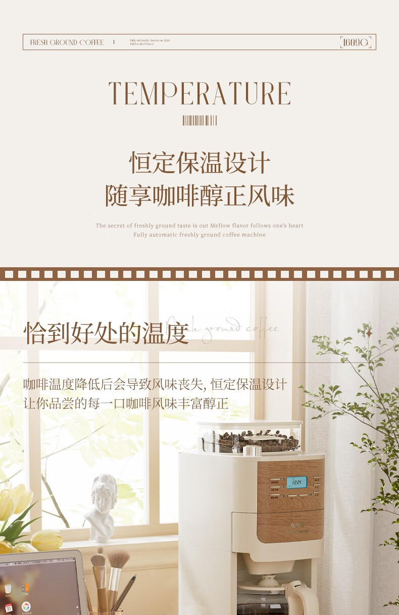 【雪特朗美式咖啡机】磨豆一体家用小型咖啡机 滴漏恒温设计 多档研磨调节