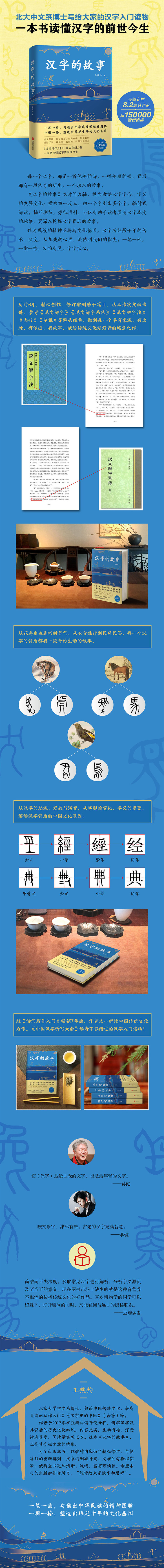 作者于2013年在豆瓣阅读开设专栏,讲解汉字及其背后的历史文化知识,内容充实,生动有趣,深受读者喜爱,阅读量突破15万。这本《汉字的故事》,正是其专栏文章的结集。