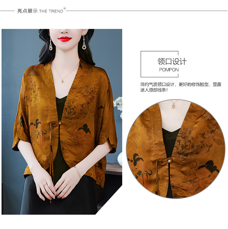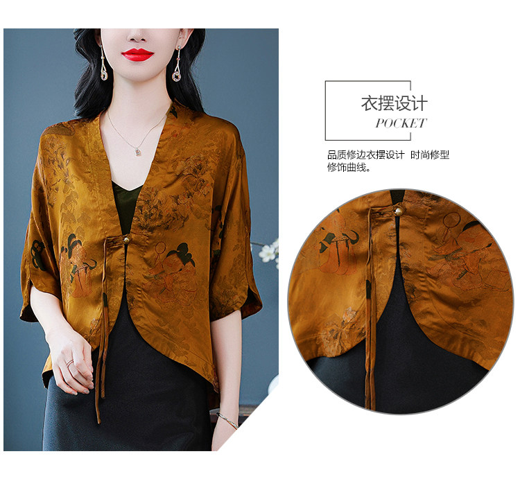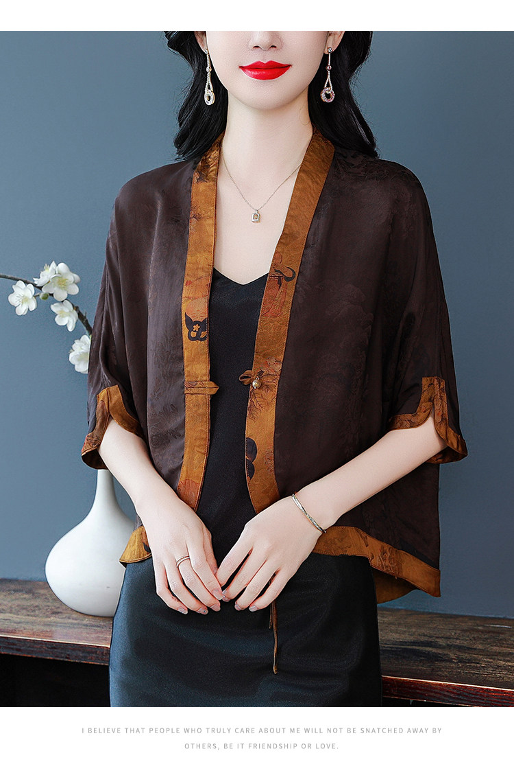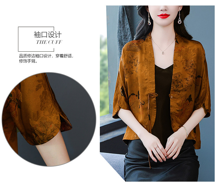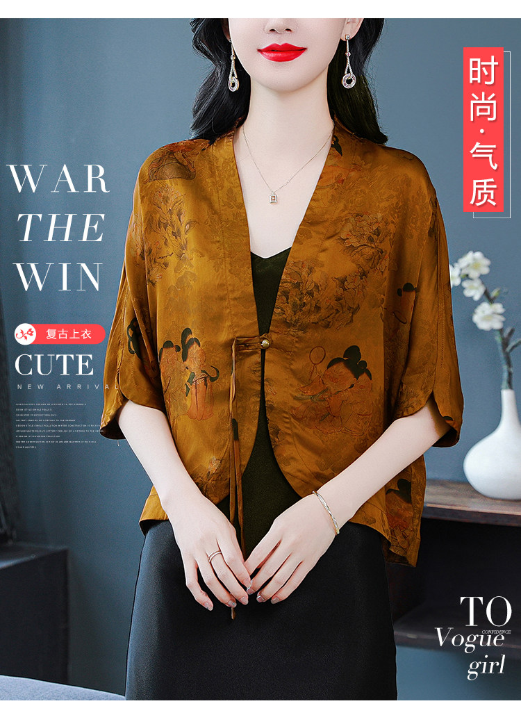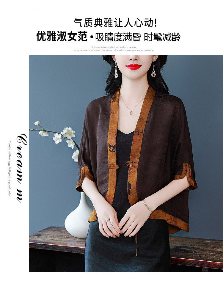 A5066新中式半袖上衣防晒开衫妈妈装女春秋夏薄款香云纱披肩外搭短外套