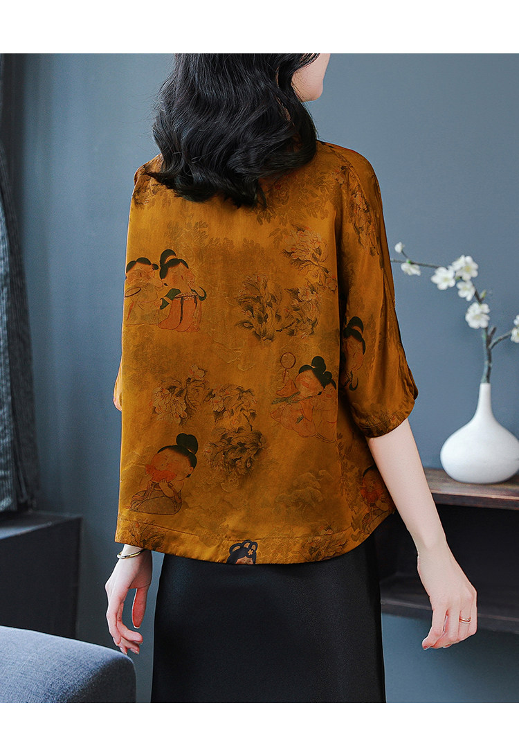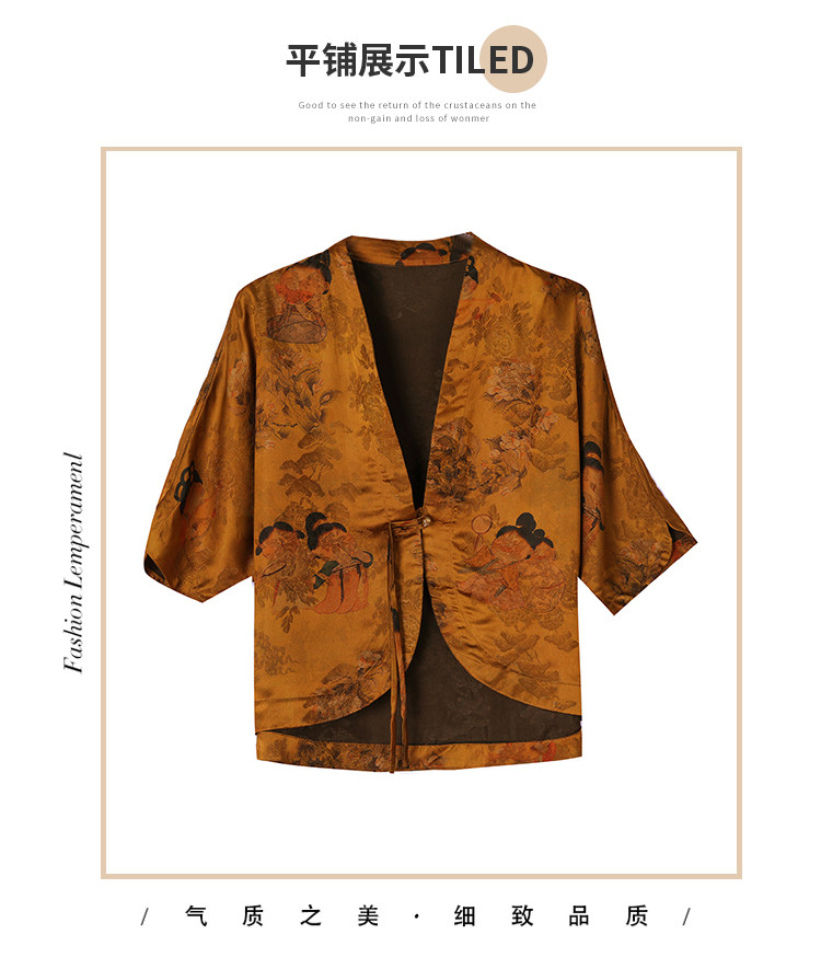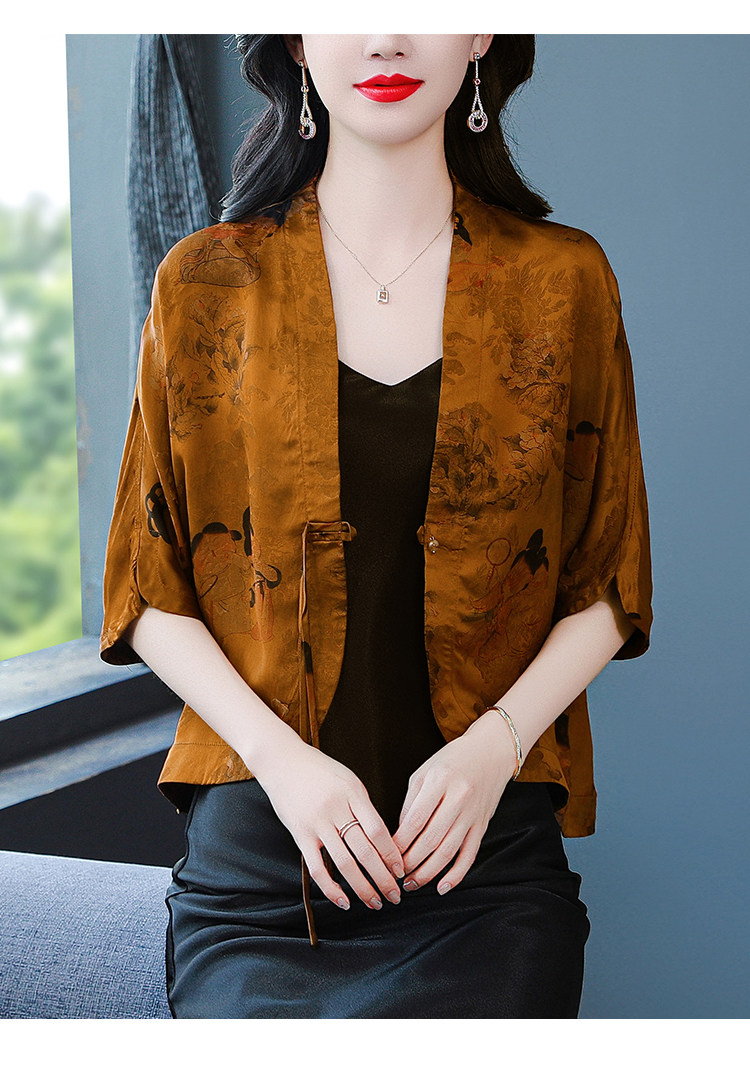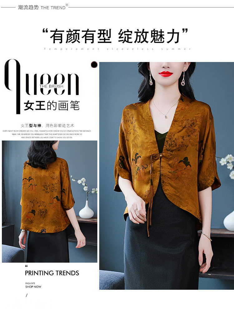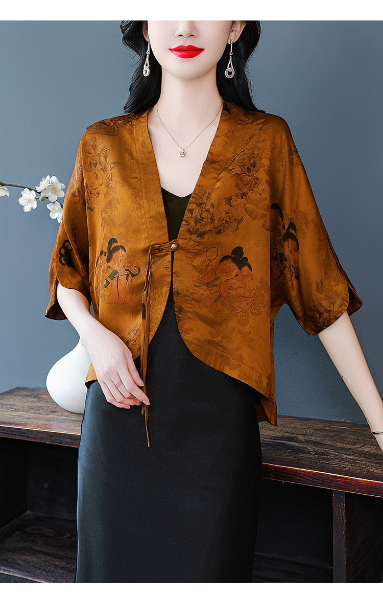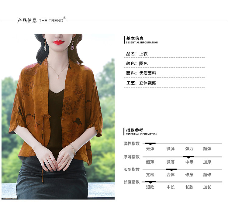 A5066新中式半袖上衣防晒开衫妈妈装女春秋夏薄款香云纱披肩外搭短外套
