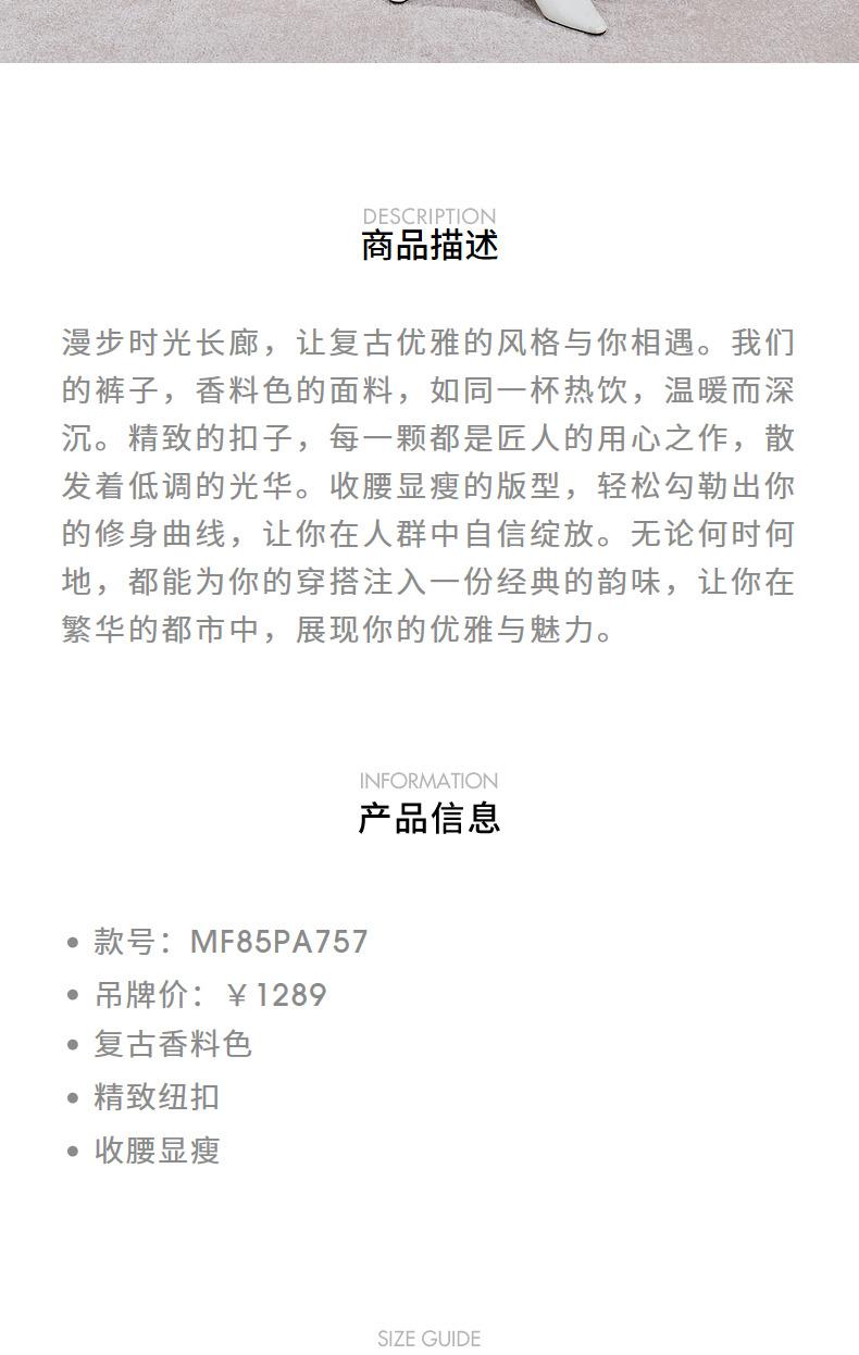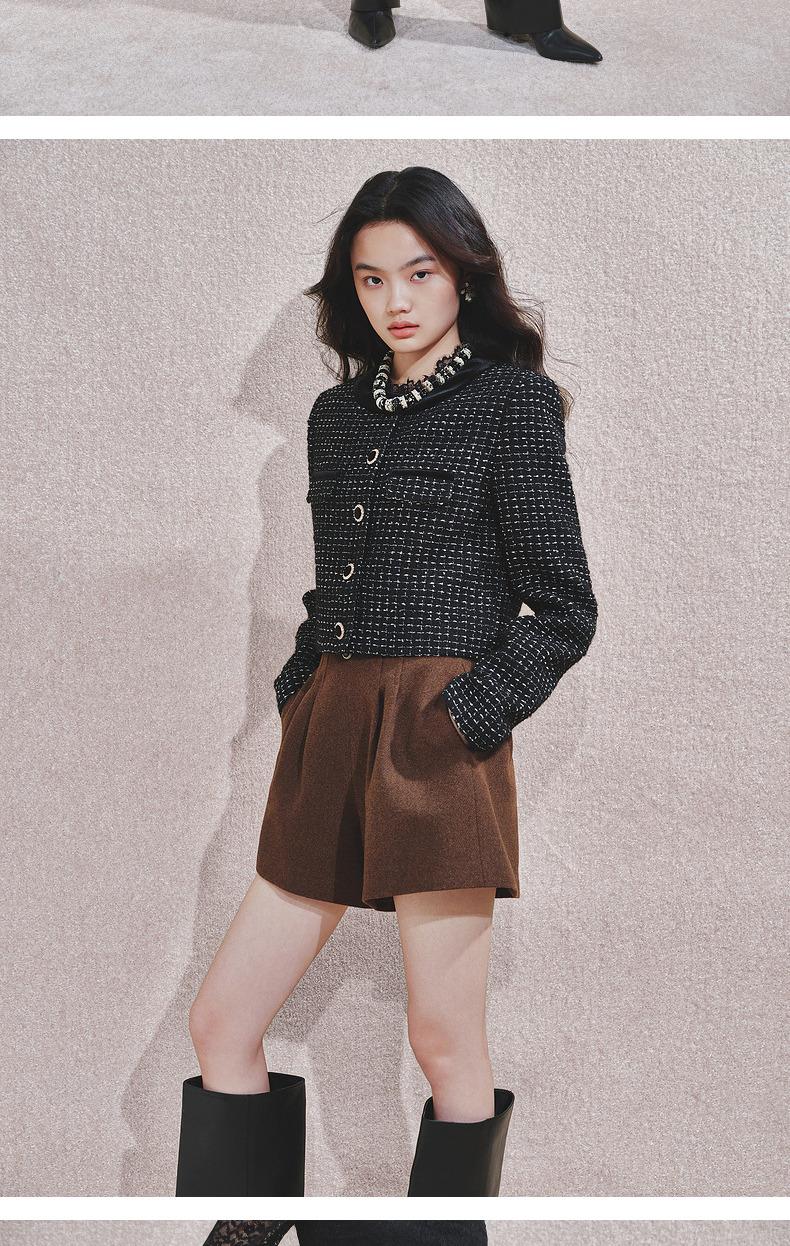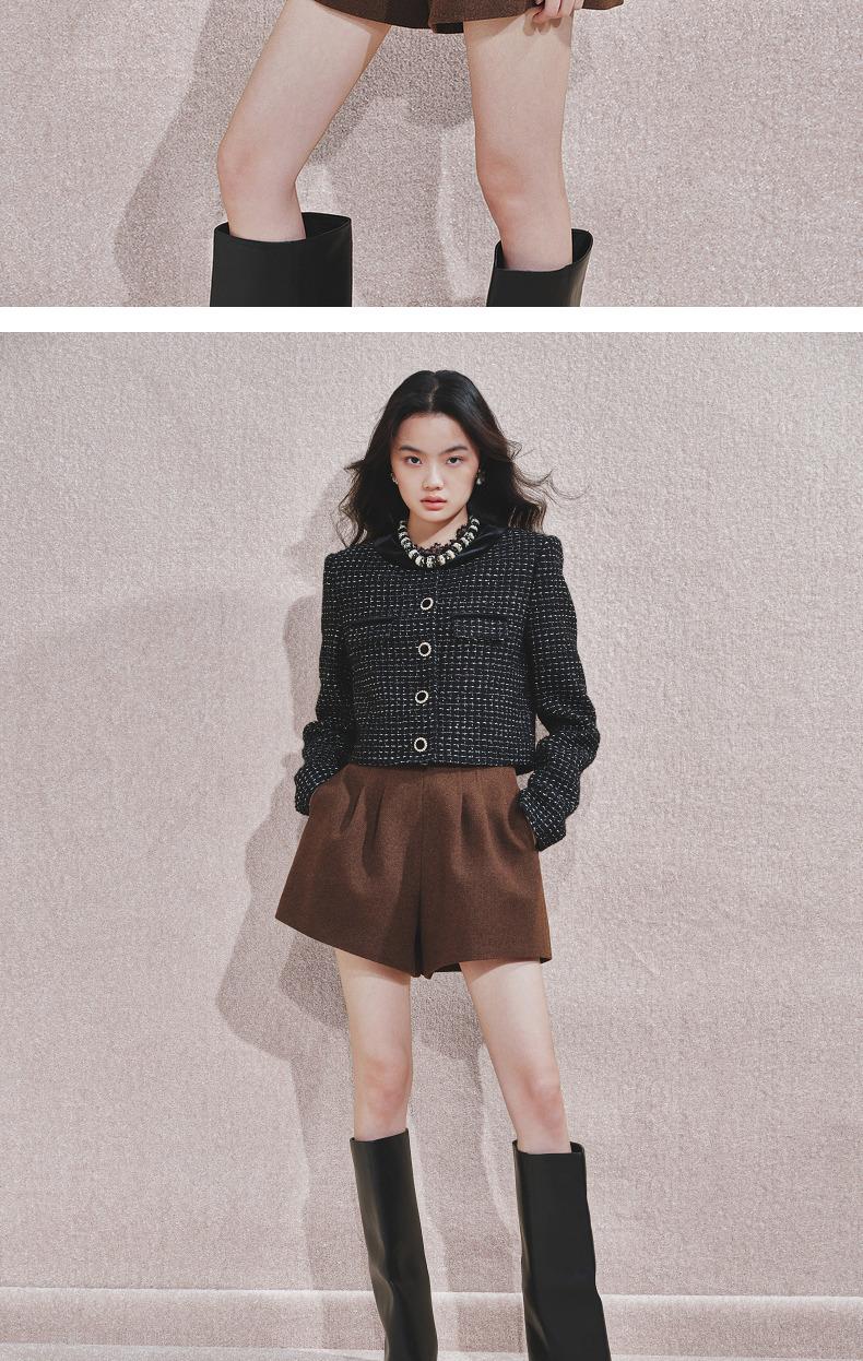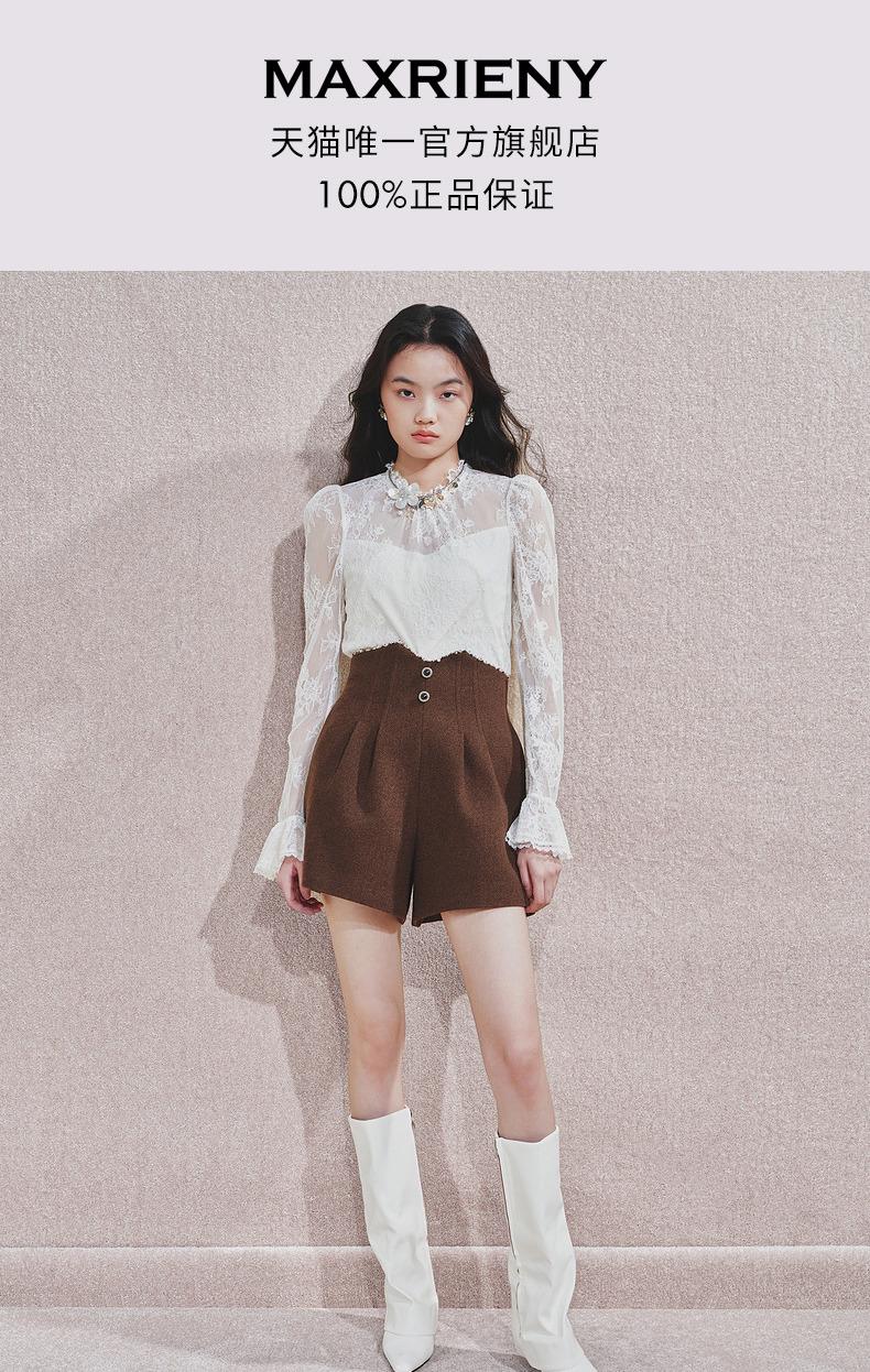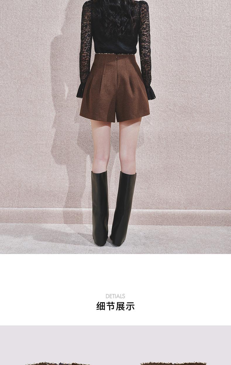 MAXRIENY精致优雅阔腿裤女24冬新款收腰显瘦复古高腰短裤修身显瘦(货号:MF85PA757)