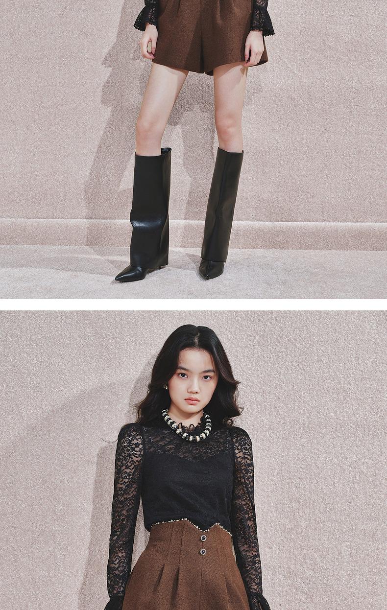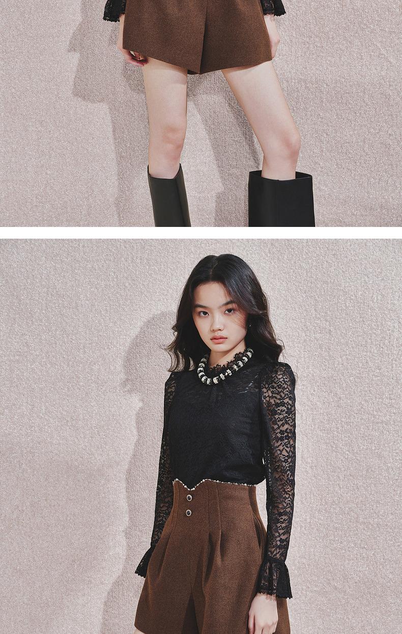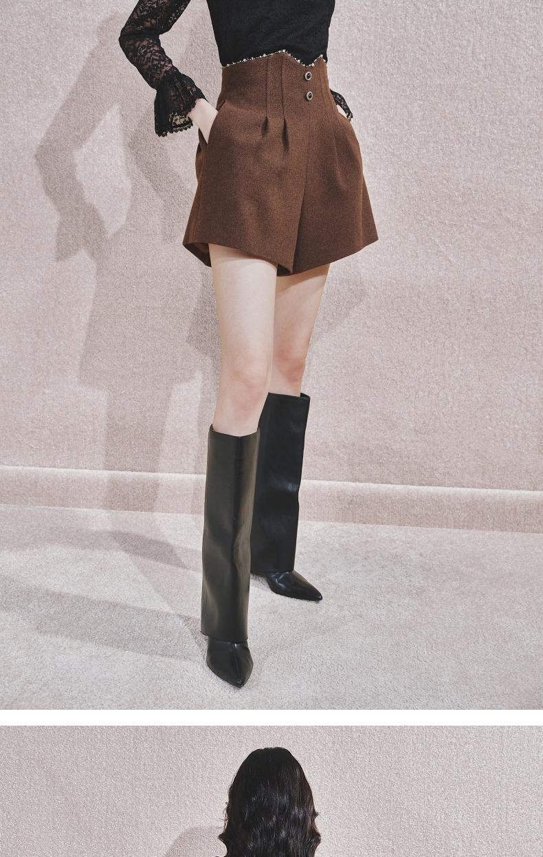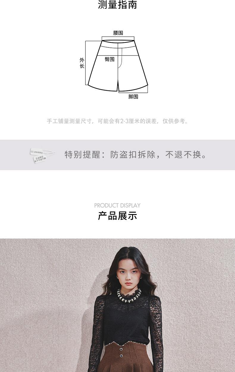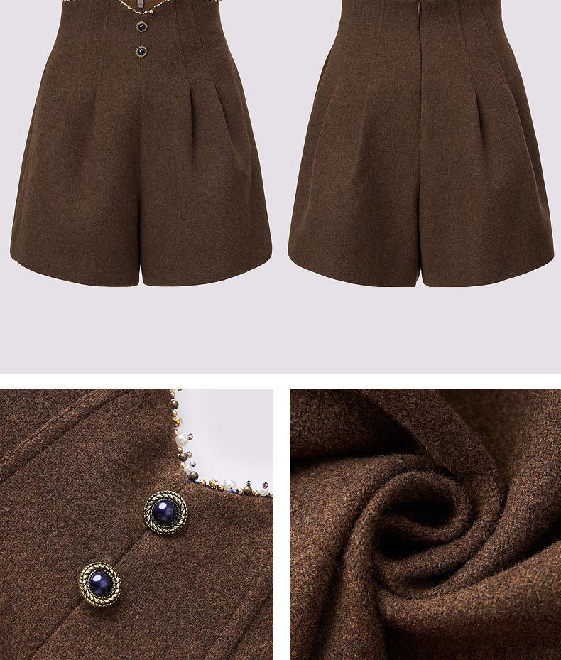 MAXRIENY精致优雅阔腿裤女24冬新款收腰显瘦复古高腰短裤修身显瘦(货号:MF85PA757)
