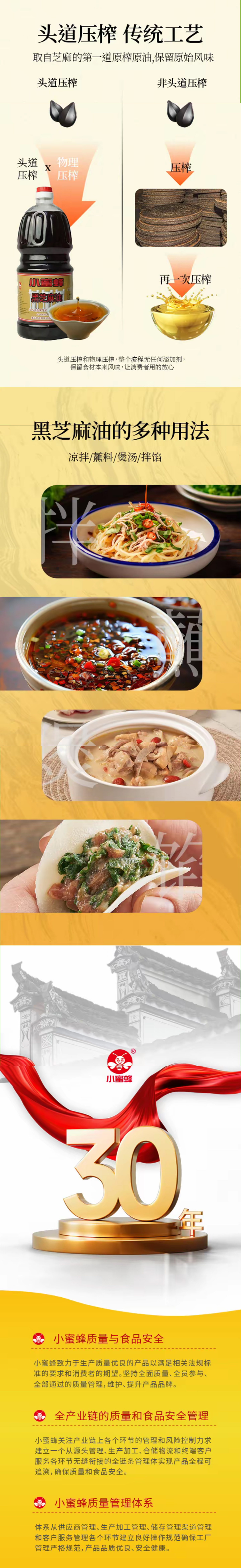 重庆小蜜蜂黑芝麻油2.5L桶装浓香芝麻香油炒菜凉拌馅火锅蘸料煲汤