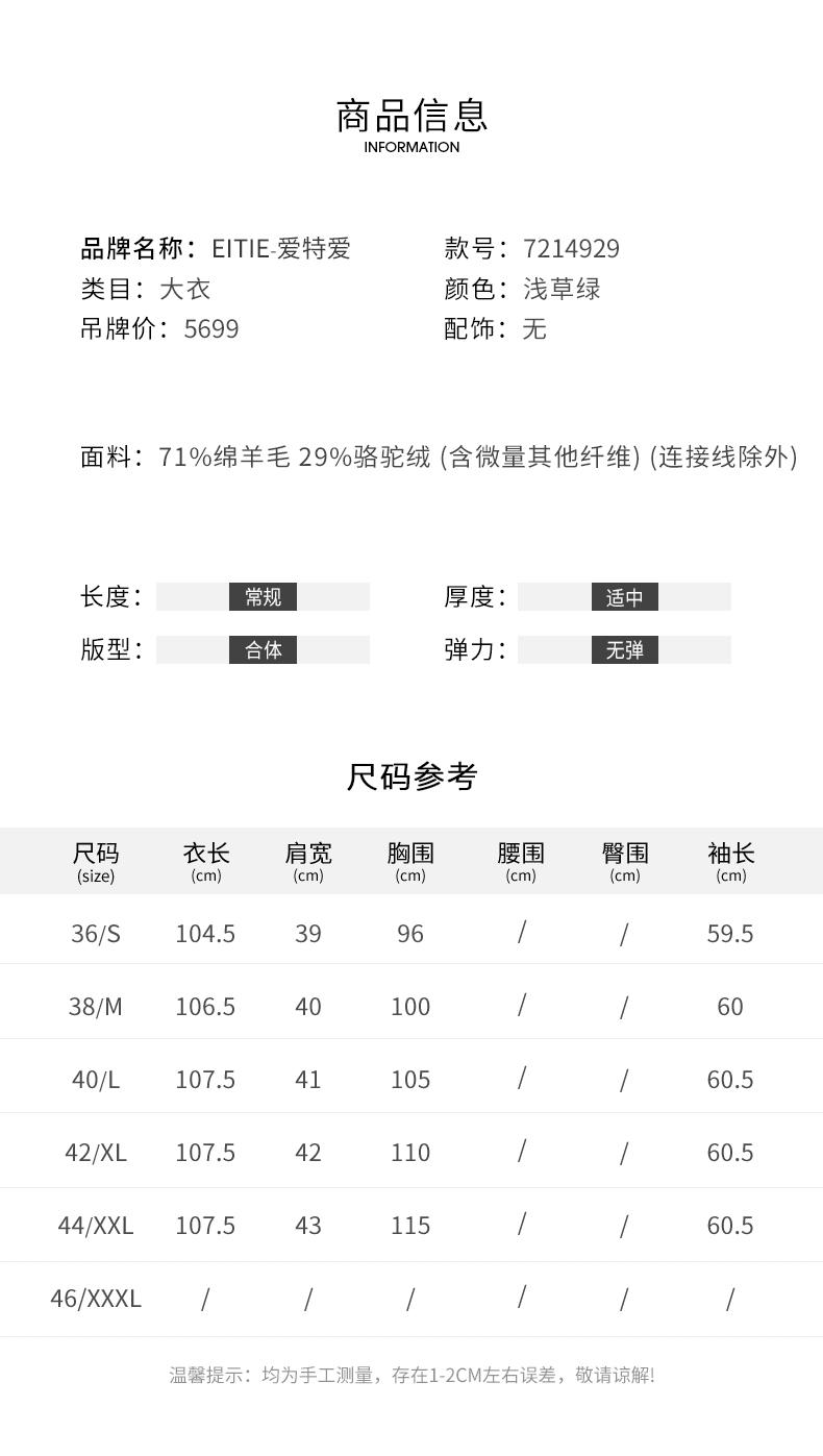 EITIE爱特爱冬季新款气质大气大衣外套女7214929