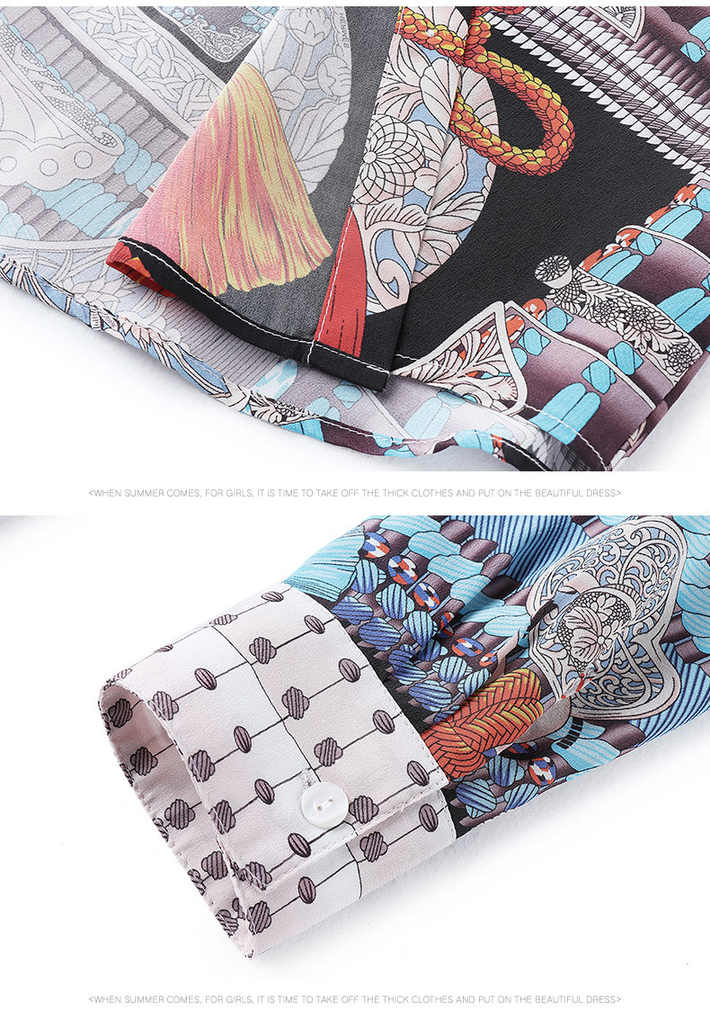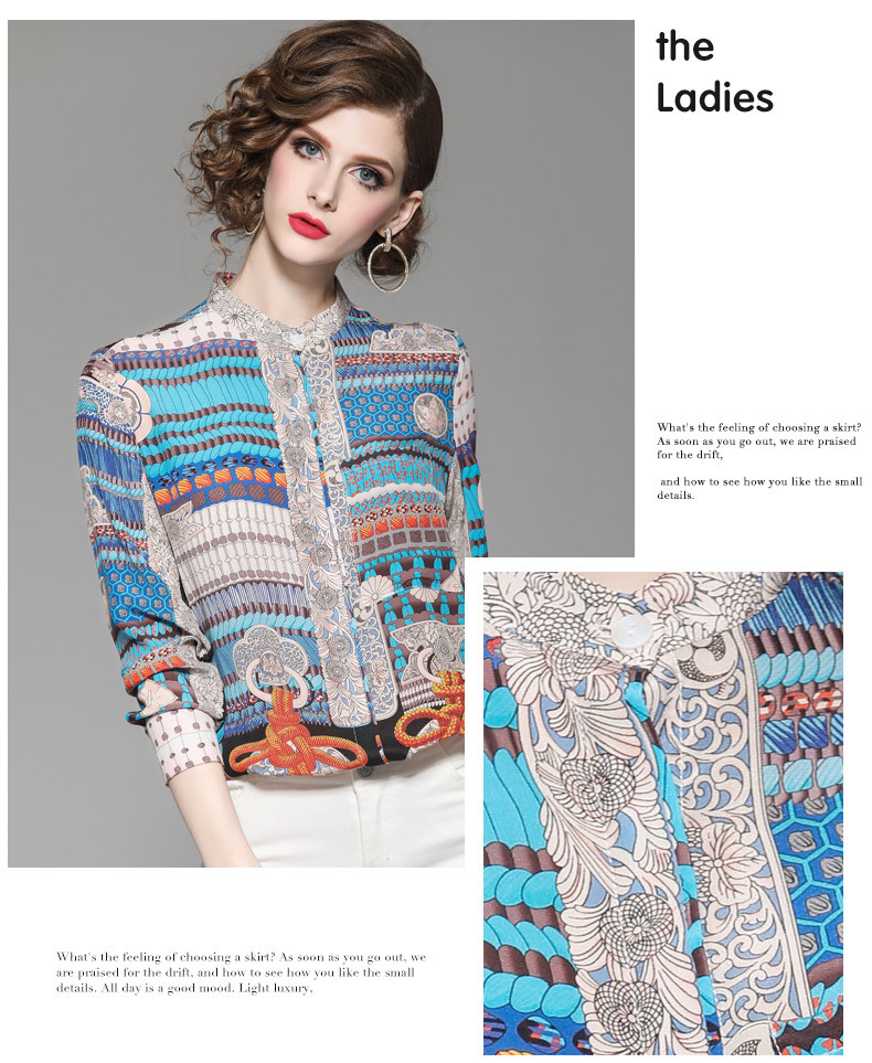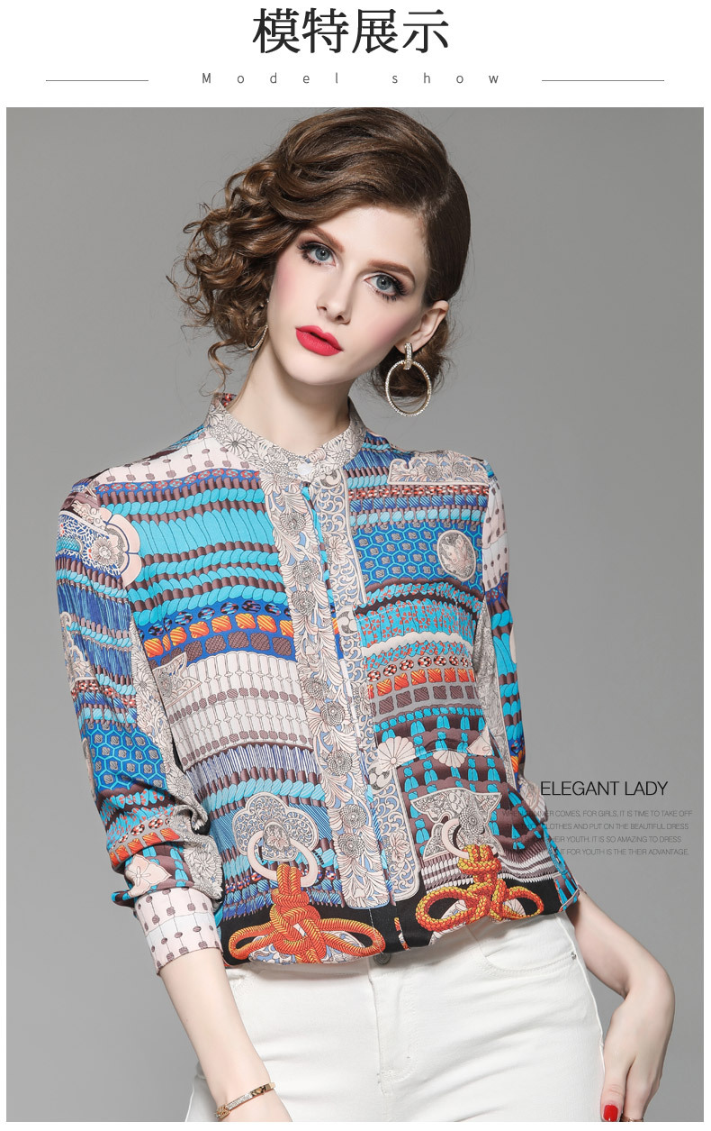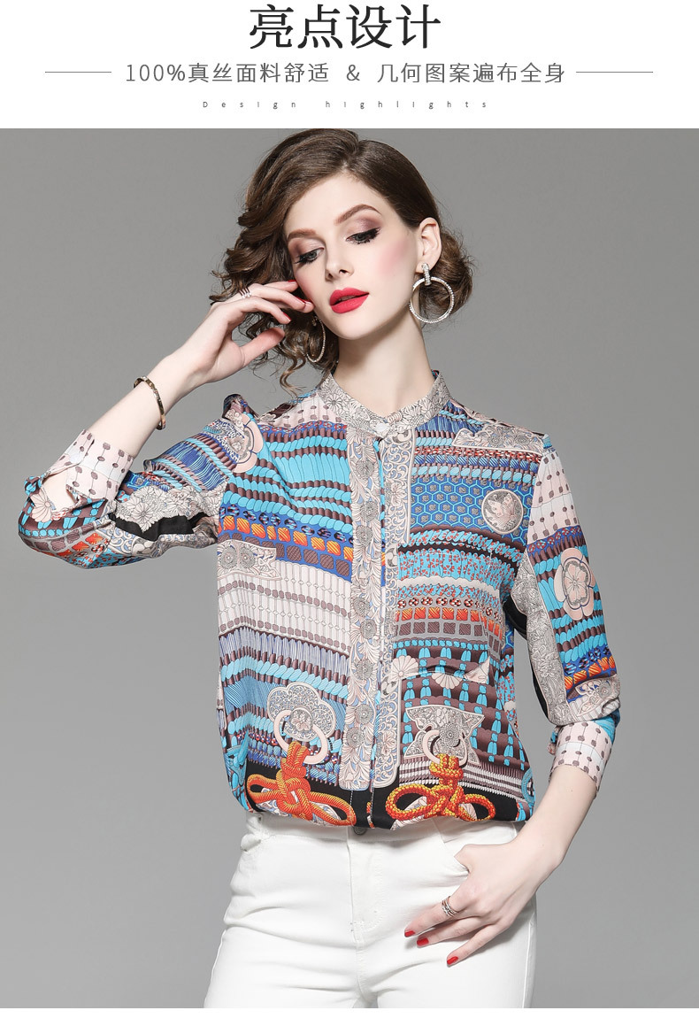 WLZD-1853604秋季新款欧美立领几何撞色真丝上衣舒适百搭上衣