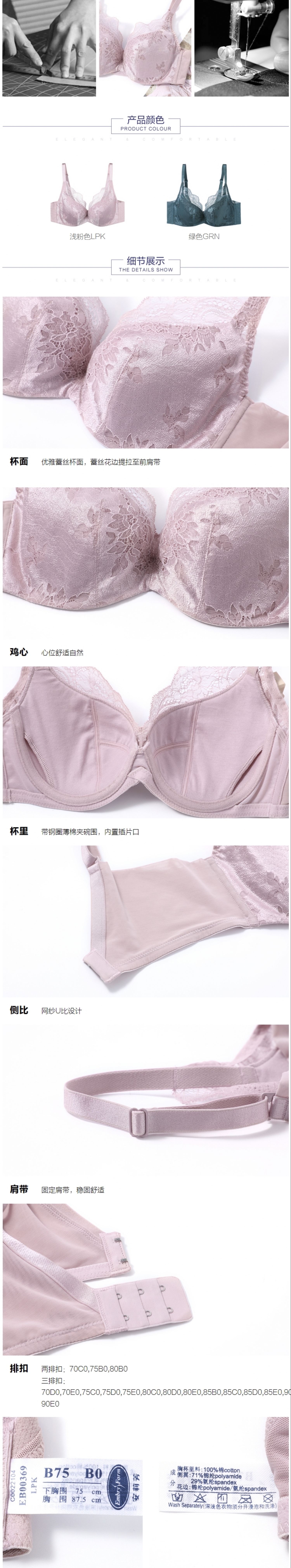 安莉芳蕾丝薄款大胸显小文胸女士性感U型比位收副乳内衣EB00369