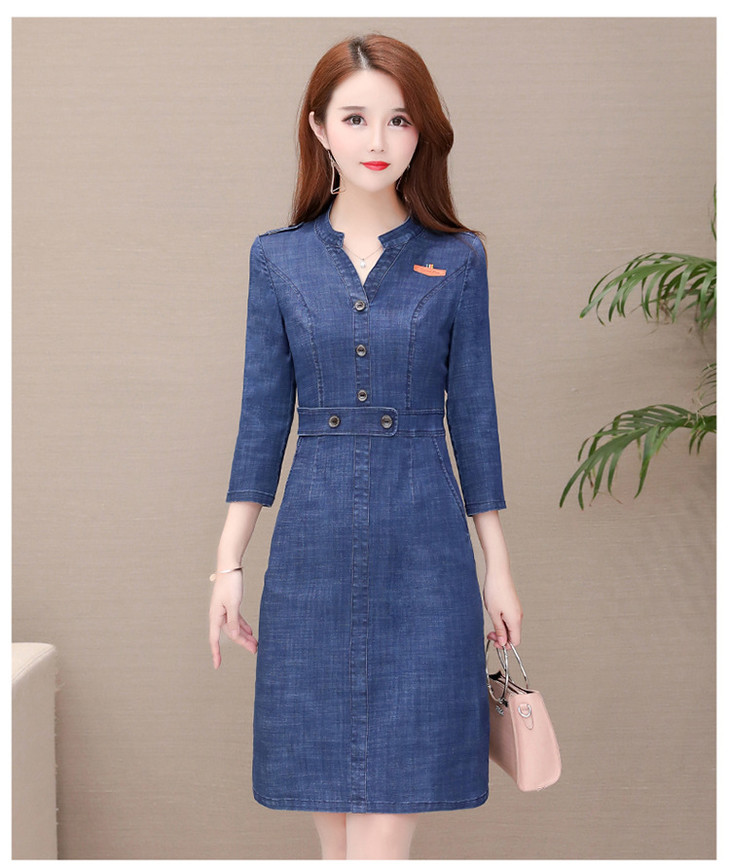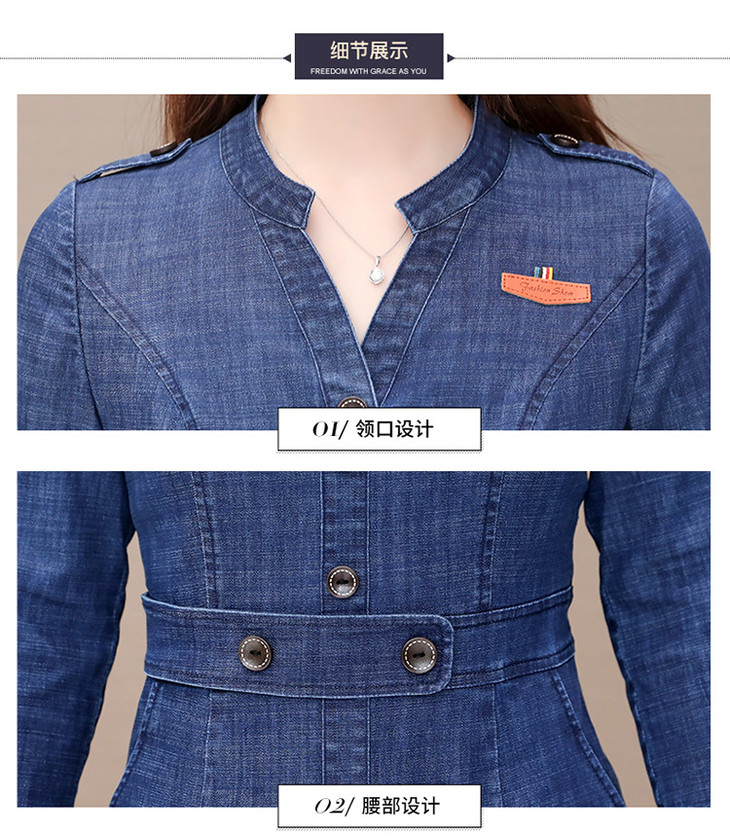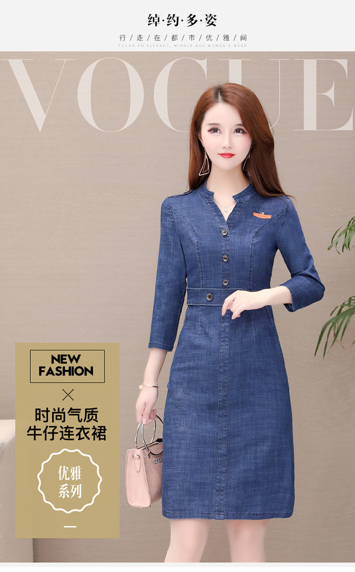 YW-KED91119 气质减龄V领,长袖牛仔连衣裙