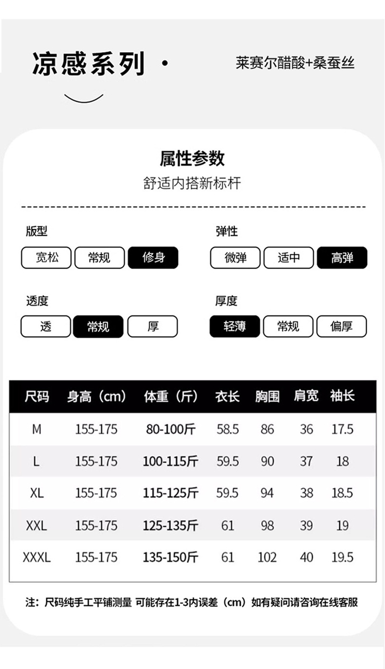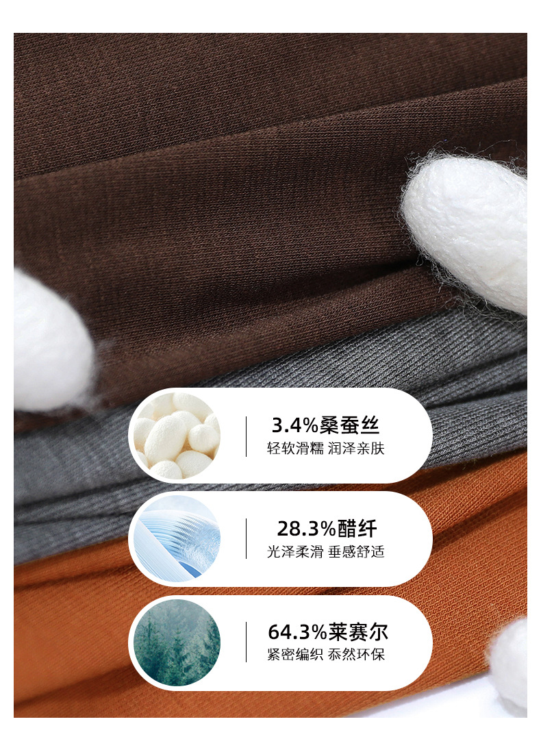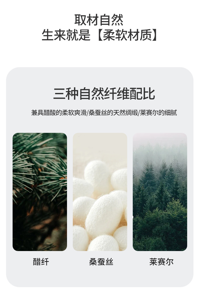 面料:3.4%桑蚕丝,28.3%醋纤,64.3%莱赛尔