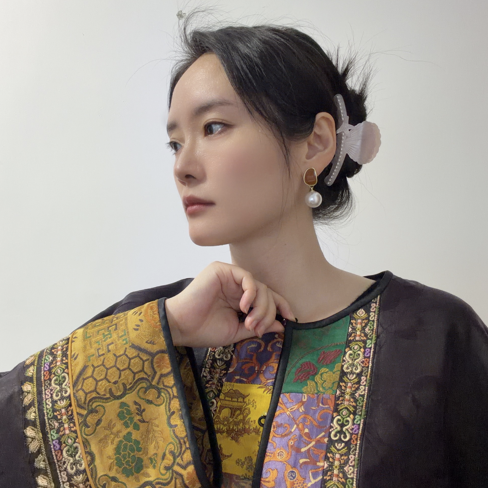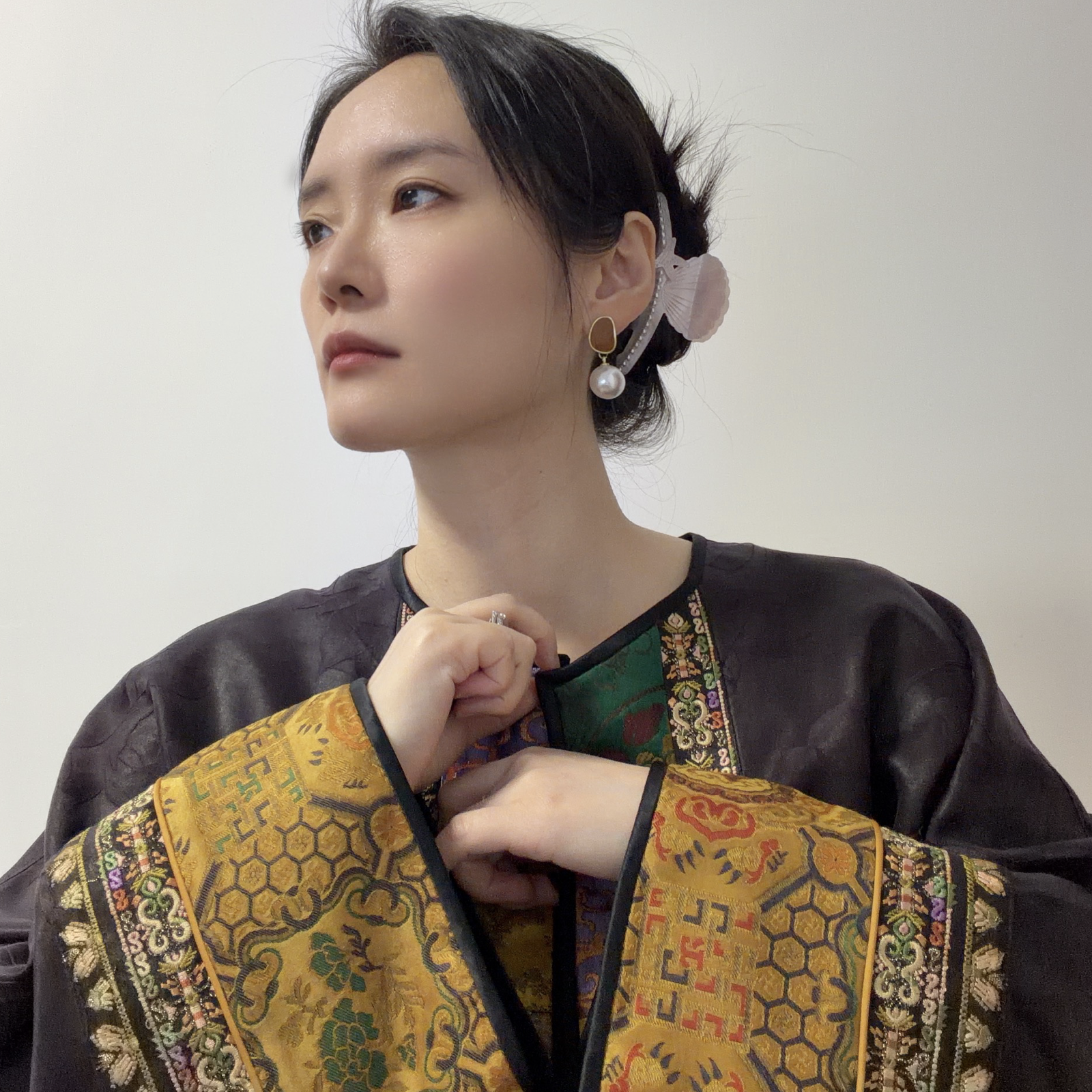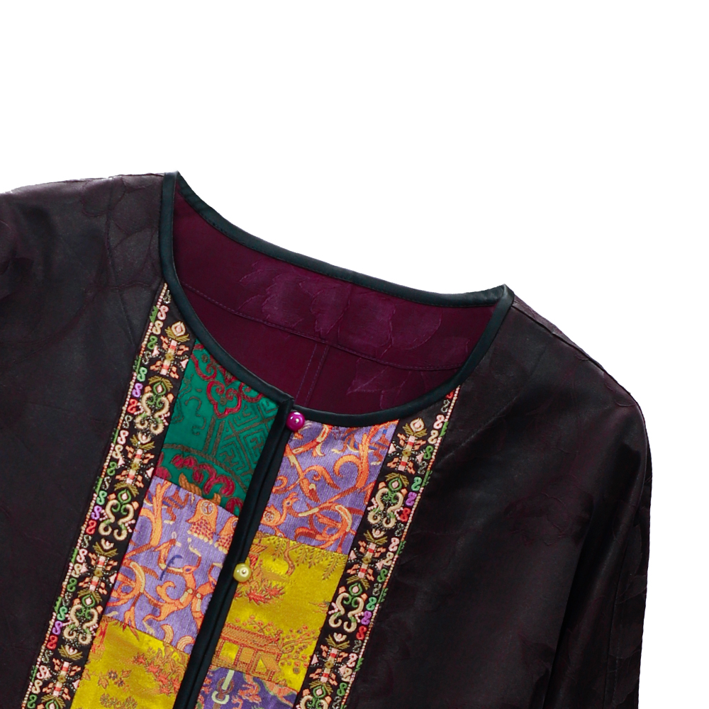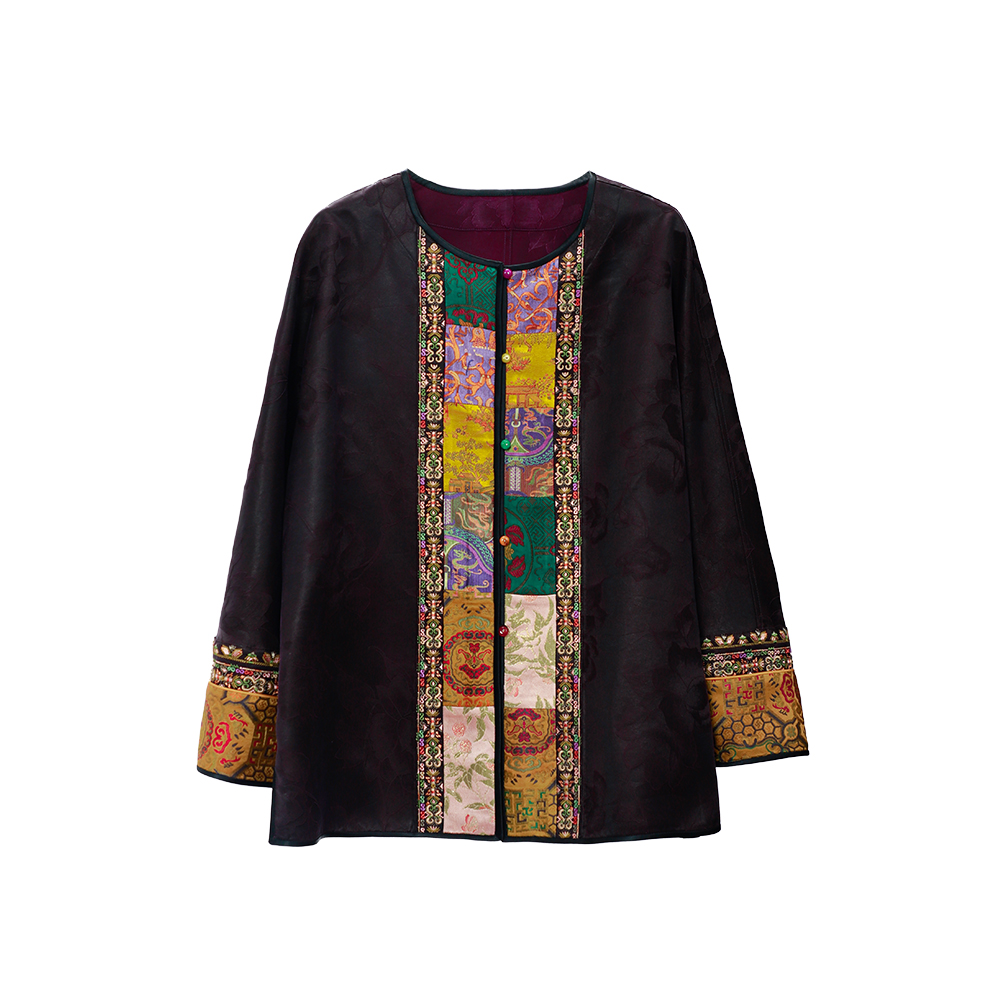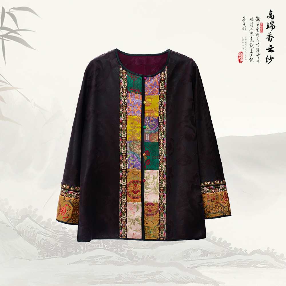 【咕咕同款】NANSONGSILK/NS新中式【金玉堂】香云纱圆领高级新中式宽松刺绣长袖外套M1D539735X南宋