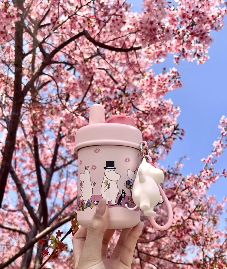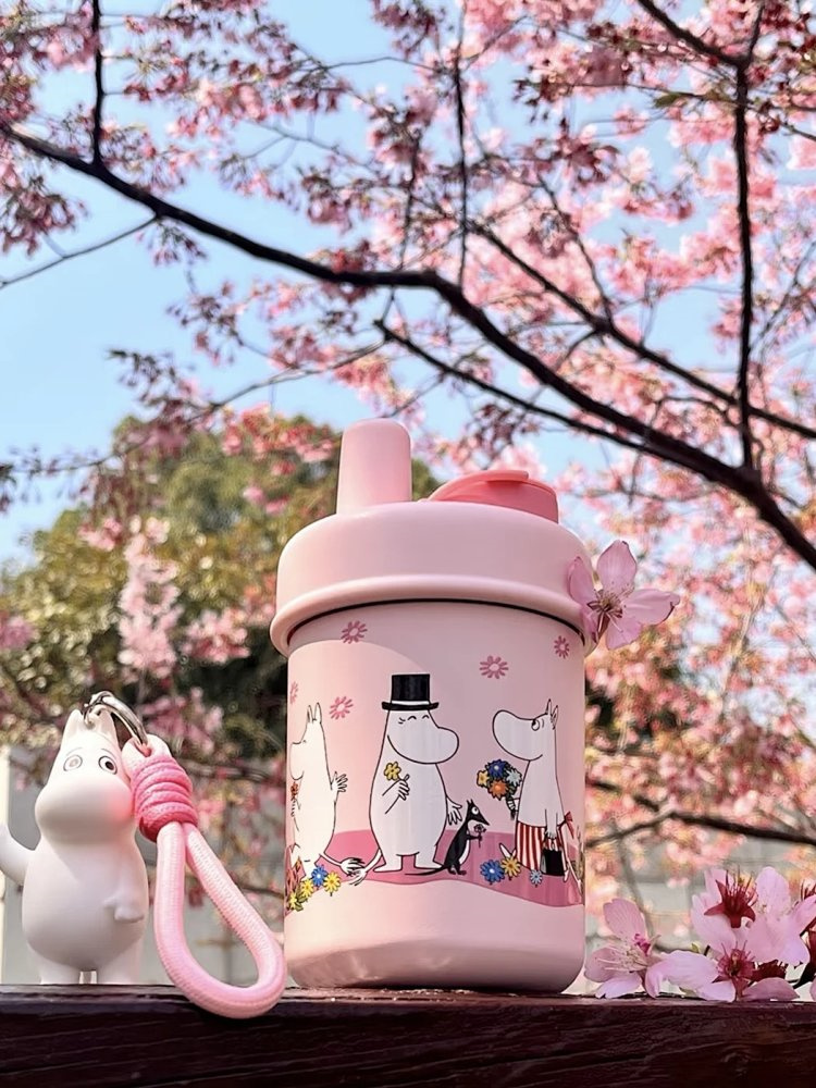 樱花烂漫,粉色姆明随行杯,春日治愈小确幸