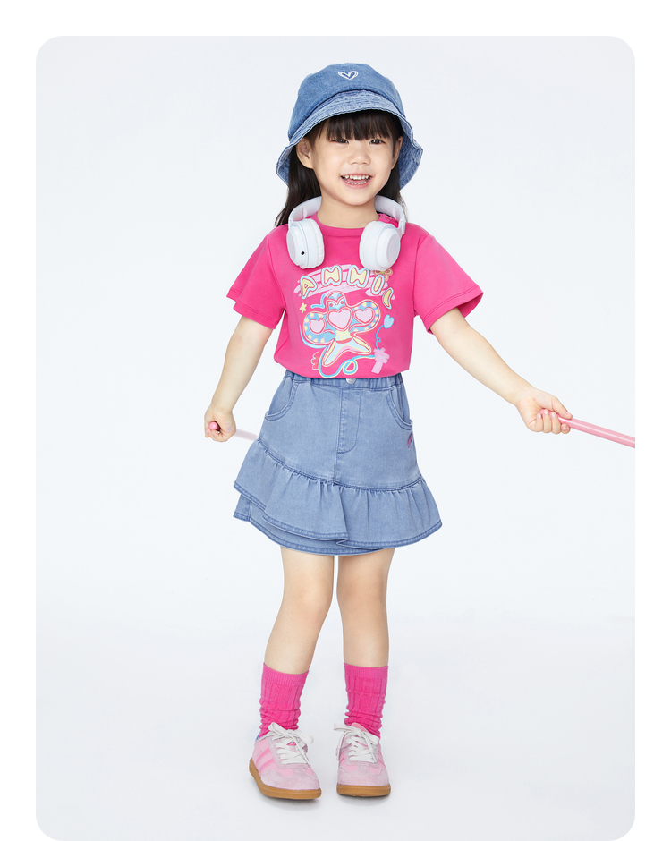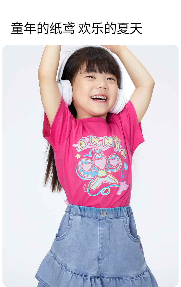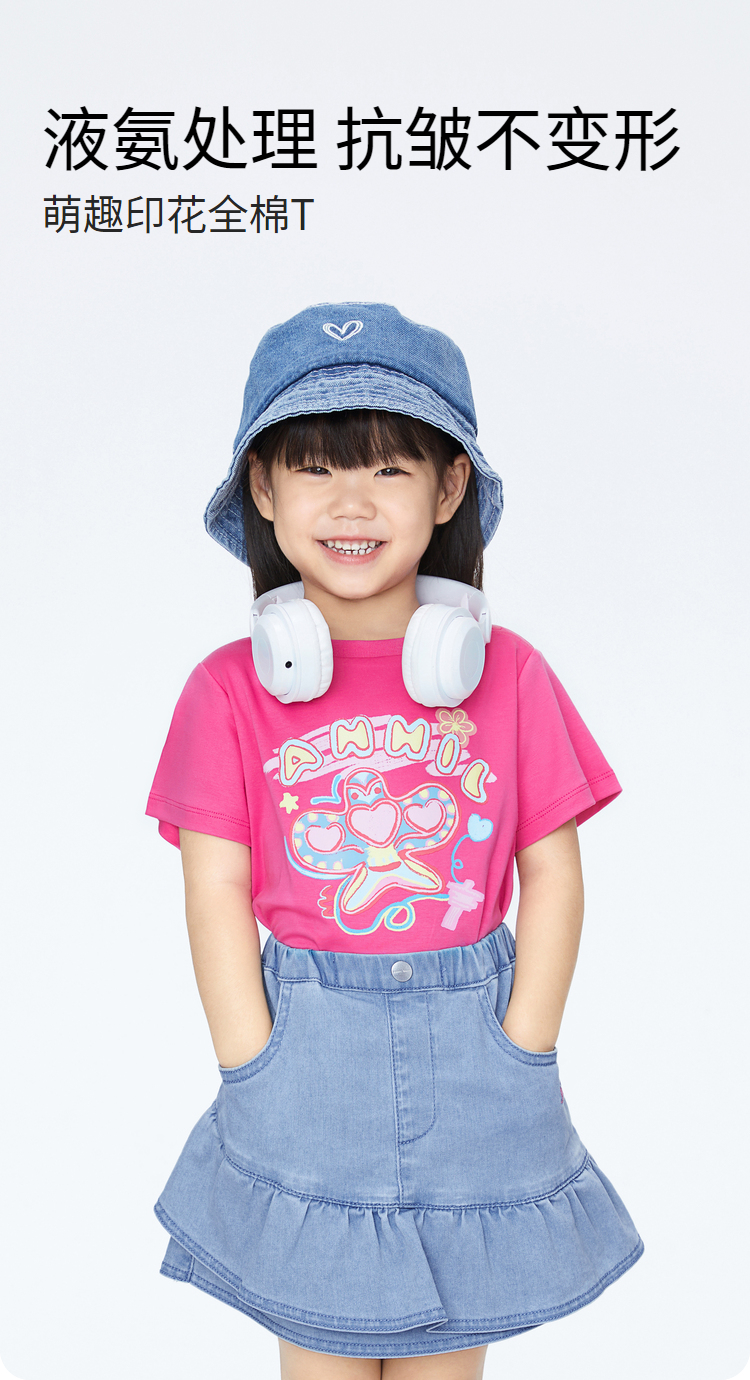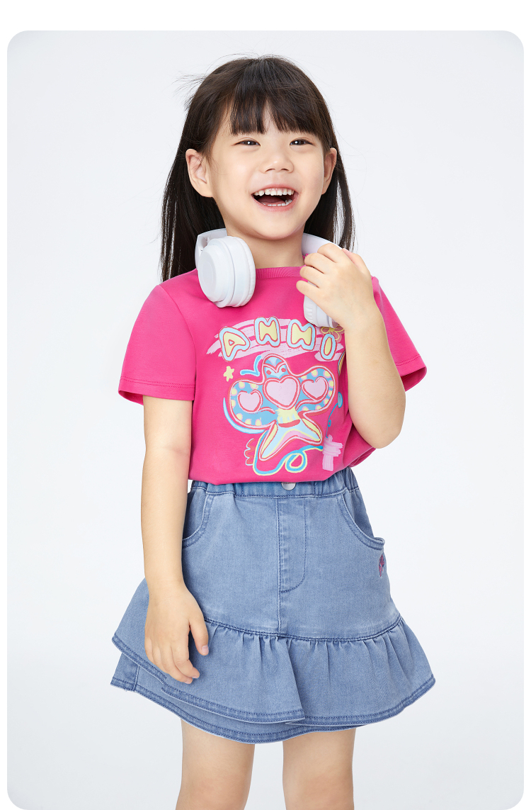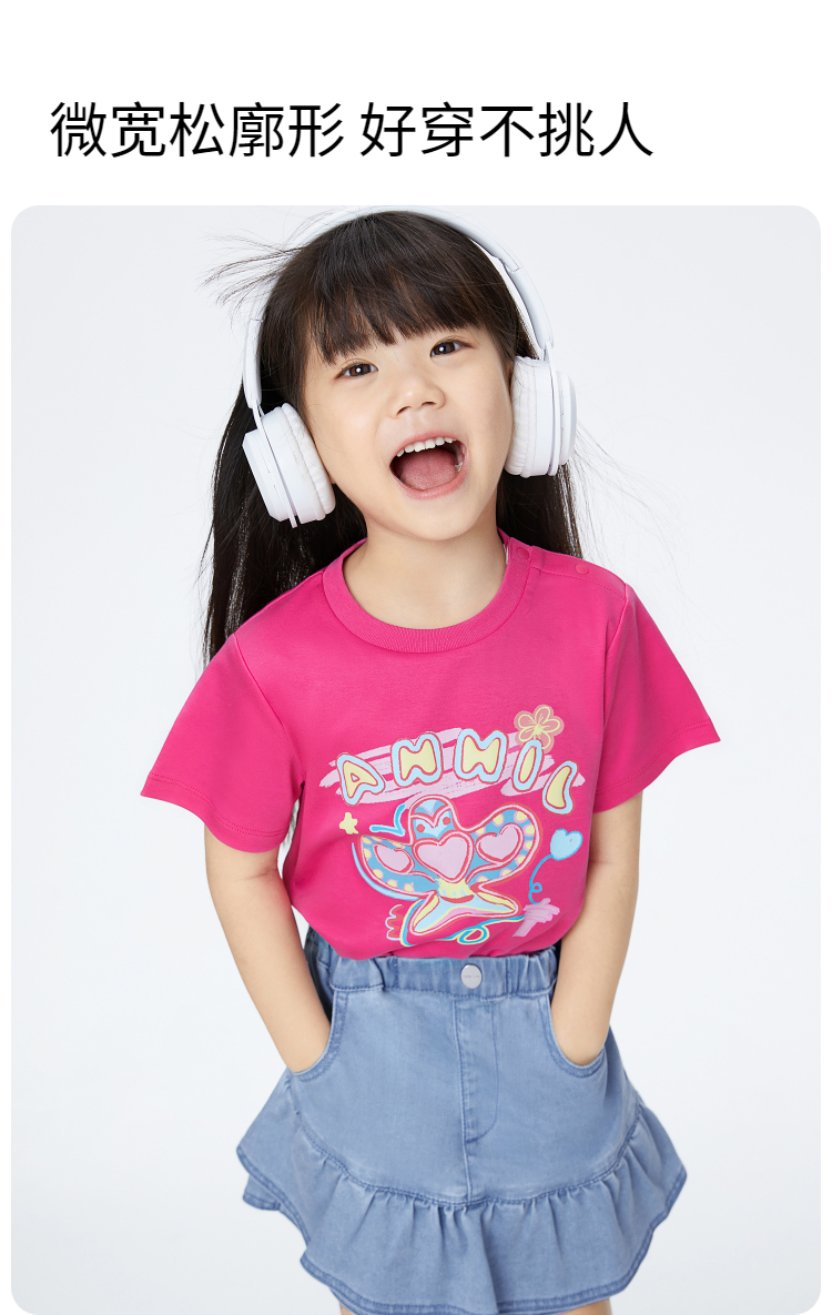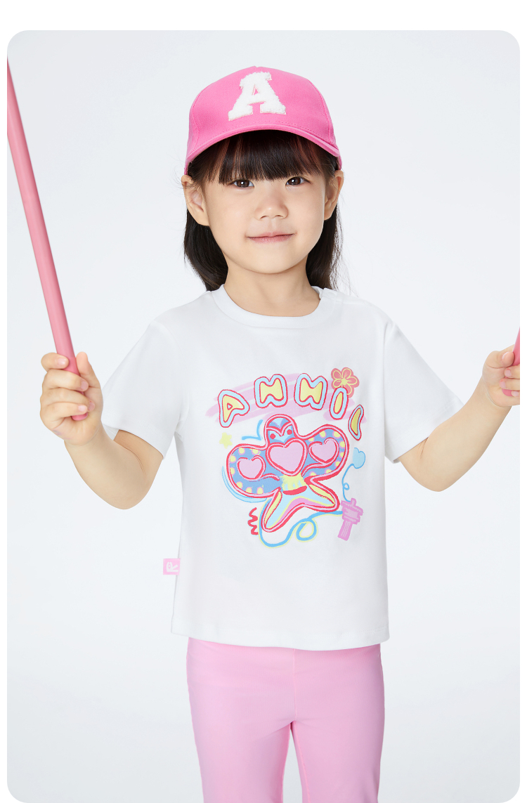 女童圆领短袖针织衫夏季新款安奈儿童装实体店同款XG421696