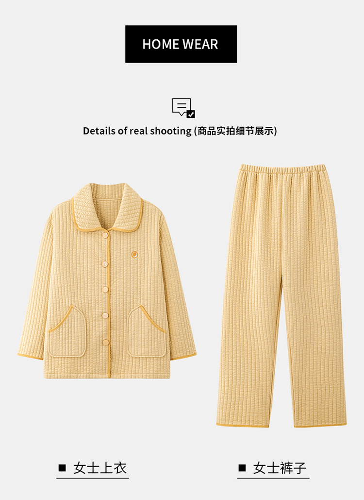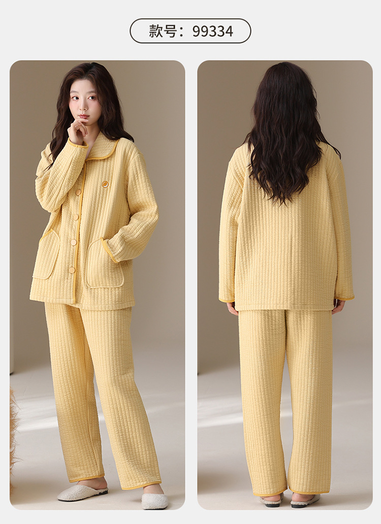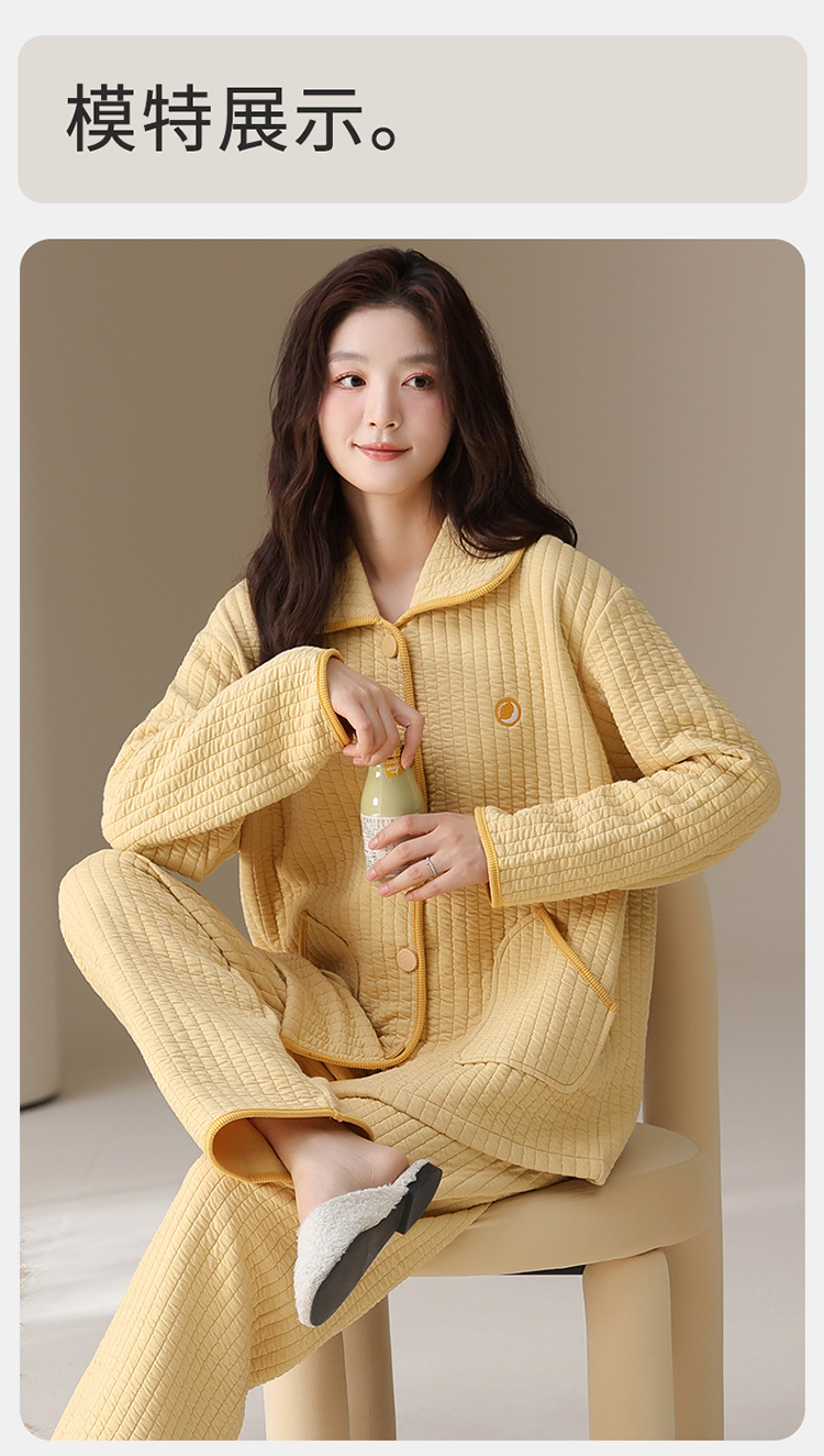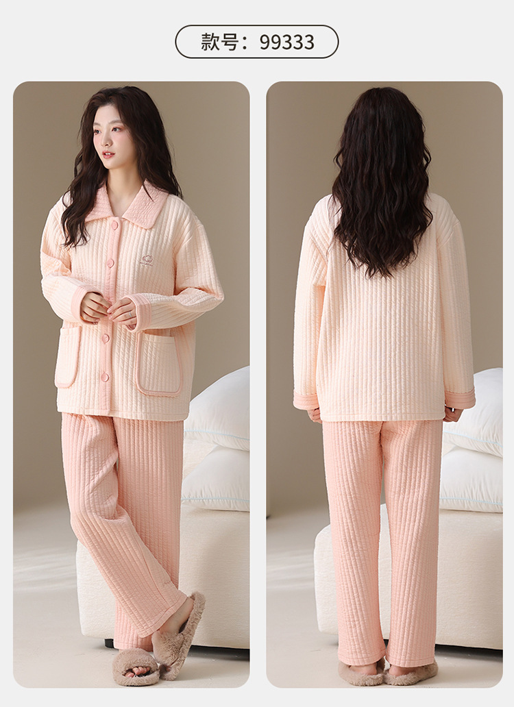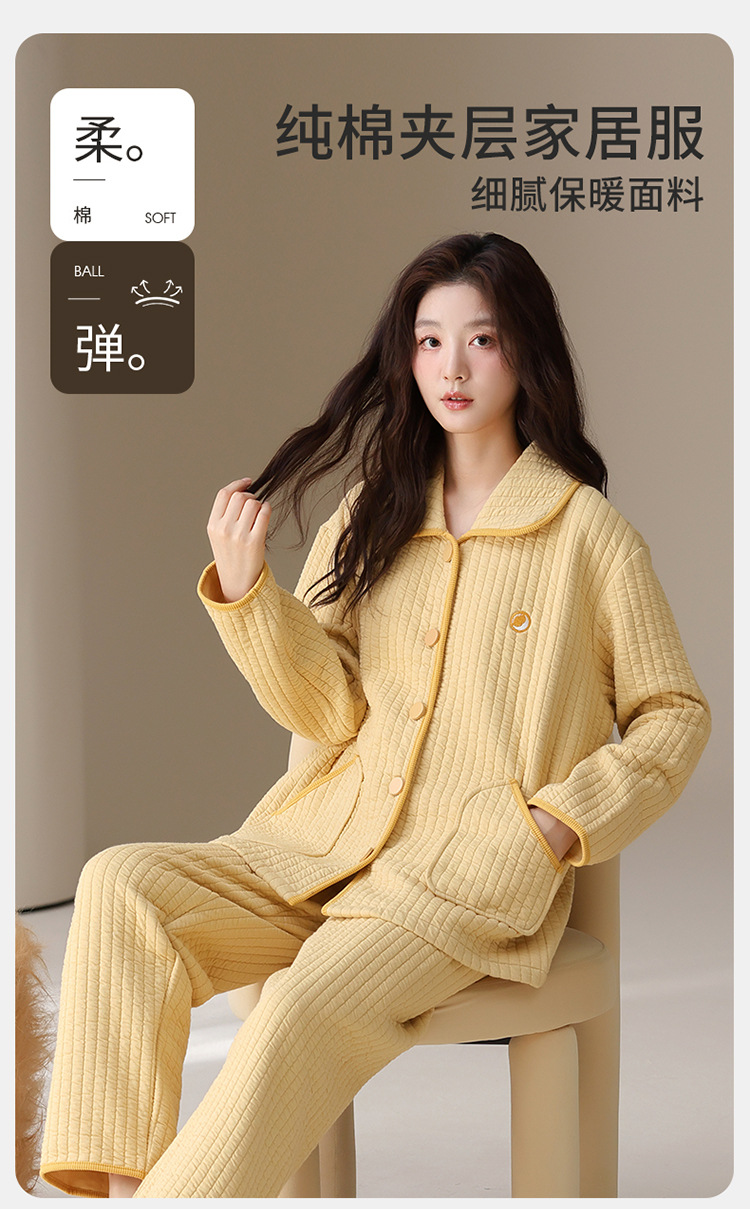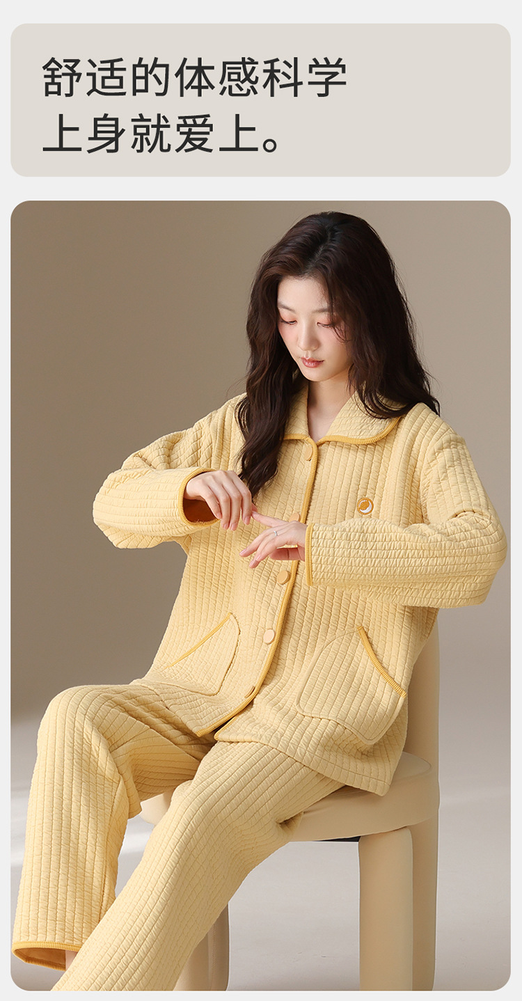丁摩 睡衣女秋冬季新款空气棉夹层纯棉长袖加厚保暖家居服套装5ZF-338