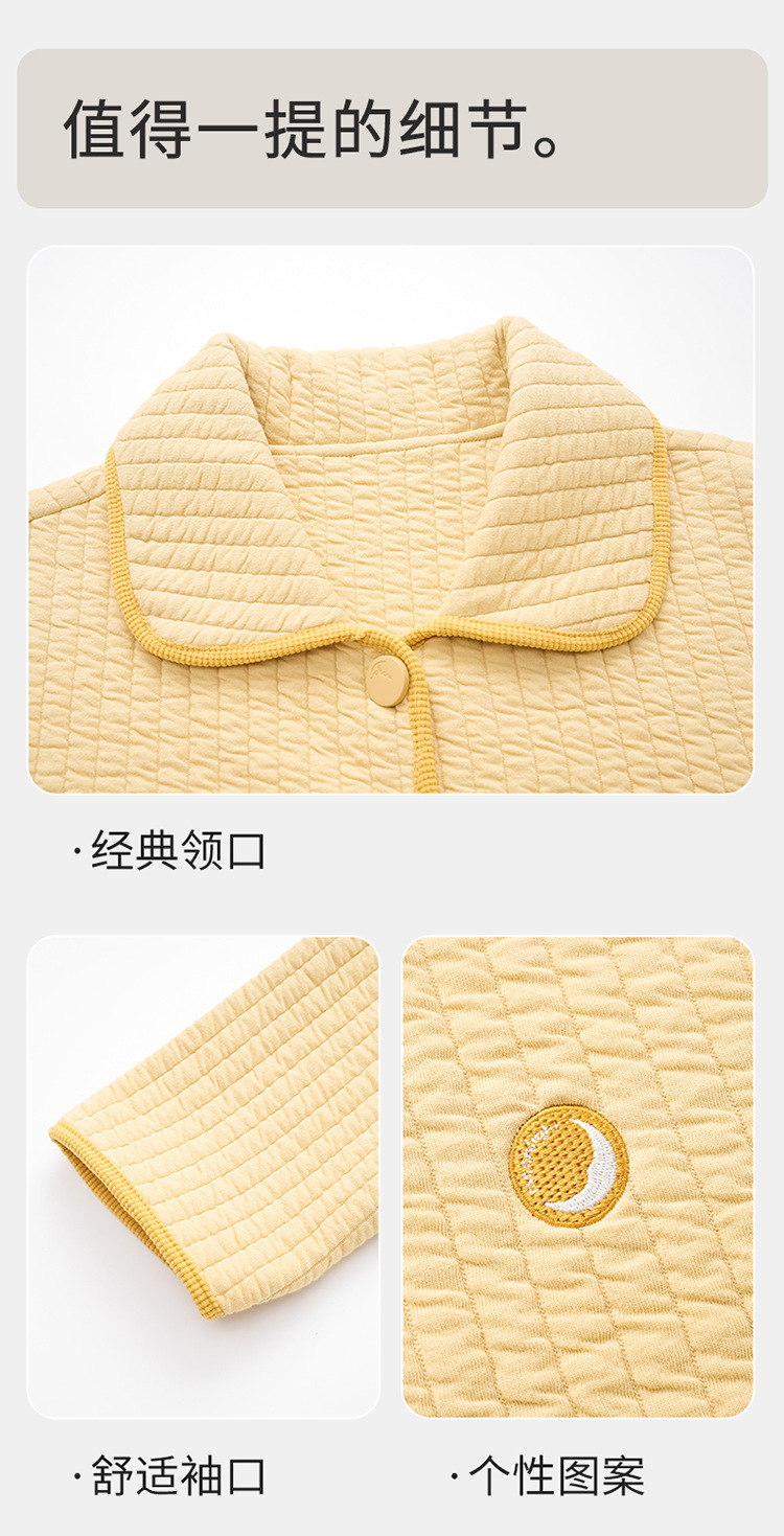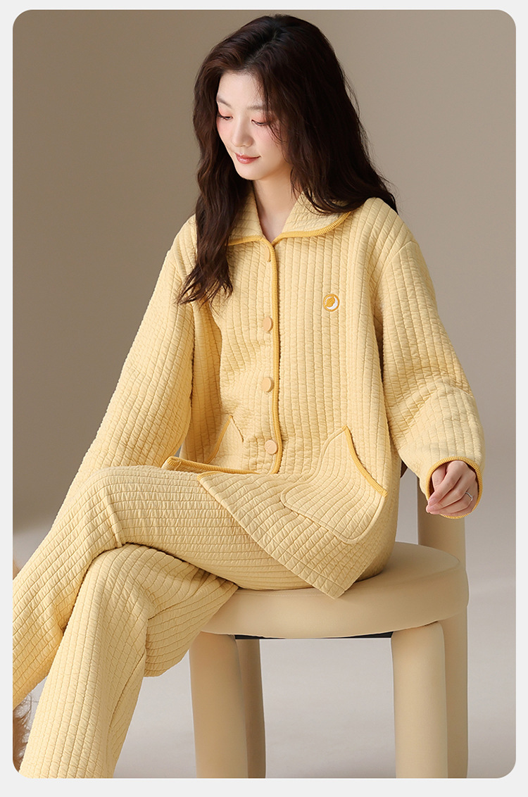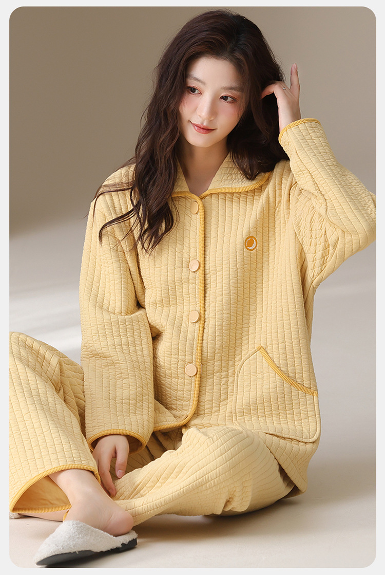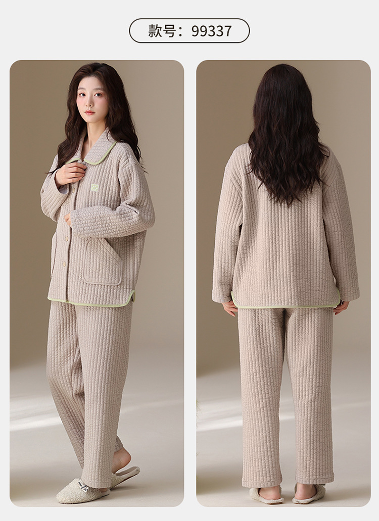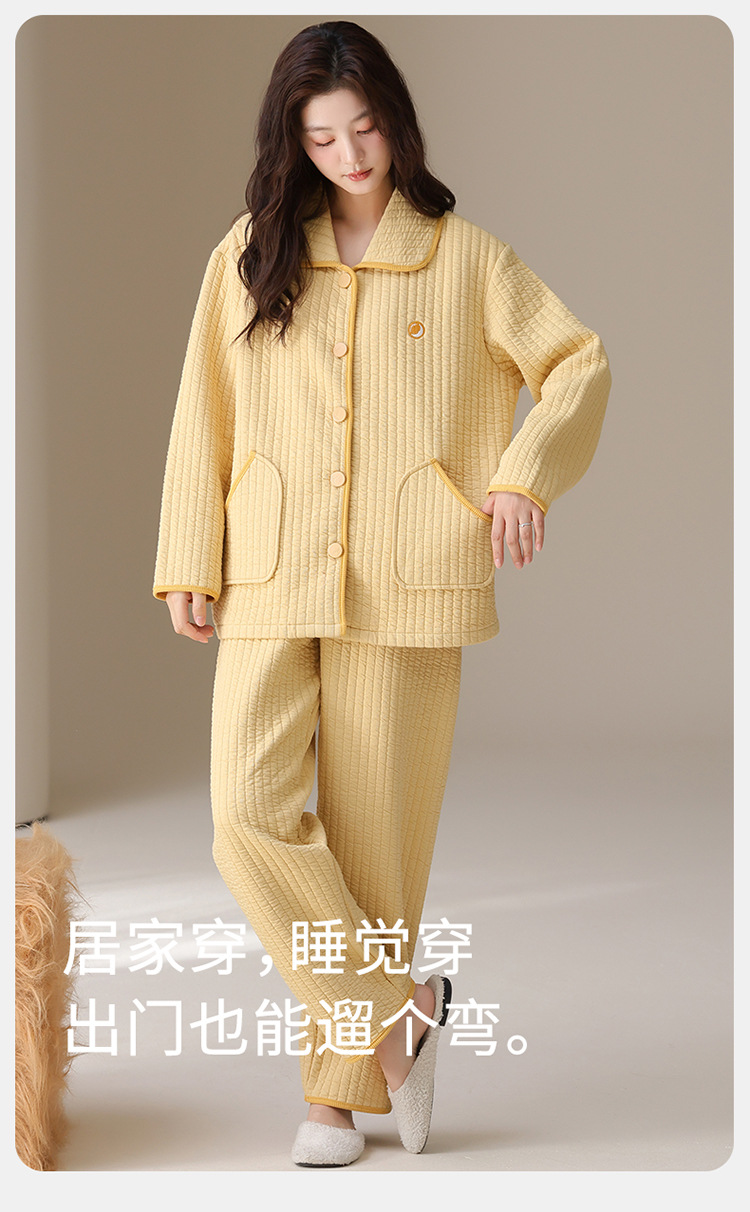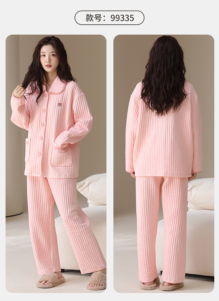 丁摩 睡衣女秋冬季新款空气棉夹层纯棉长袖加厚保暖家居服套装5ZF-338