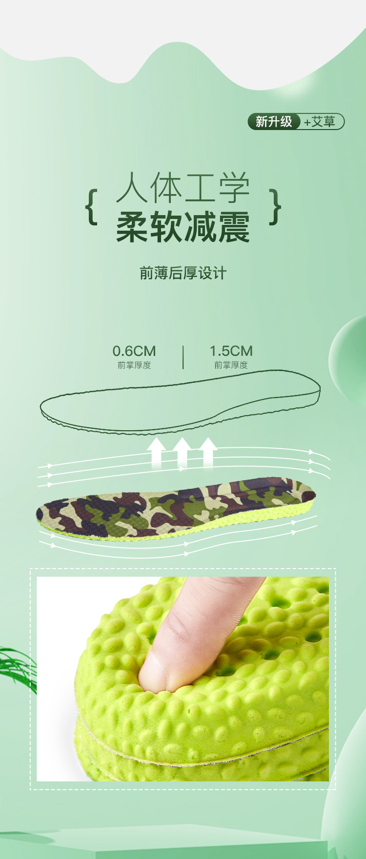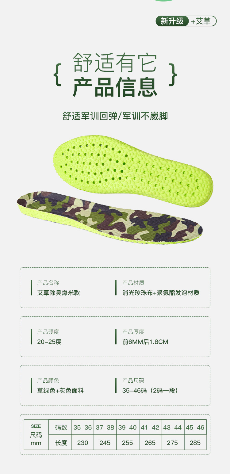 【军训专用】艾草迷彩军训 植物芳香除臭 聚氨酯发泡鞋垫