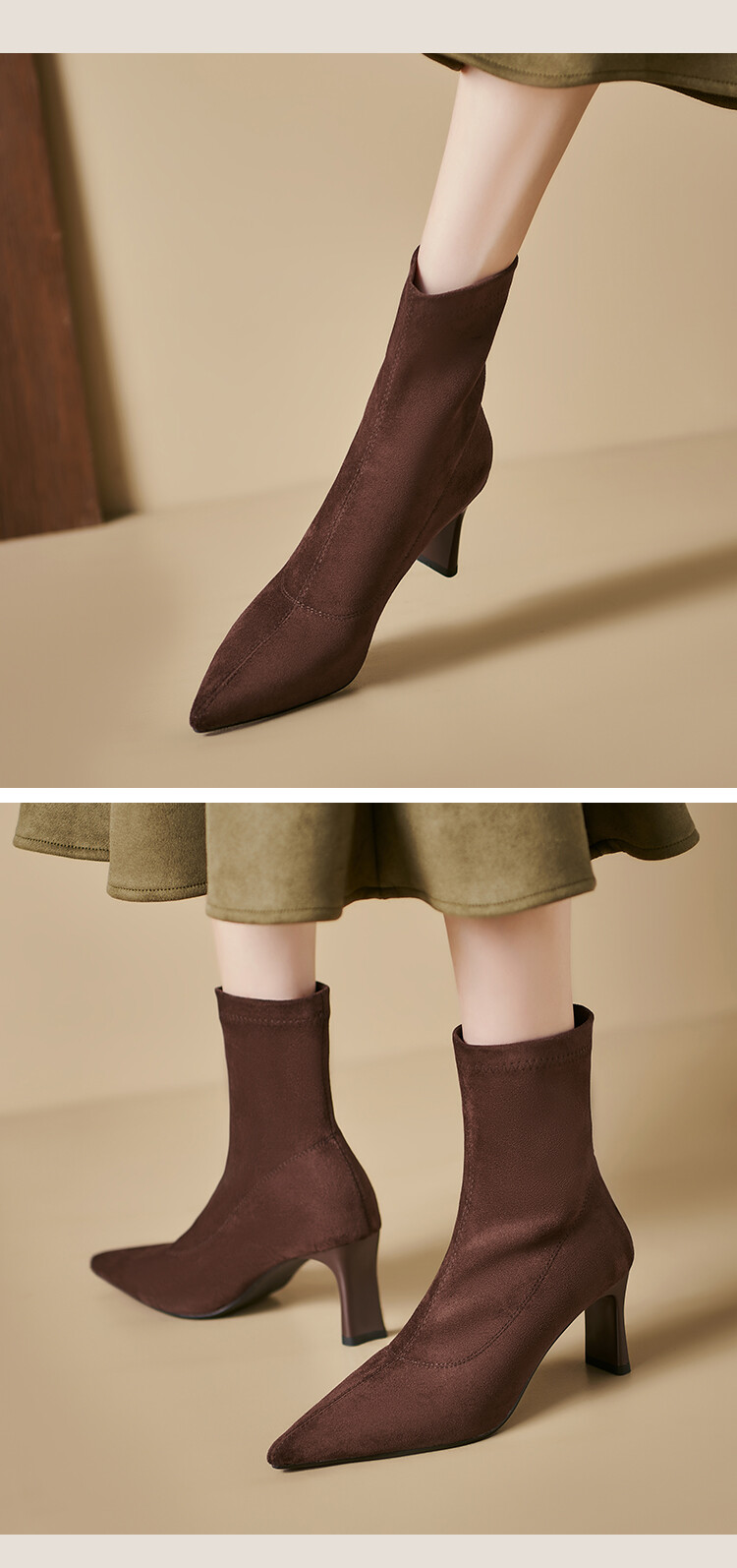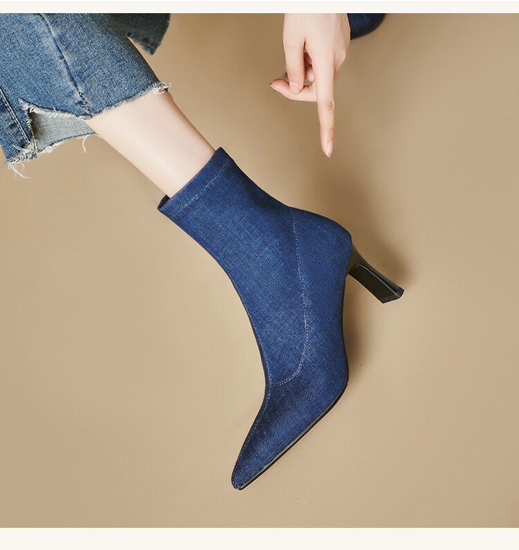 秋冬新款,韩版气质细跟绒面弹力瘦瘦靴简约通勤高跟短靴YSX7057【预售5天】