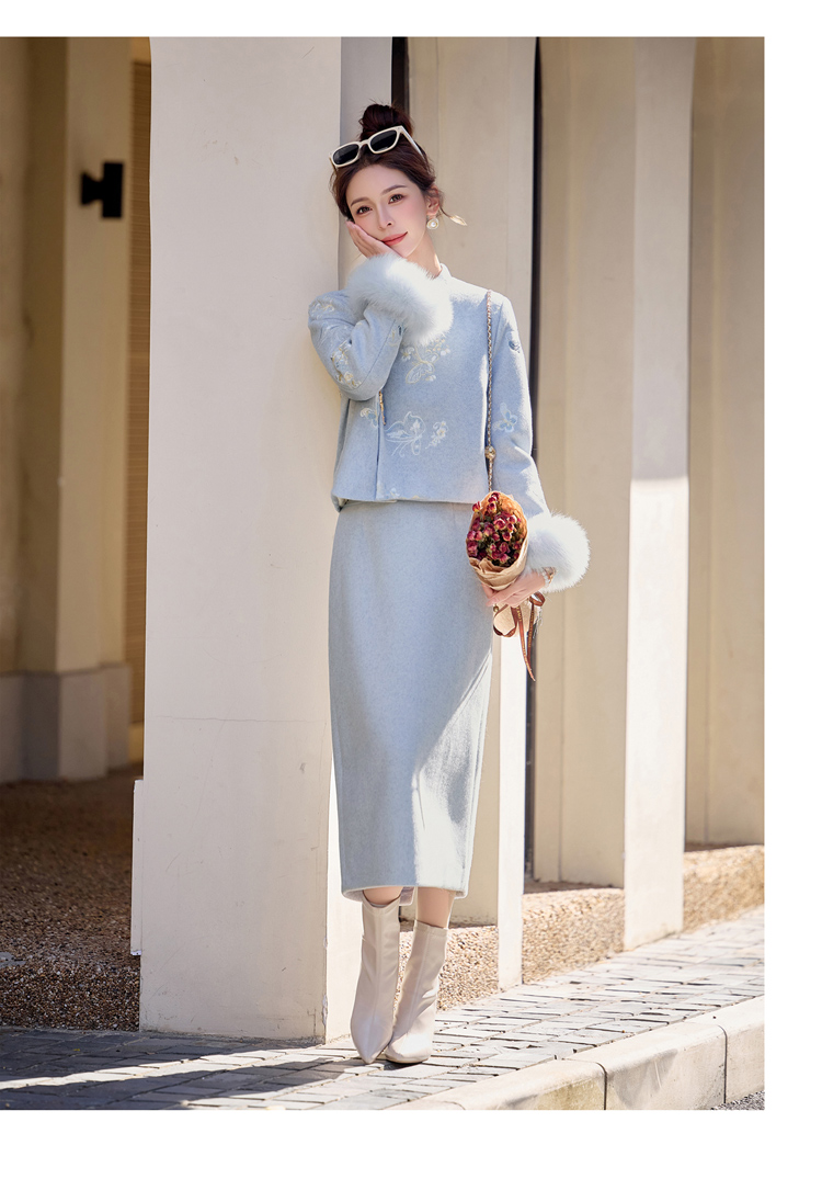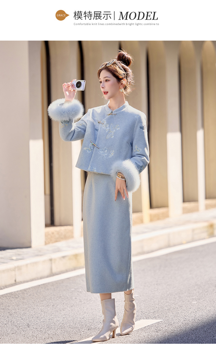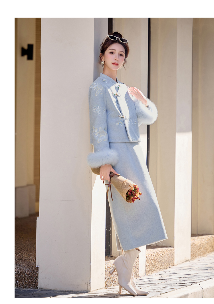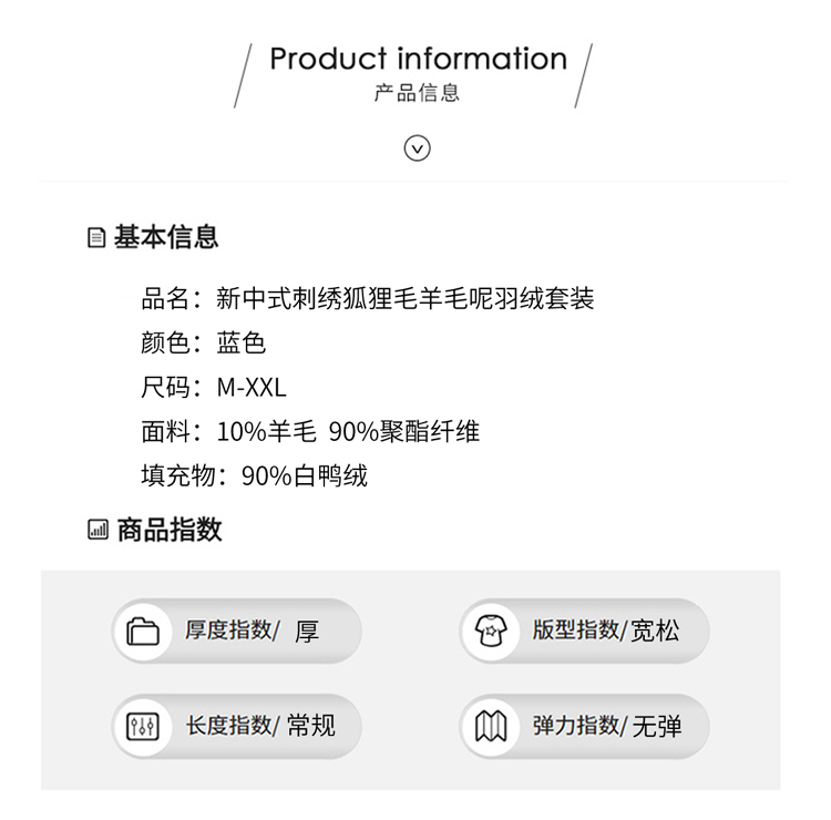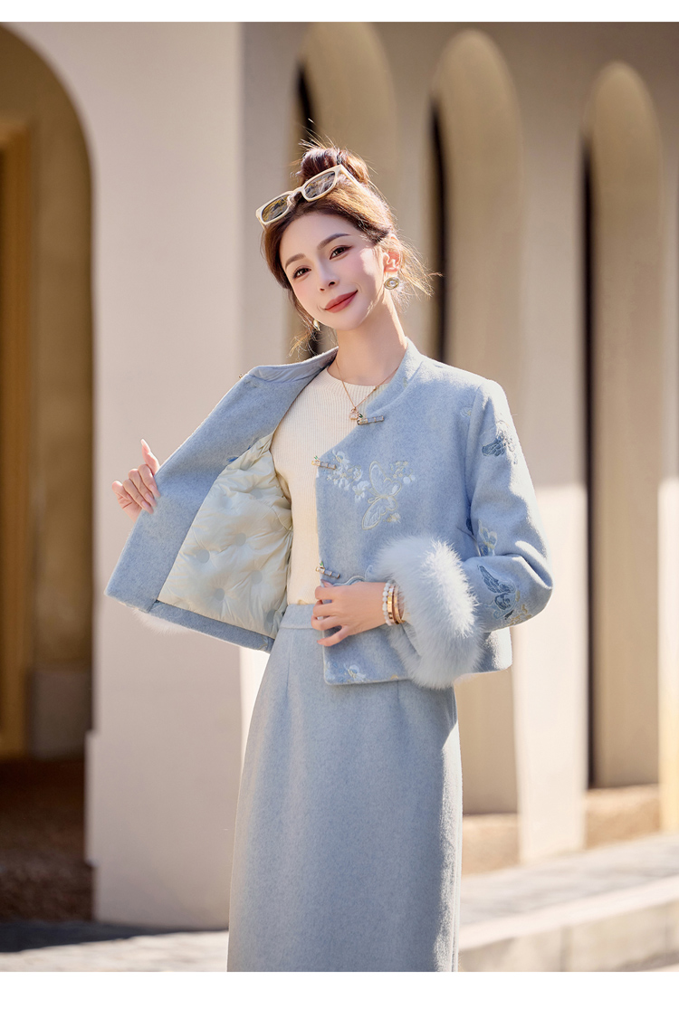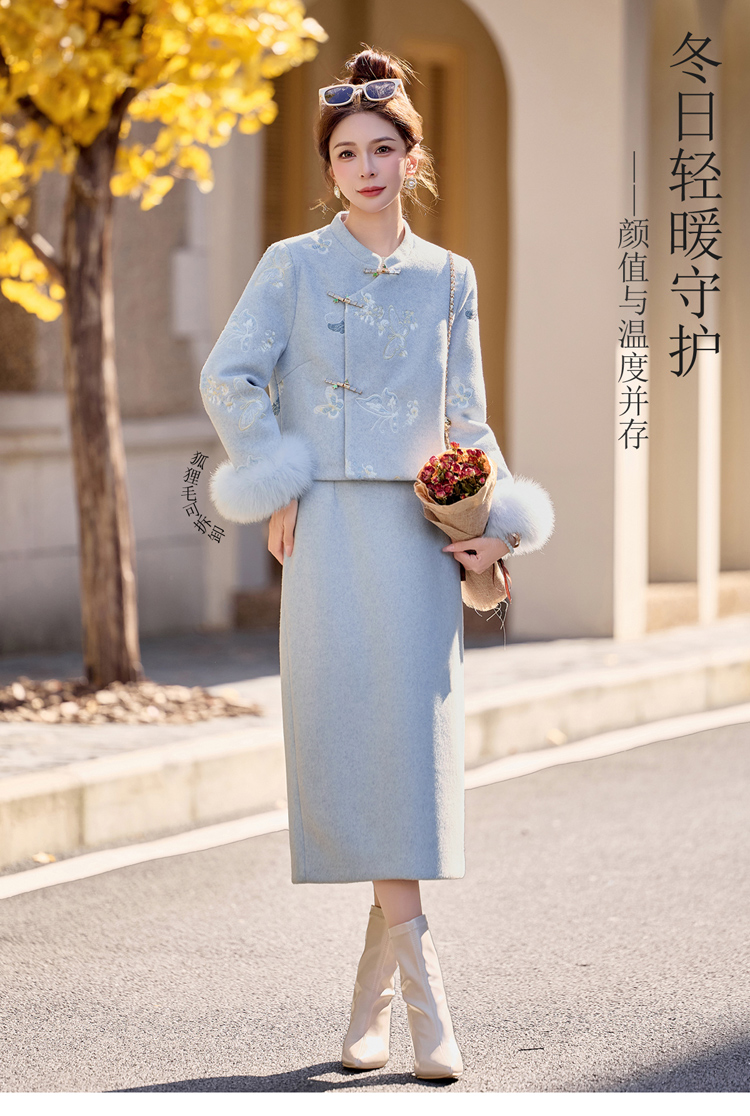 新中式刺绣羽绒套装,狐狸毛90绒HR-YJLY86880