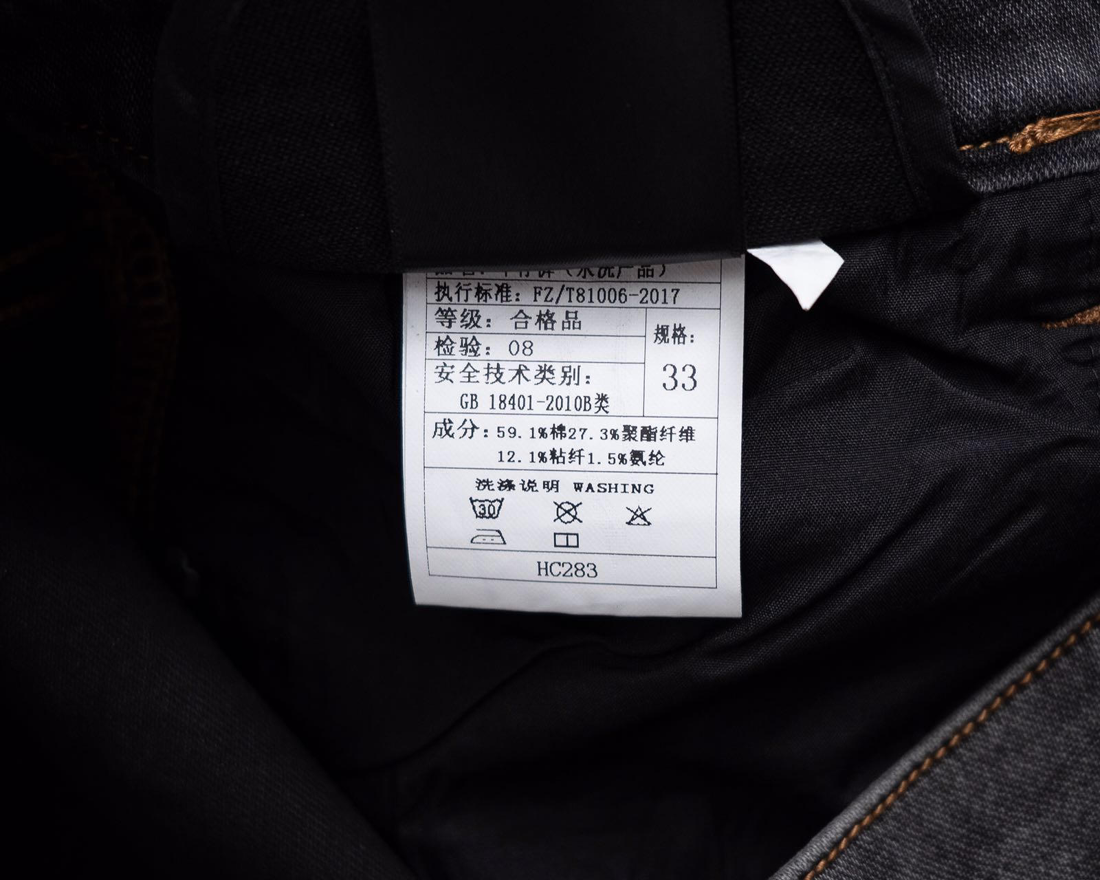面料:59.1%棉 27.3%聚酯纤维 12.1%粘纤 1.5%氨纶