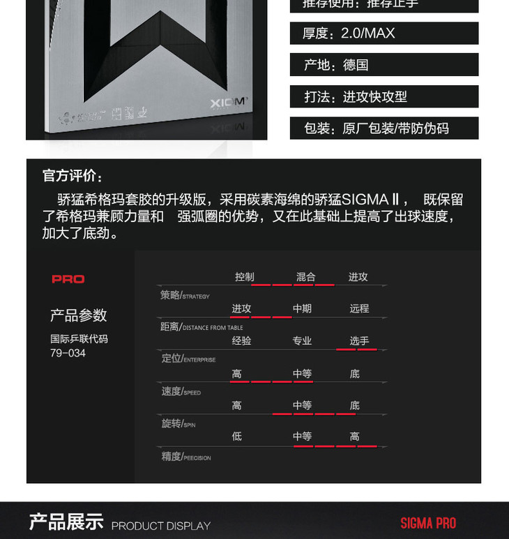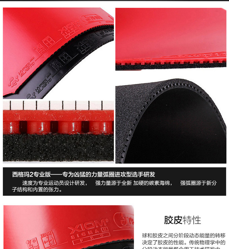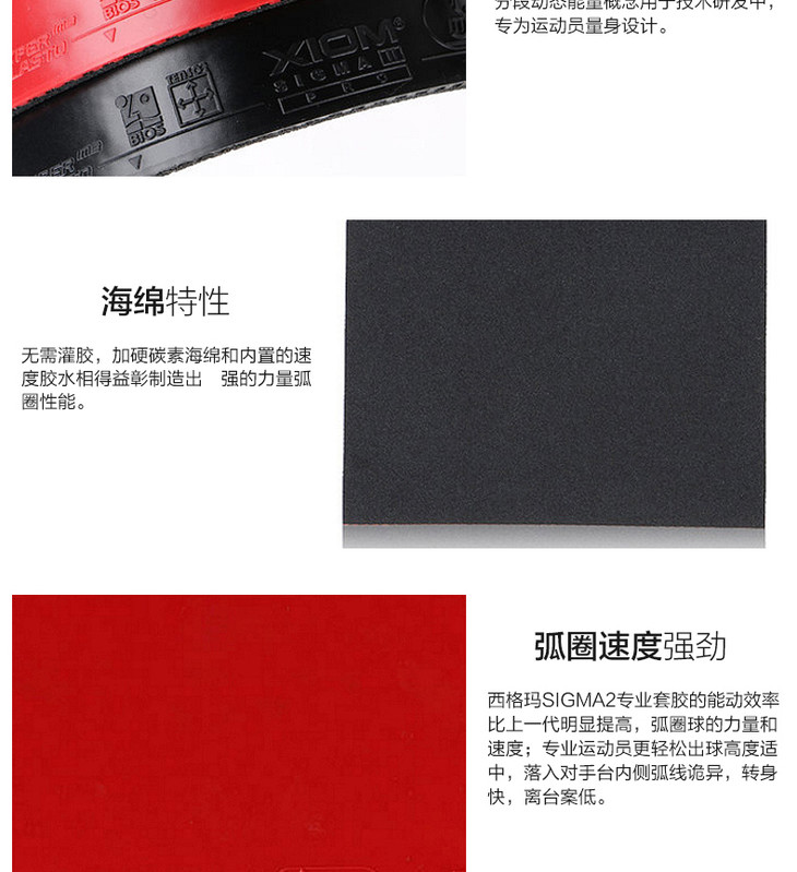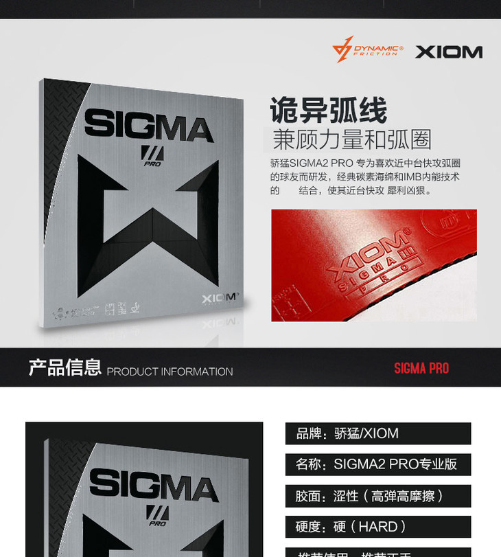 XIOM骄猛西格玛2乒乓球胶皮希格玛2专业版PRO 79-034专业正手用涩性反胶乒乓球套胶