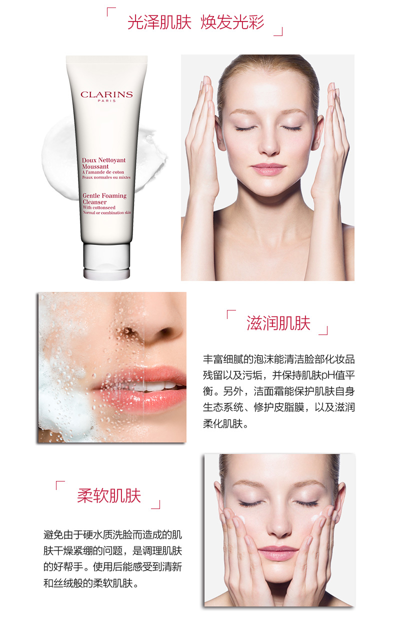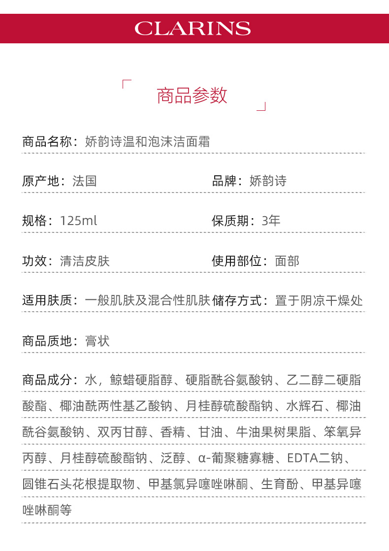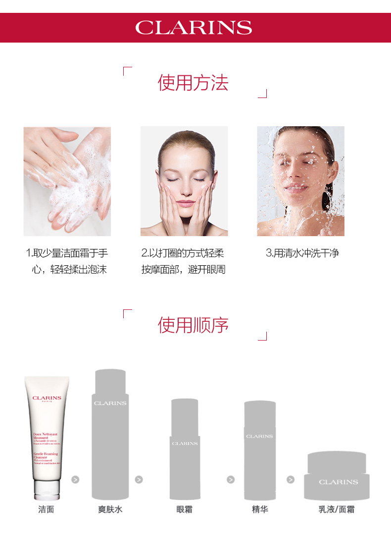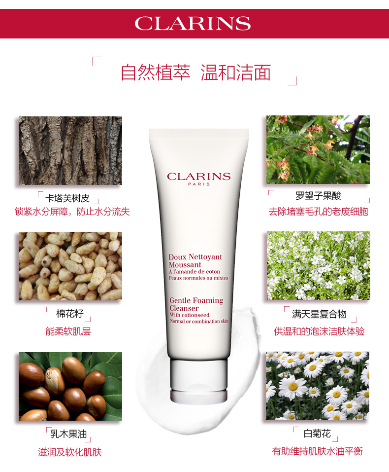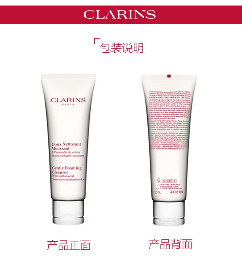 Clarins娇韵诗温和泡沫洁面膏面部深层清洁洗面奶洁面乳125ml