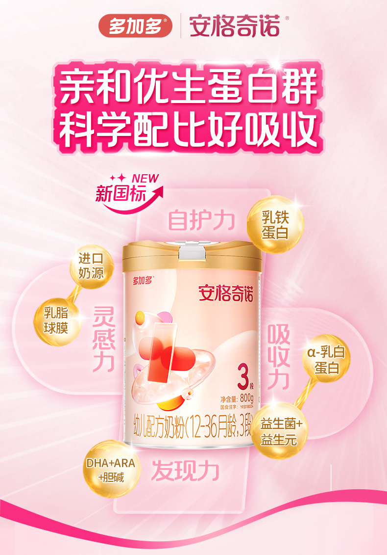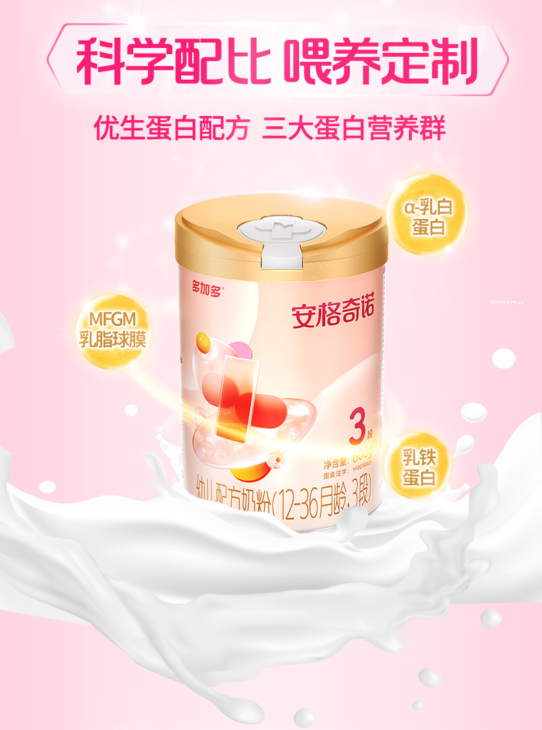 多加多安格奇诺3段800g大罐小分子幼儿配方奶粉1-3岁