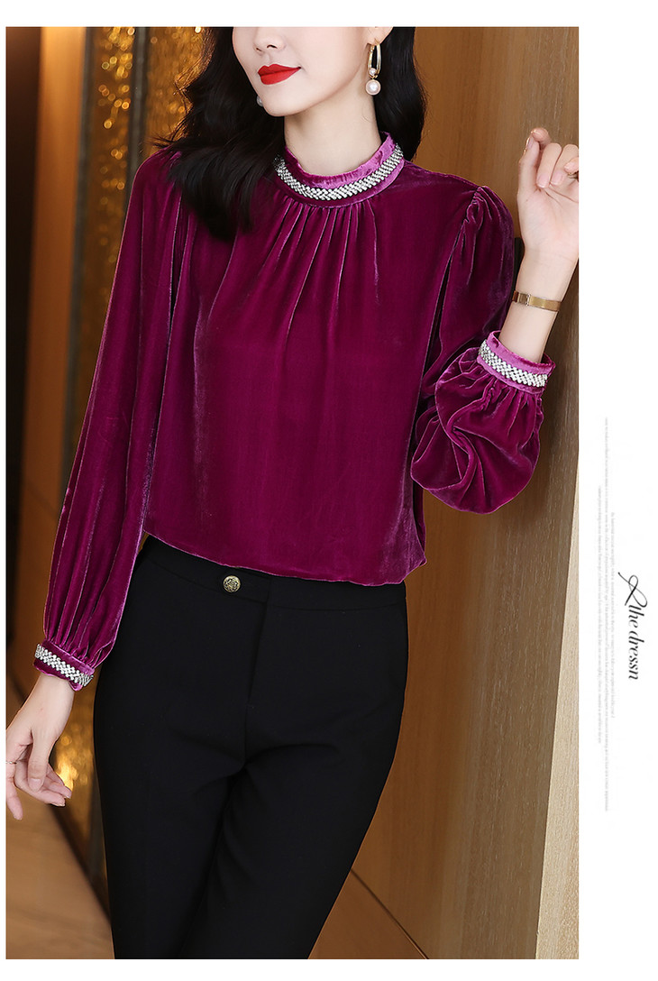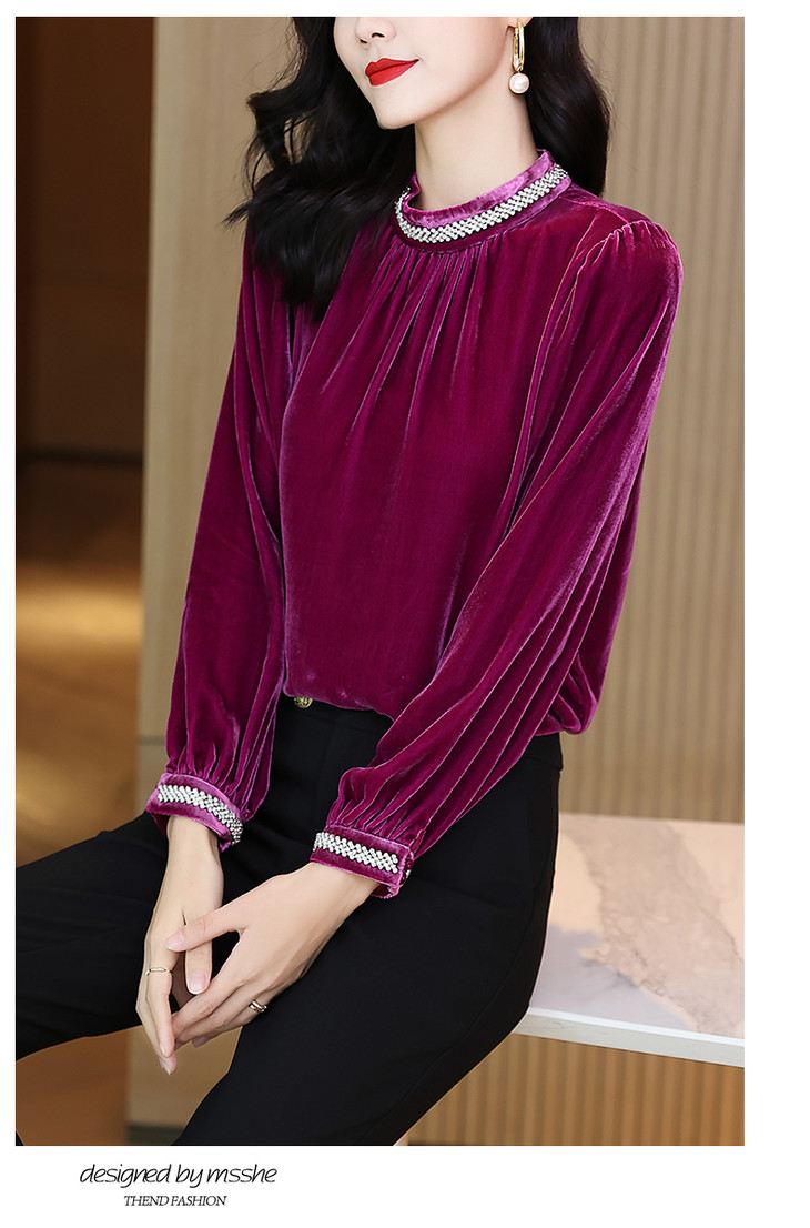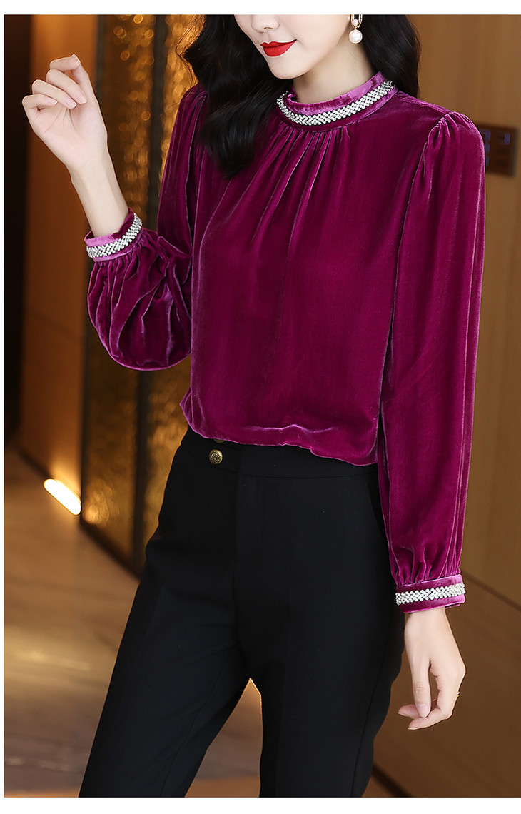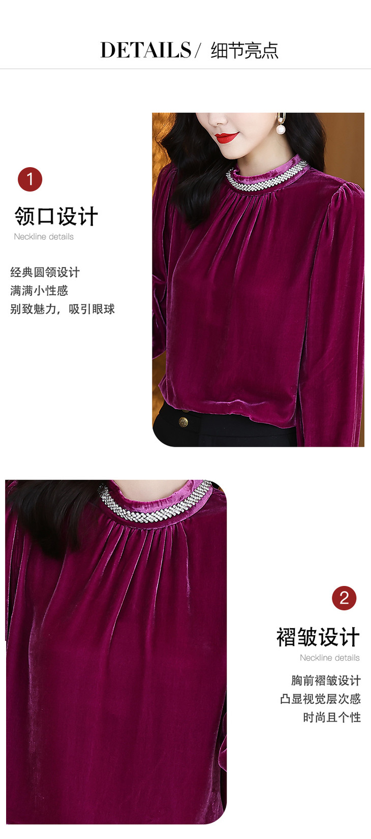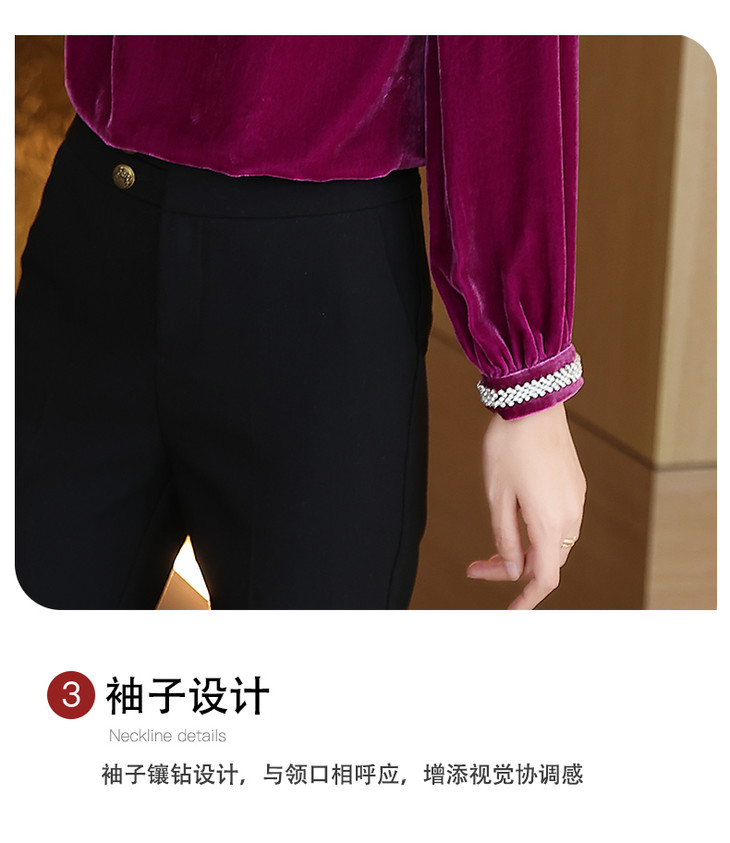 JH8868 2021秋装新款钉珠高端金丝绒上衣女