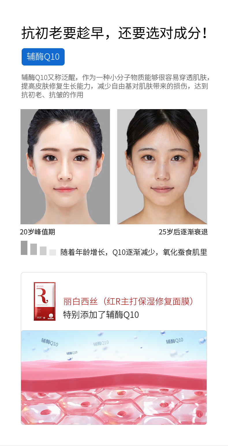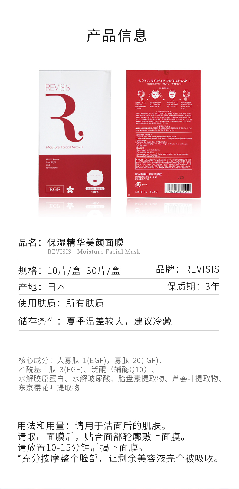 REVISIS 3GF寡肽精华面膜10片 补水保湿修复痘印收缩毛孔敏感肌
