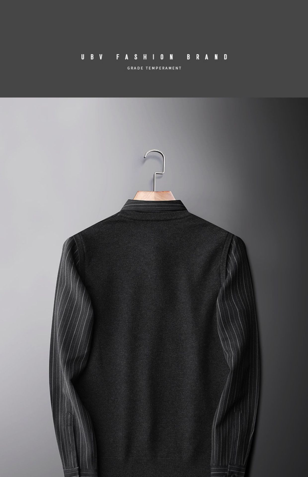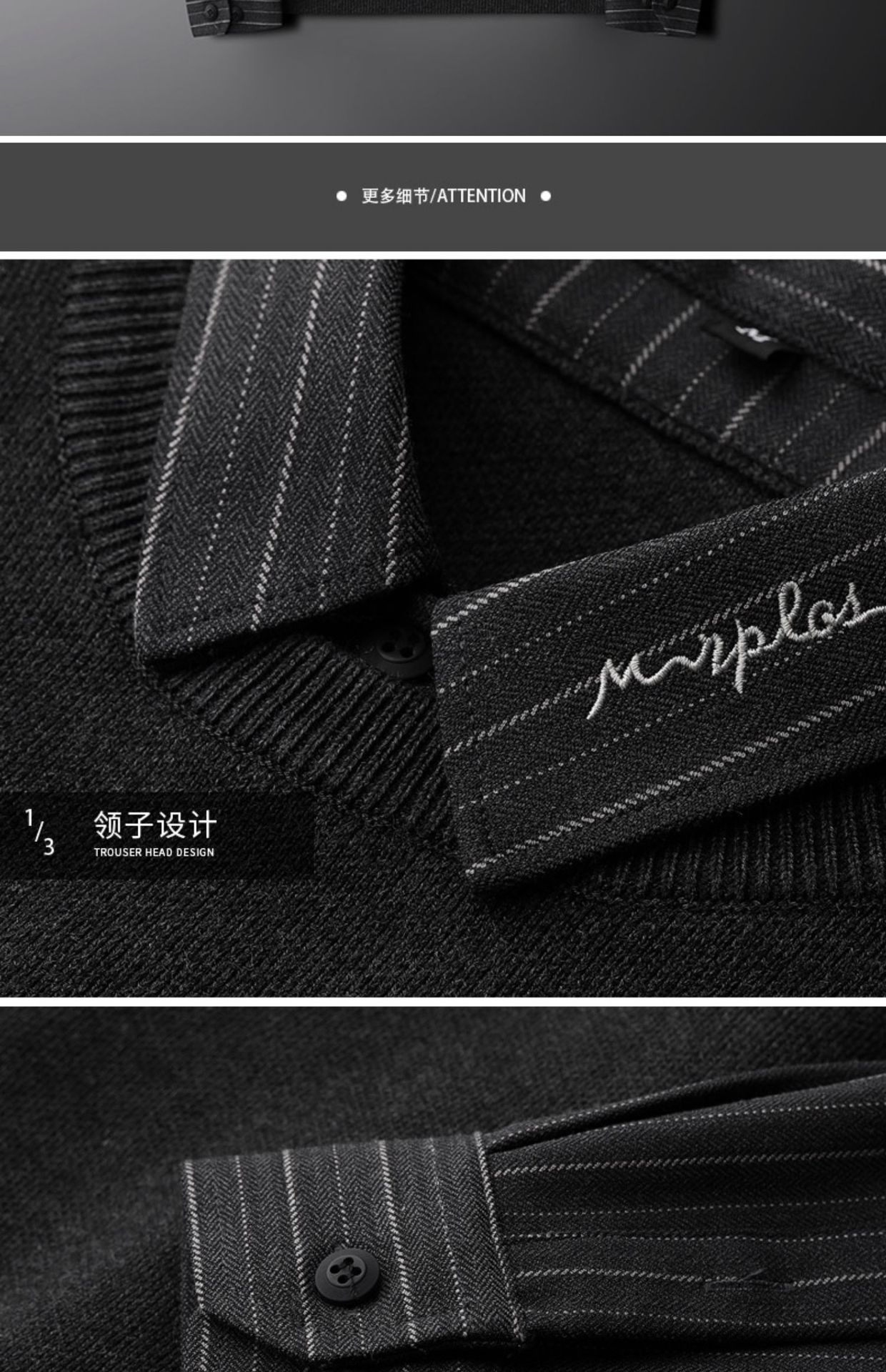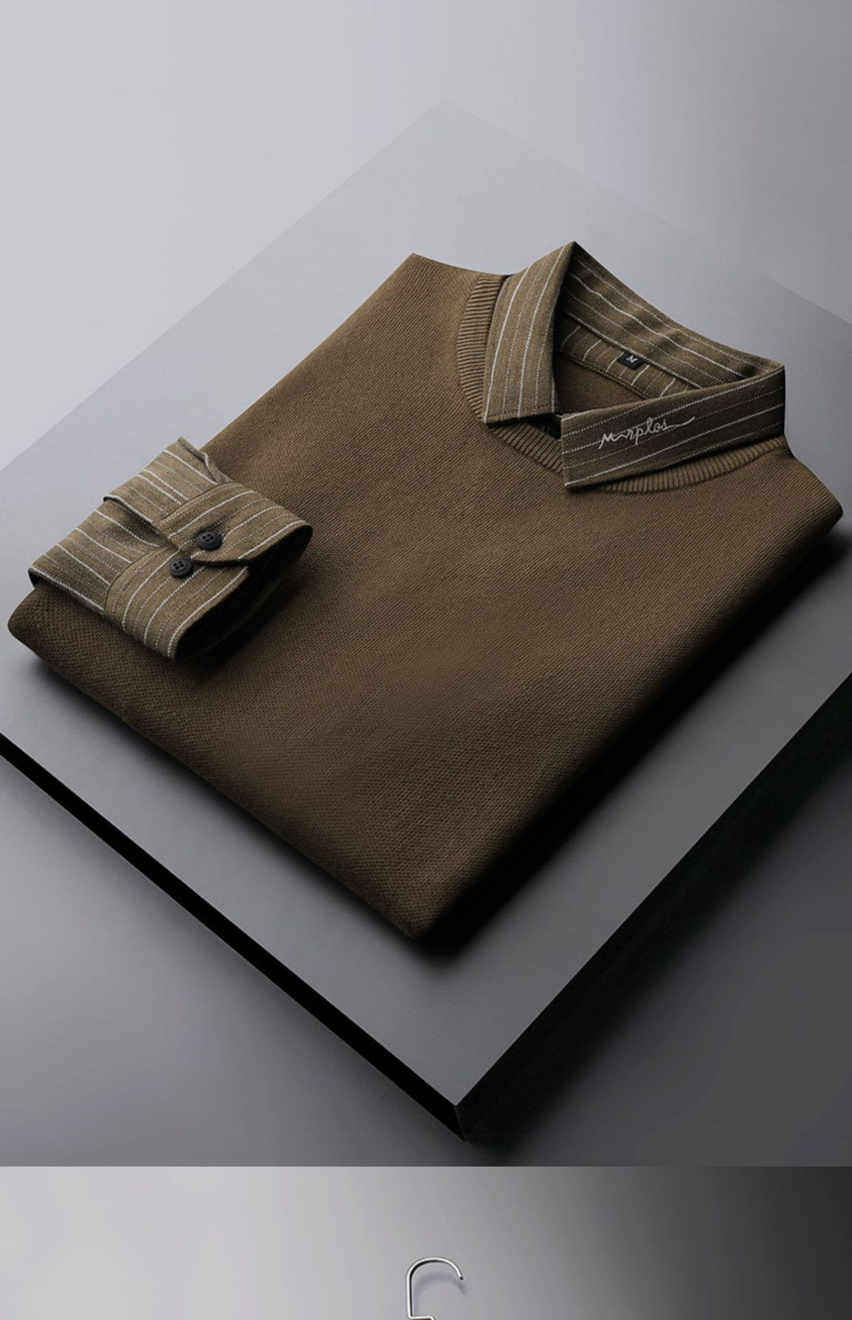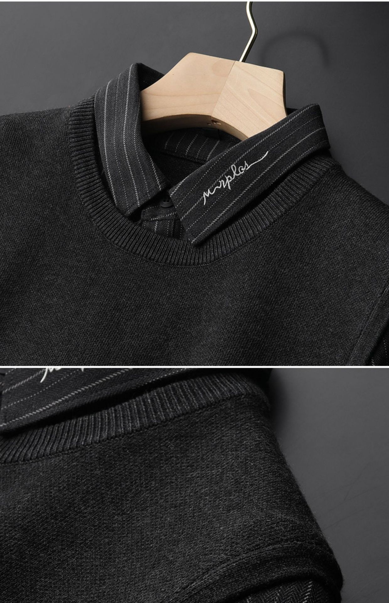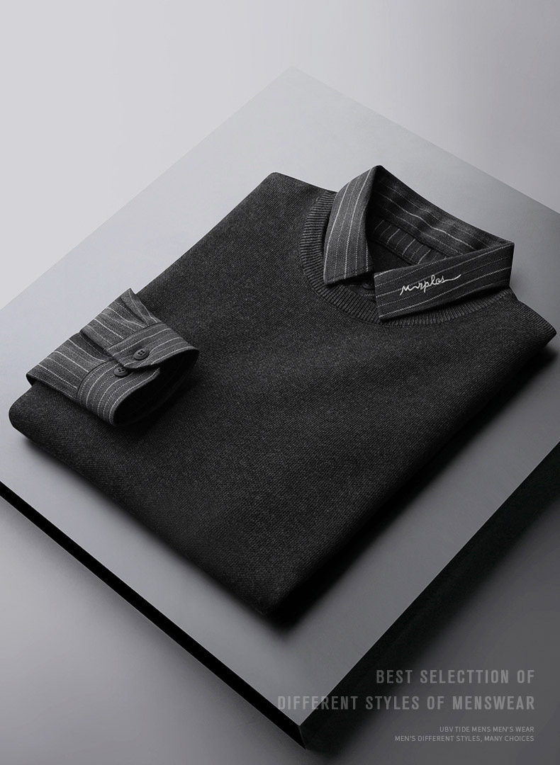 红览~2023秋冬刺绣衬衫领毛衣男士假两件加绒加厚休闲条纹针织衫JRMY1011