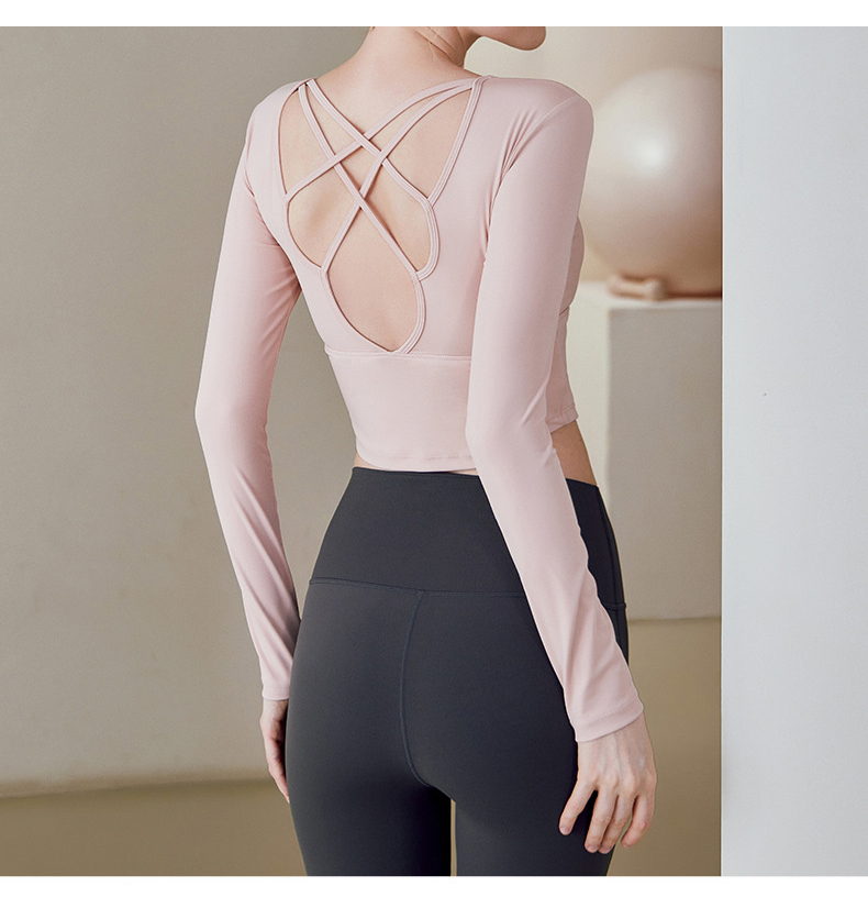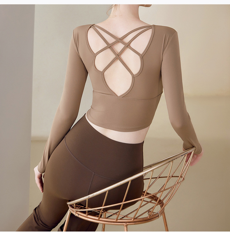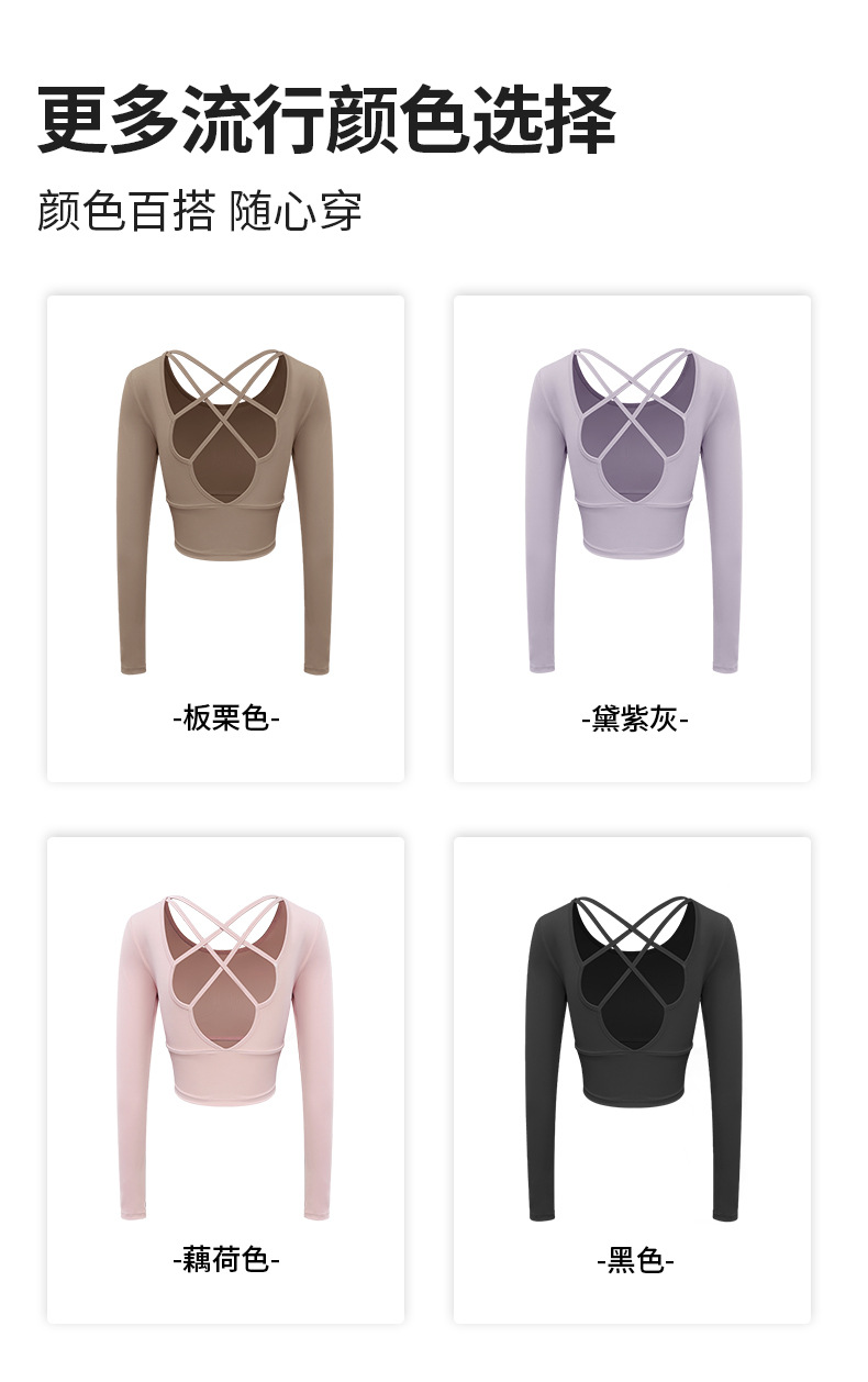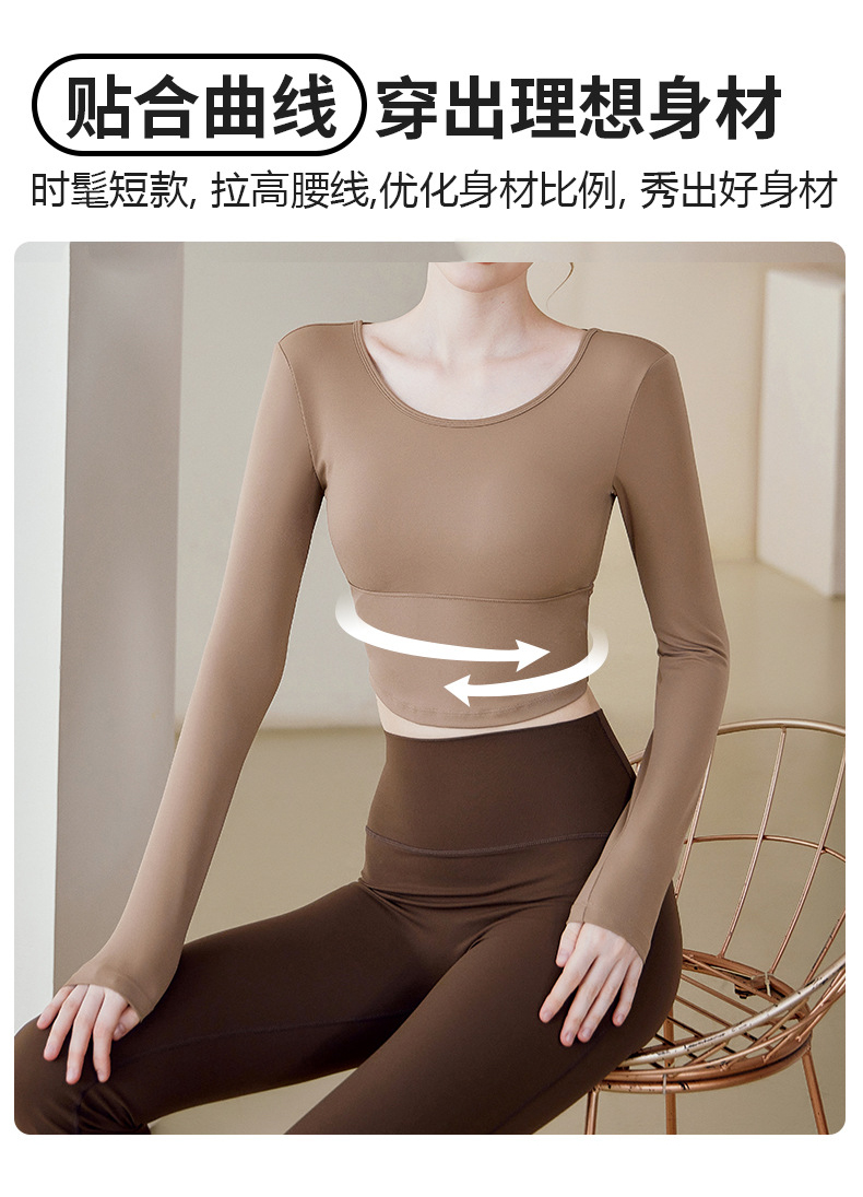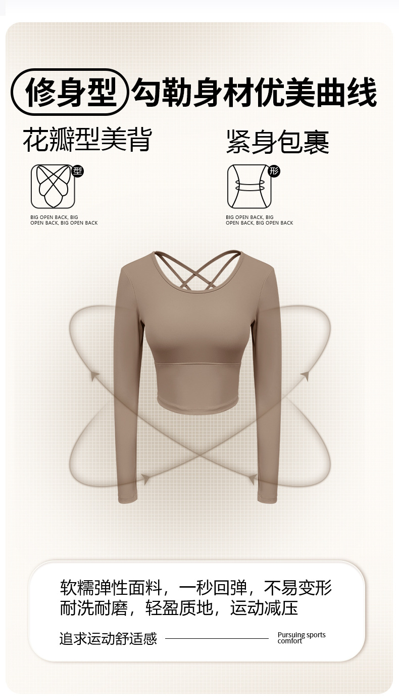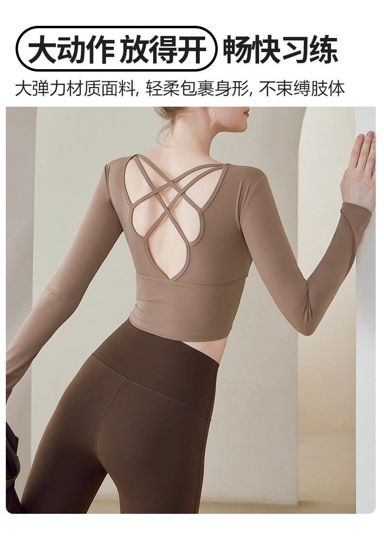 跃牌【健舞健美】系列 云感瑜伽服女新款花瓣美背带胸垫长袖t恤8687