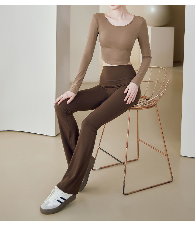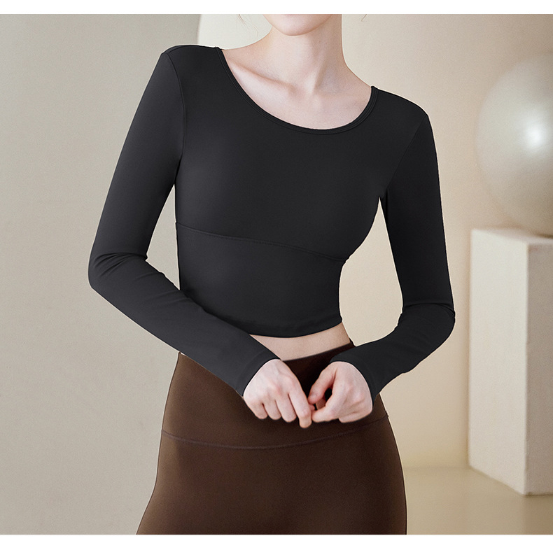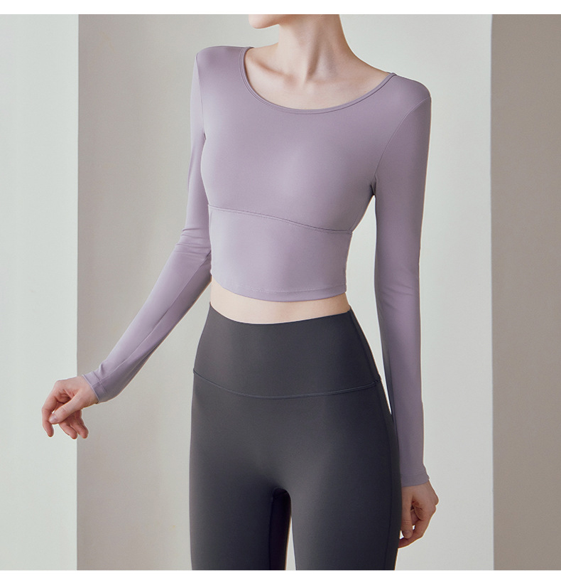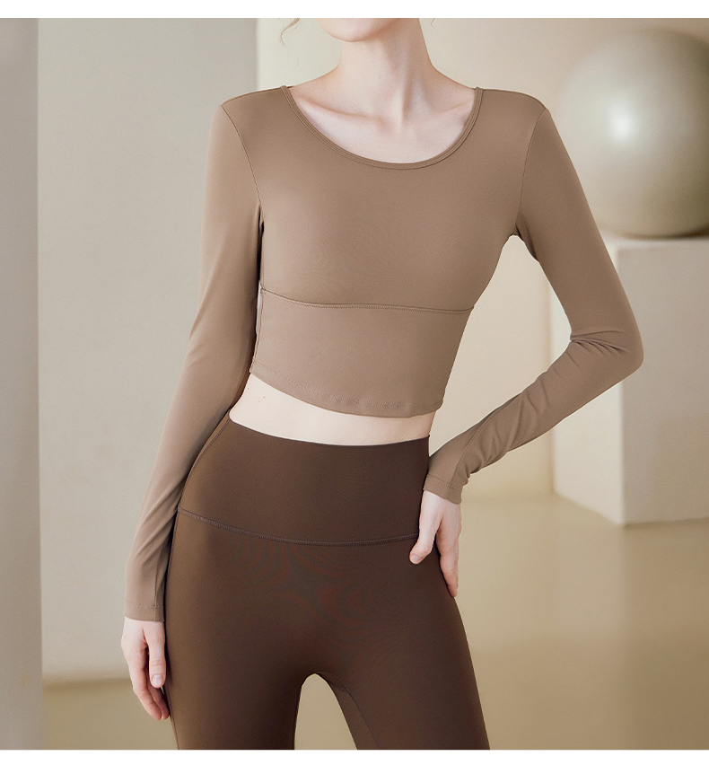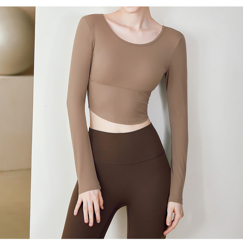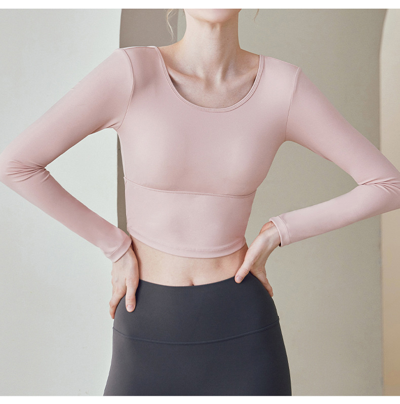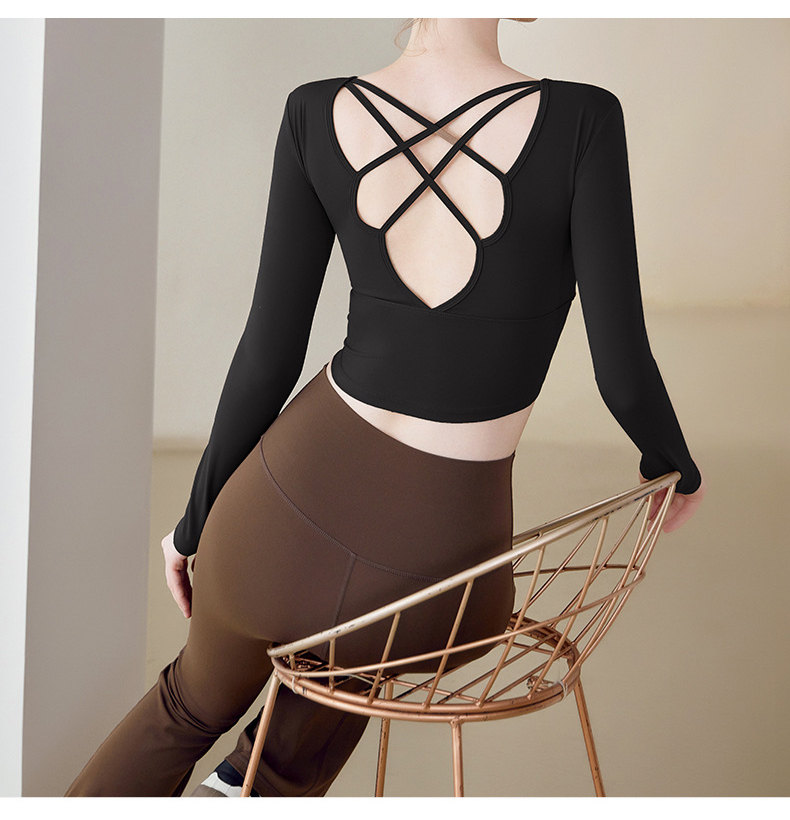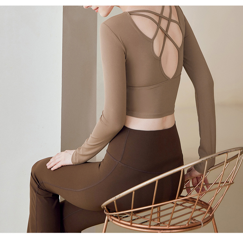 跃牌【健舞健美】系列 云感瑜伽服女新款花瓣美背带胸垫长袖t恤8687