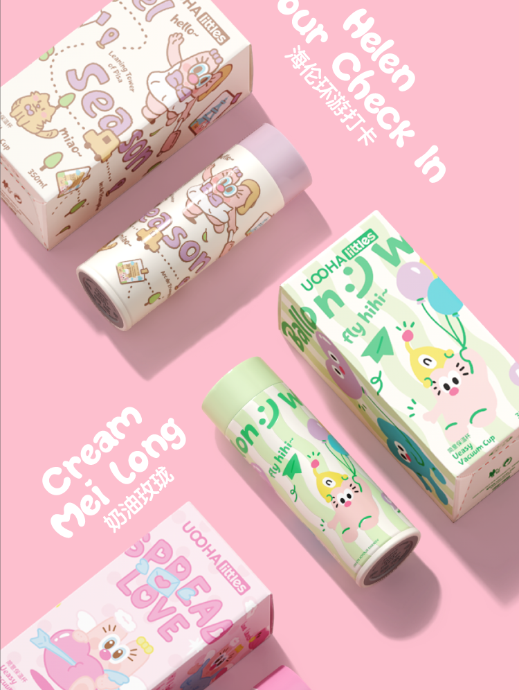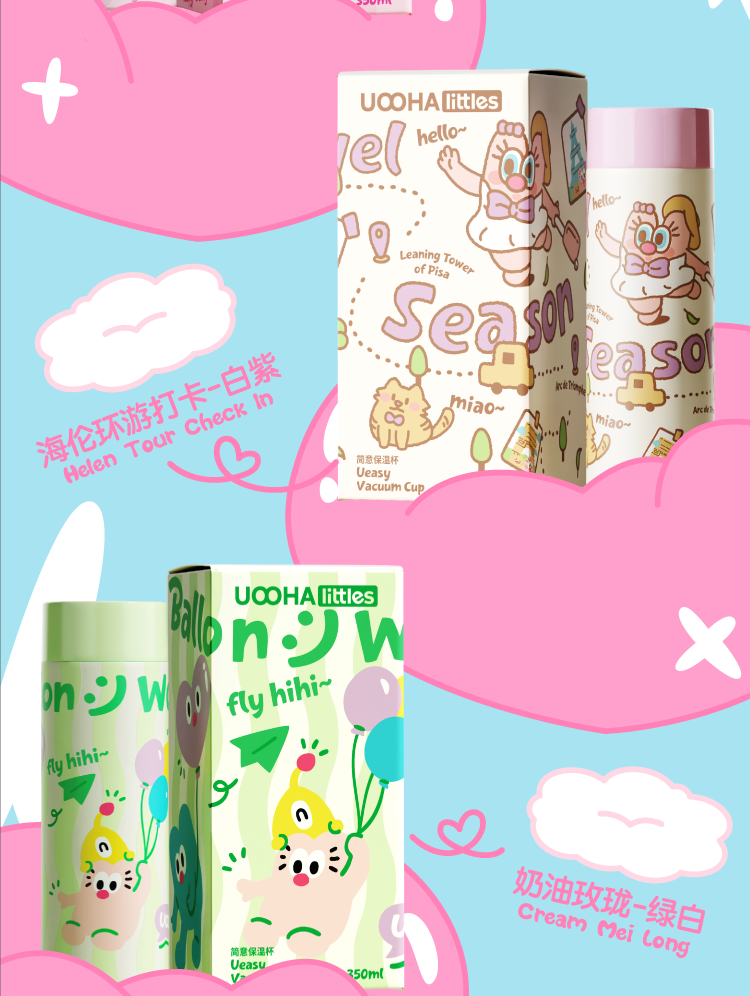 uooha简意保温杯奶油玫珑-绿自-350ml