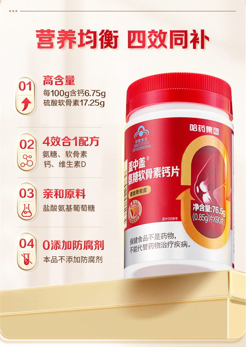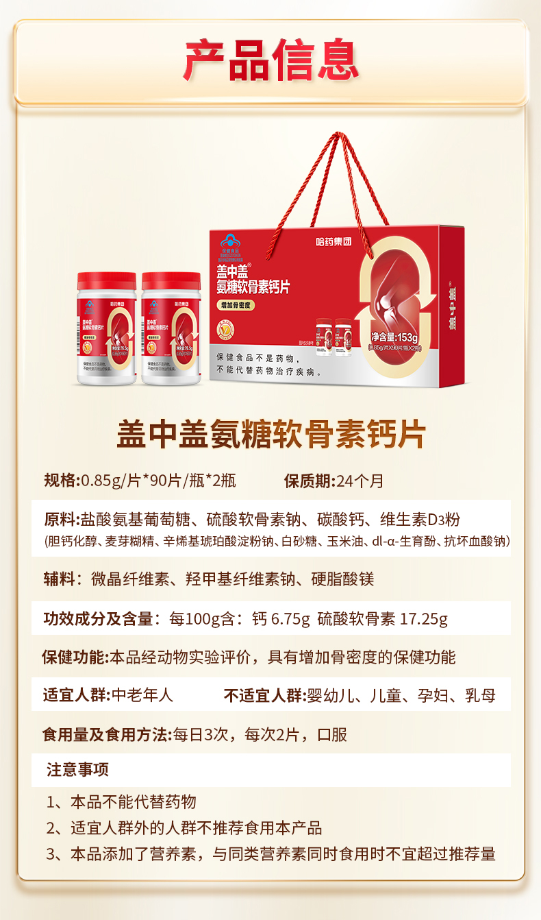 哈药 盖中盖氨糖软骨素维生素D钙片90粒*2礼盒