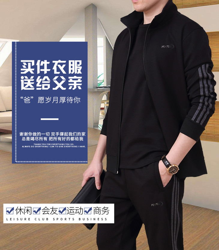 SP-中老年运动套装男秋冬季三件套加绒爸爸装大码中年男士休闲运动服