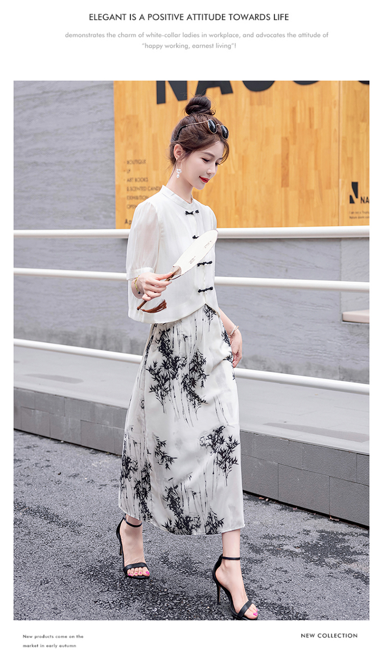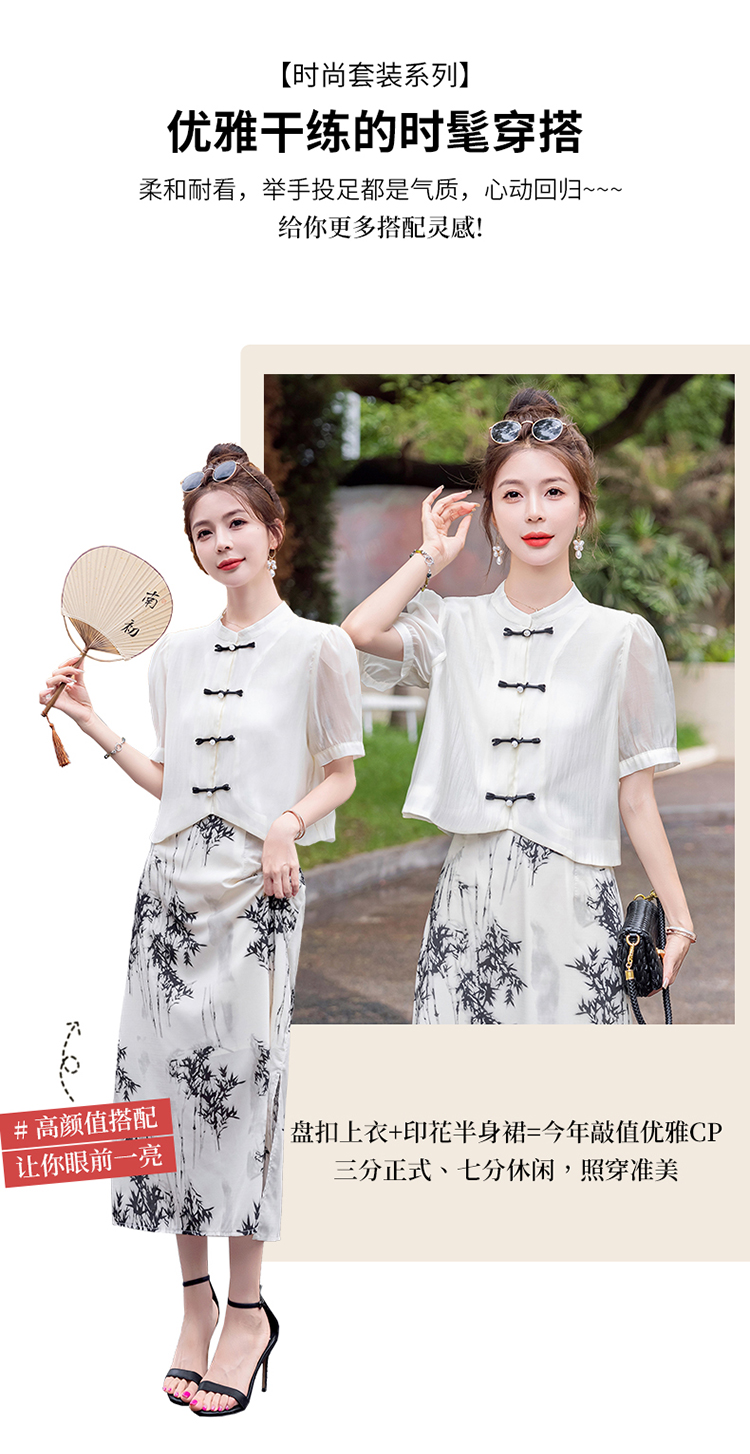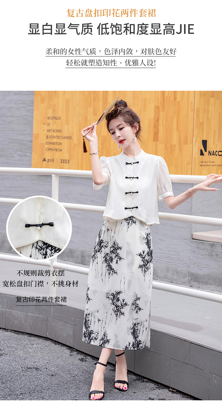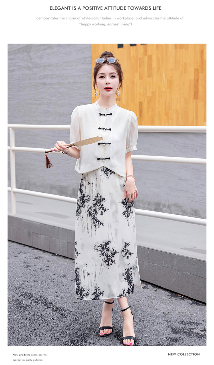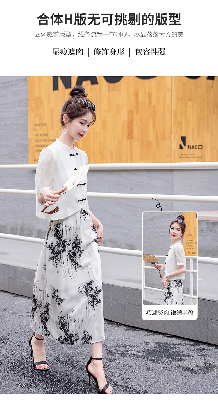 夏季新中式盘扣上衣水墨色半身裙两件套套装XMYR2358-1