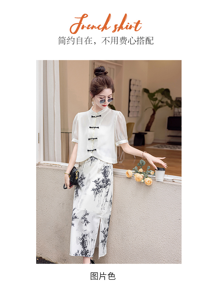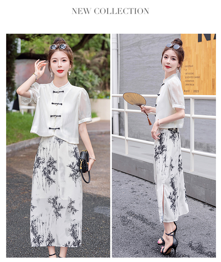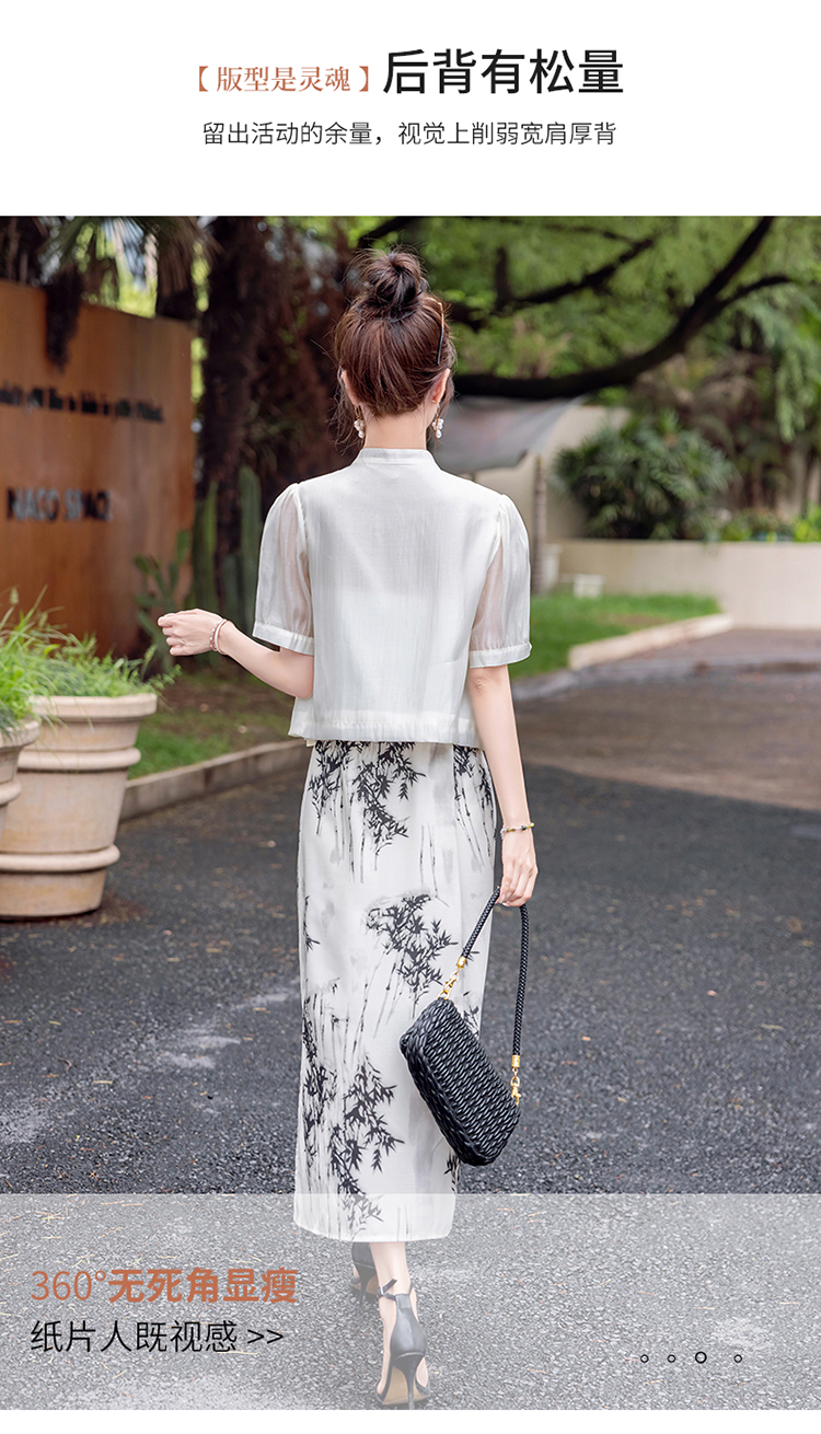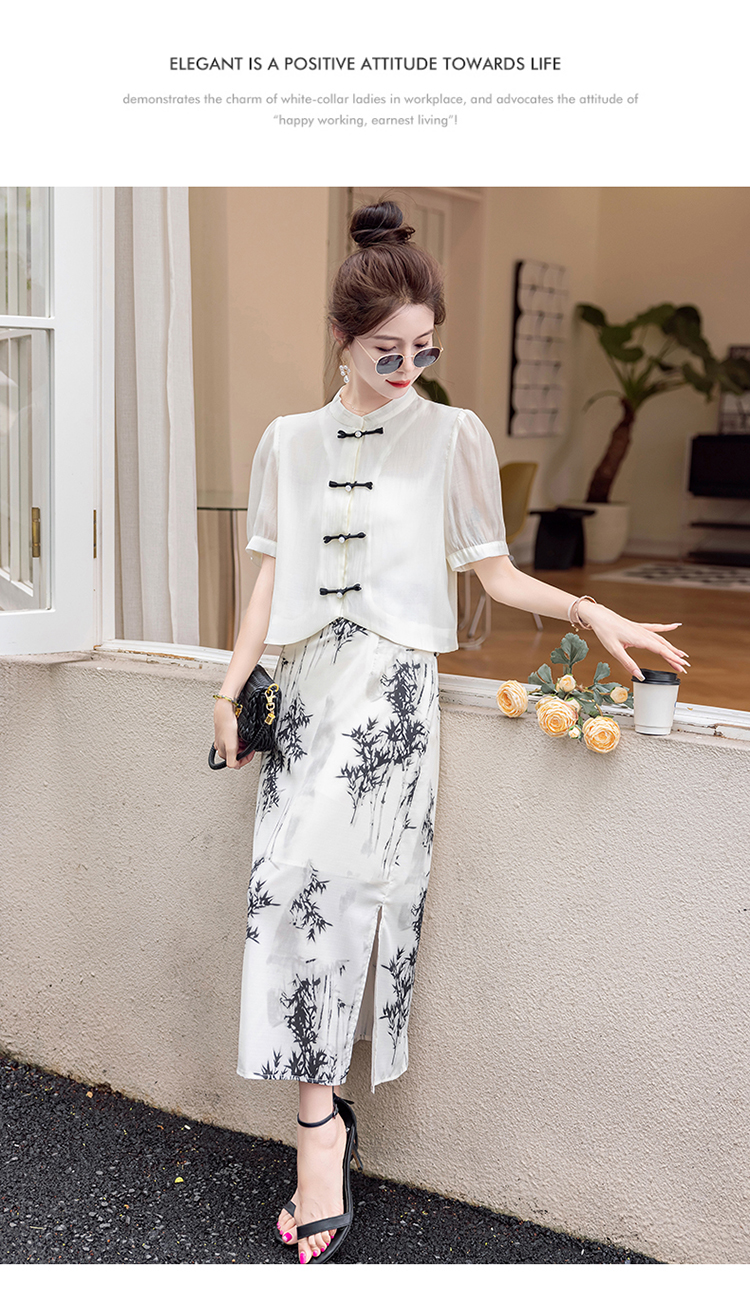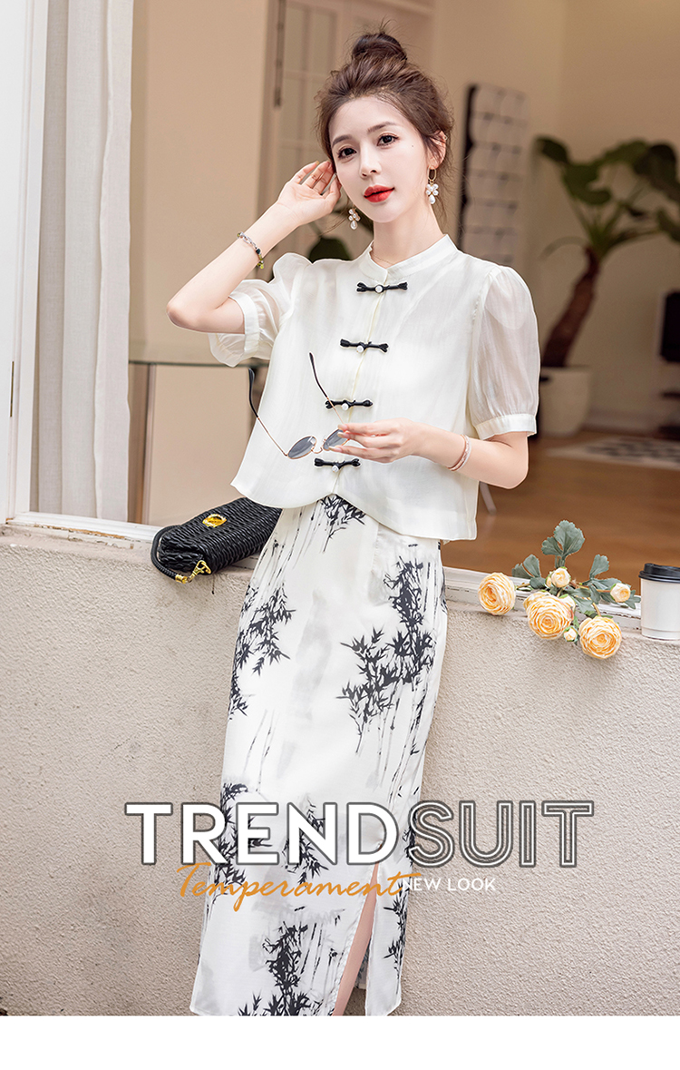 夏季新中式盘扣上衣水墨色半身裙两件套套装XMYR2358-1