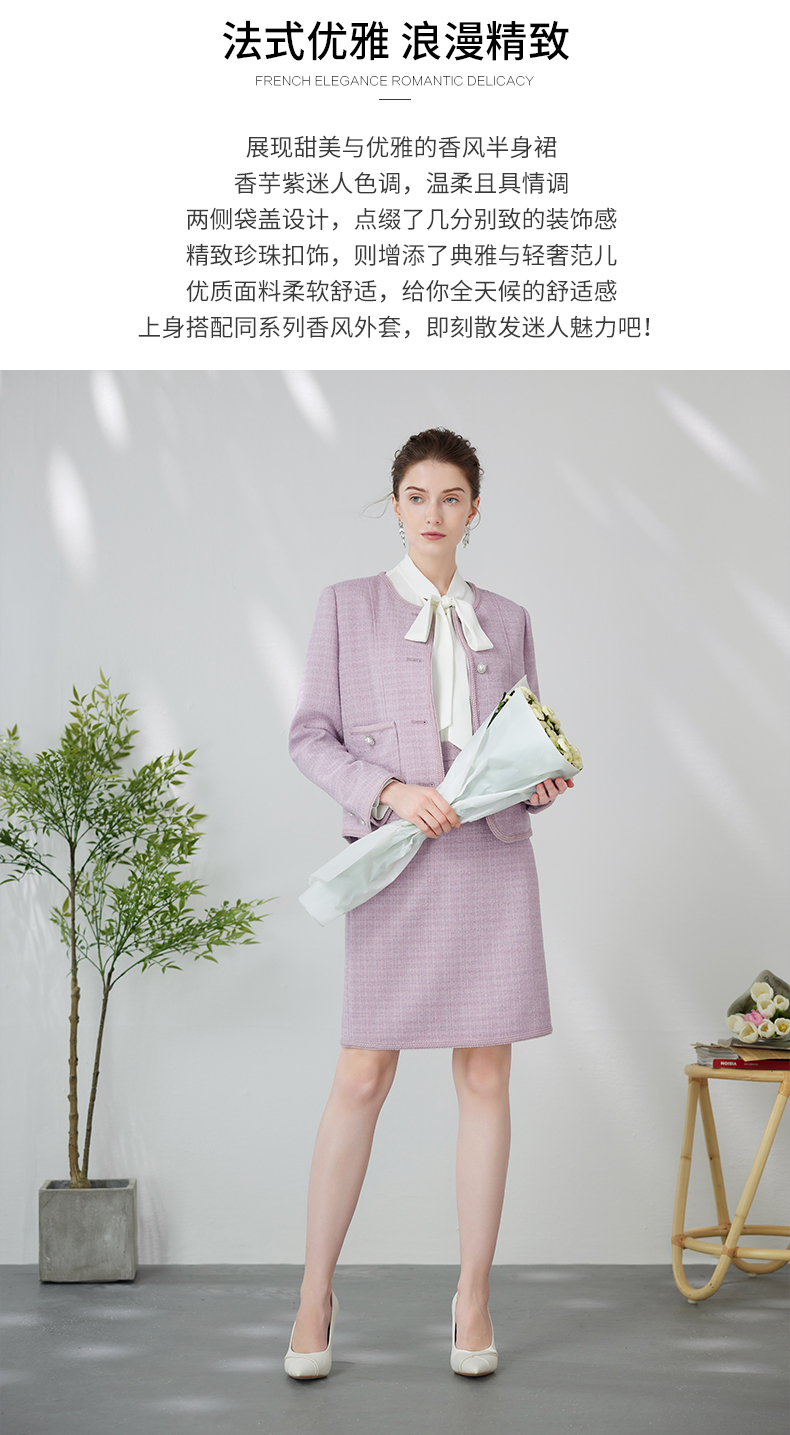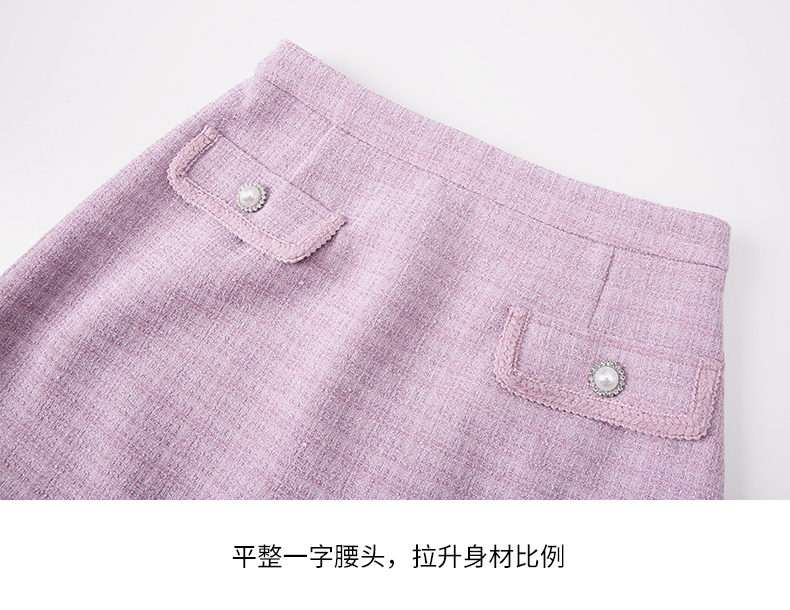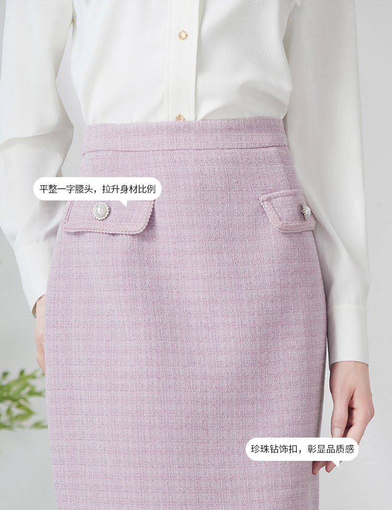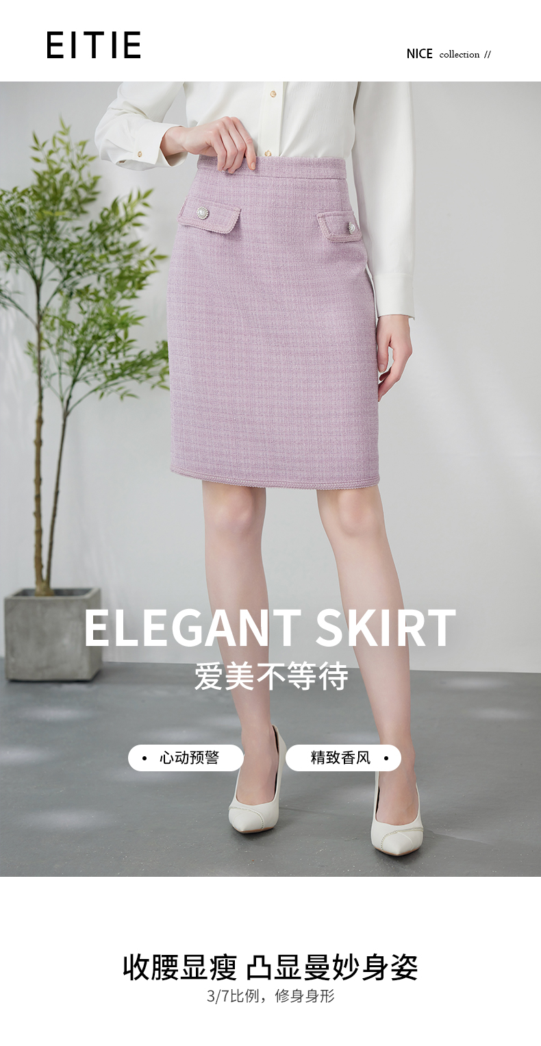 EITIE爱特爱优雅复古小香风千金气质高腰a字浅紫色半身裙24春新款A2406305