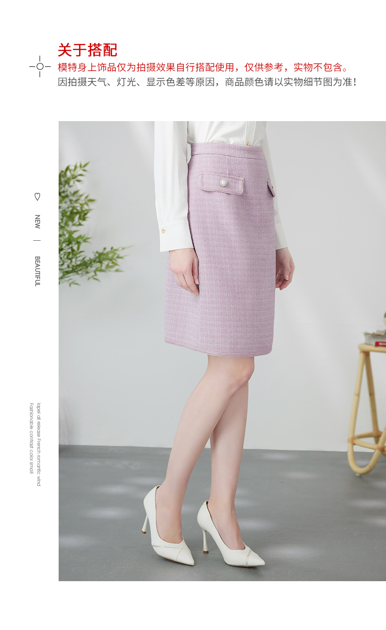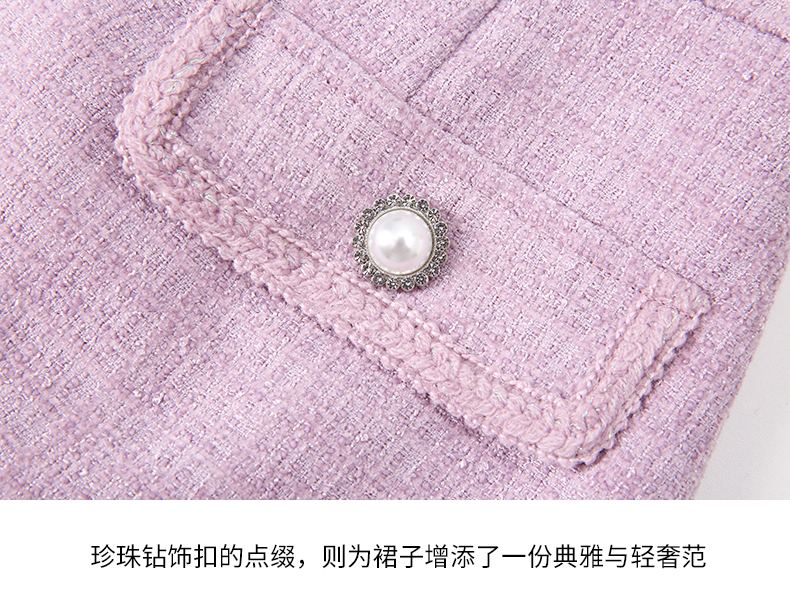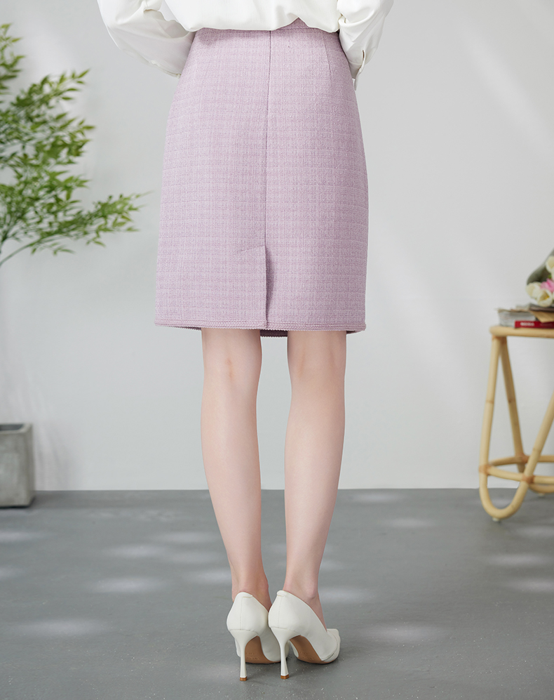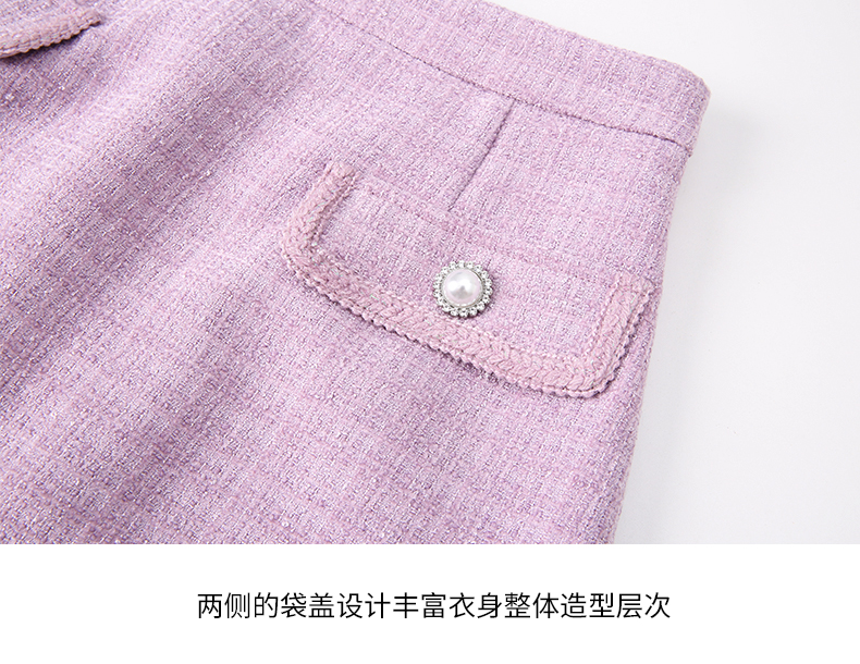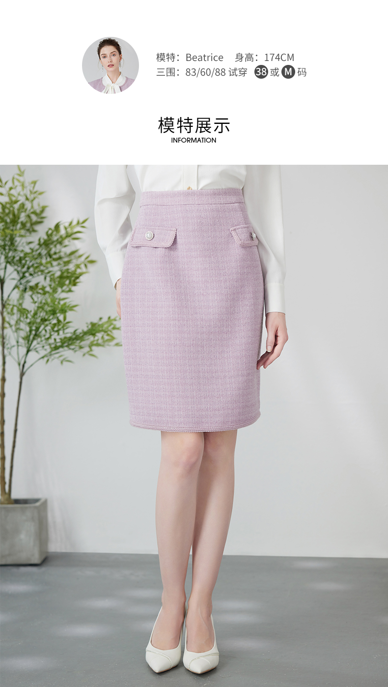 EITIE爱特爱优雅复古小香风千金气质高腰a字浅紫色半身裙24春新款A2406305