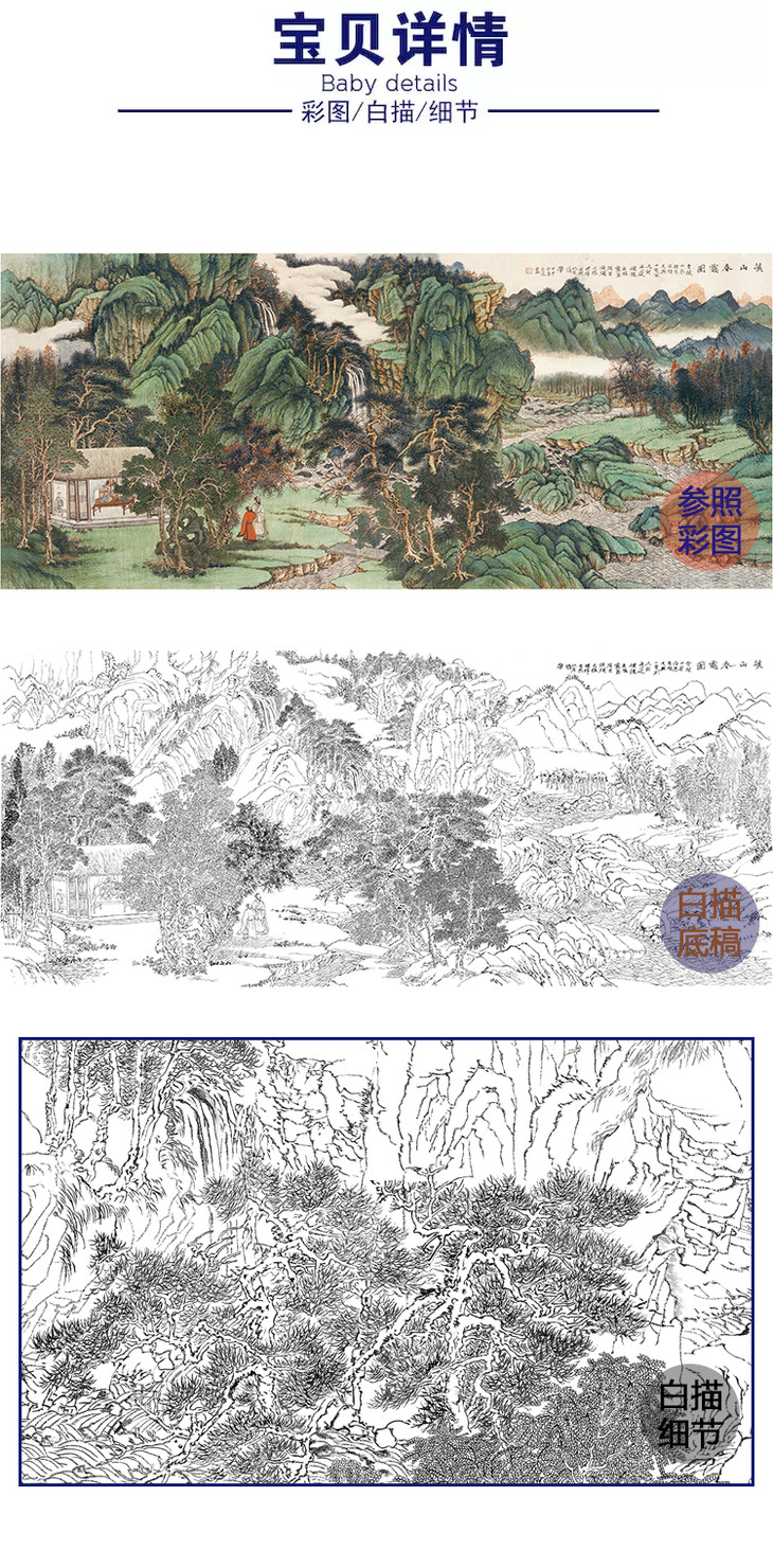 刘彦水白描底稿-横幅工笔山水人物-《溪山春霭图》-多种白描尺寸可选-LQ58