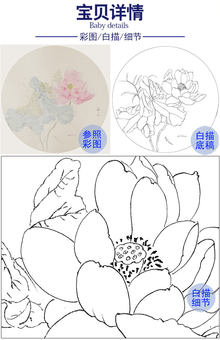 张莉莉没骨画工笔花鸟小品白描底稿 ZA36