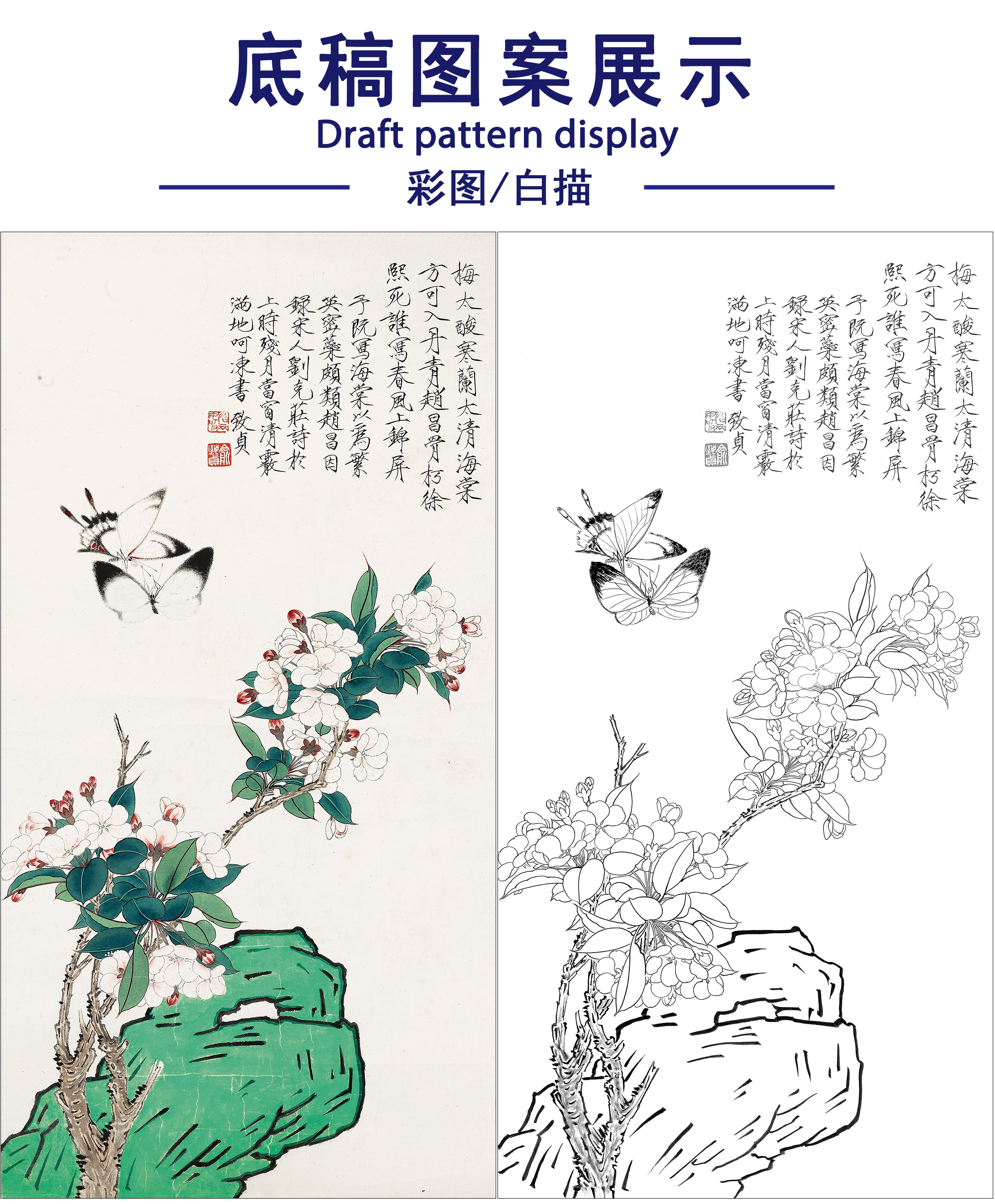 俞致贞花鸟工笔画白描底稿《繁英密蕊》临摹勾线高清打印稿ZZ72