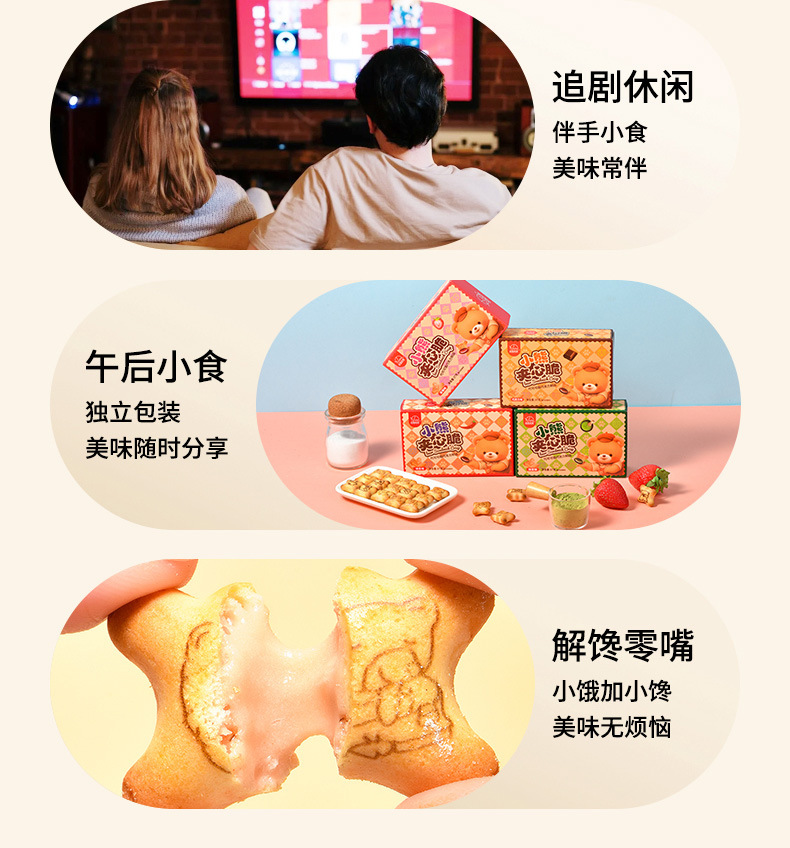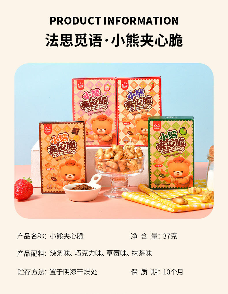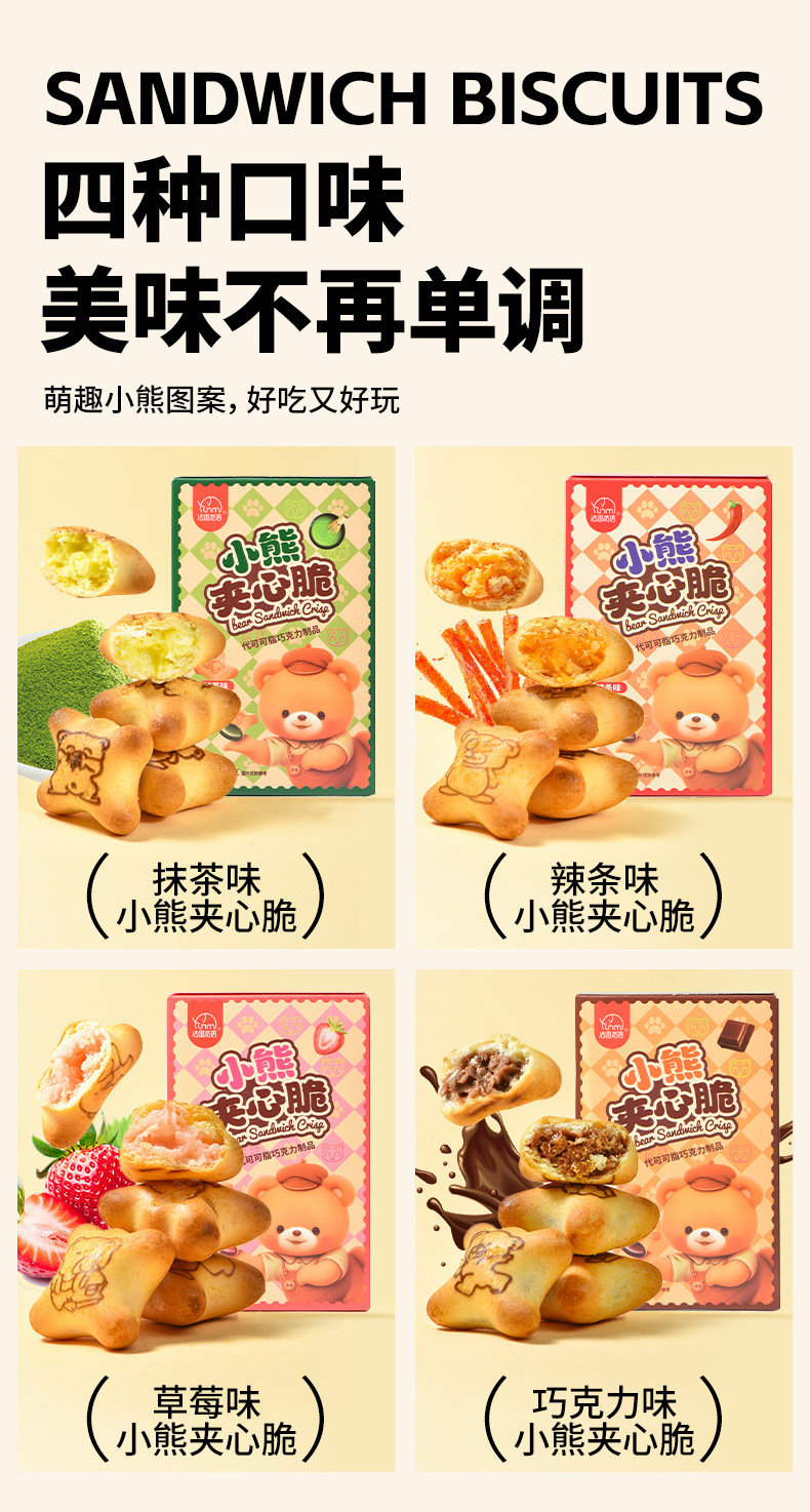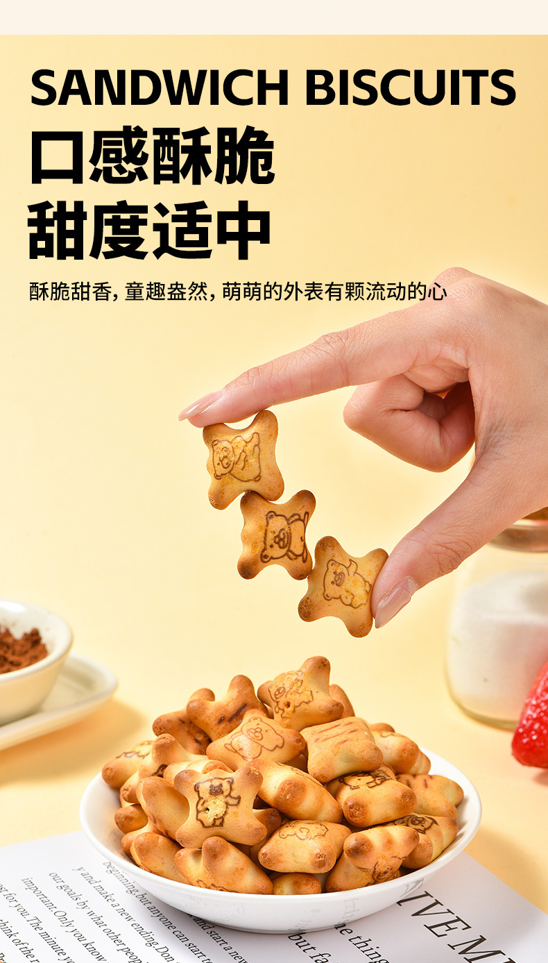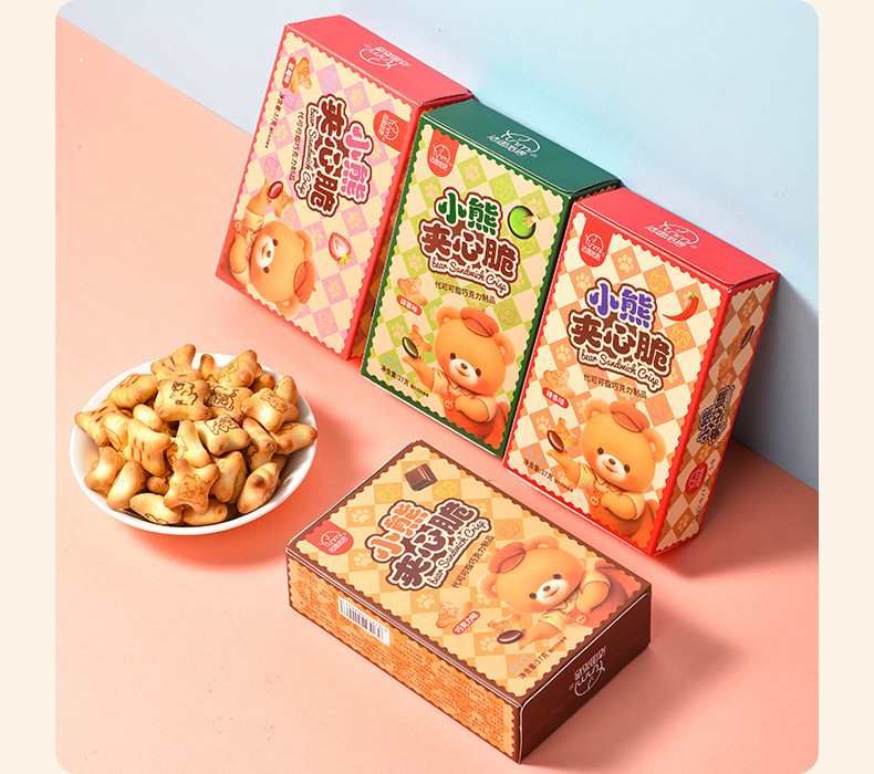 【夹心脆 + 注心双重口感】法思觅语小熊饼干夹心脆夹心注心饼干巧克力味草莓味休闲零食。xb