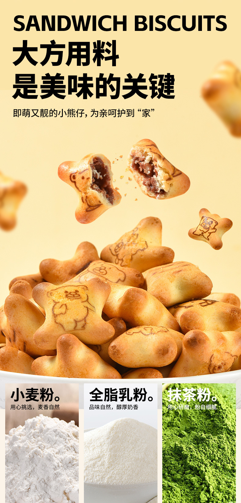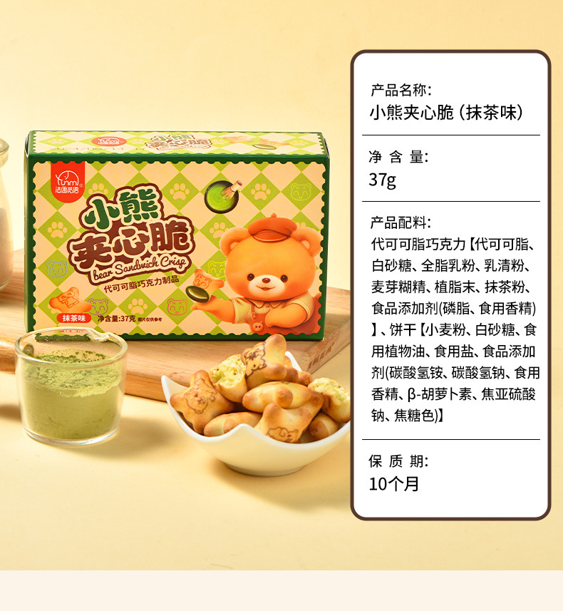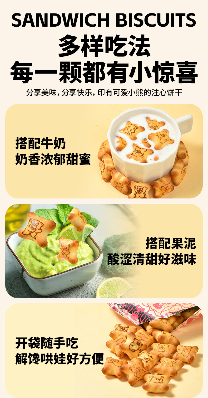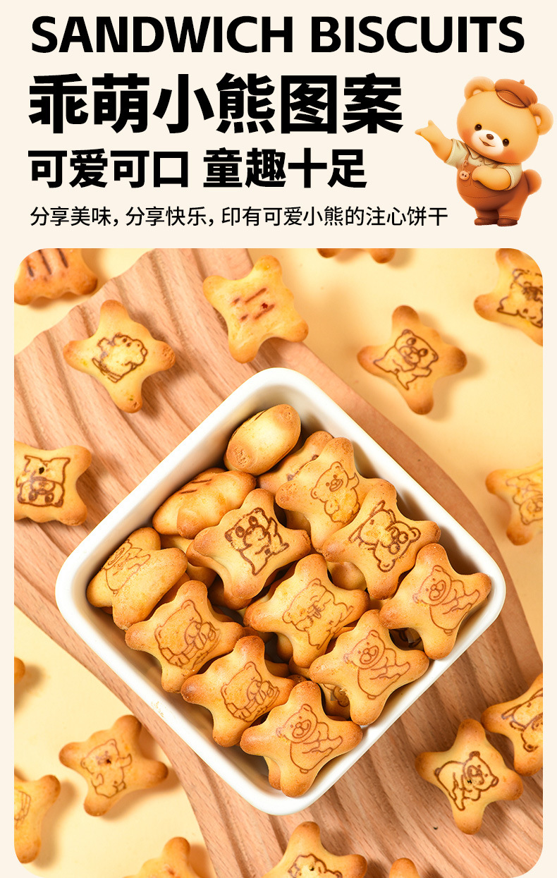 【夹心脆 + 注心双重口感】法思觅语小熊饼干夹心脆夹心注心饼干巧克力味草莓味休闲零食。xb