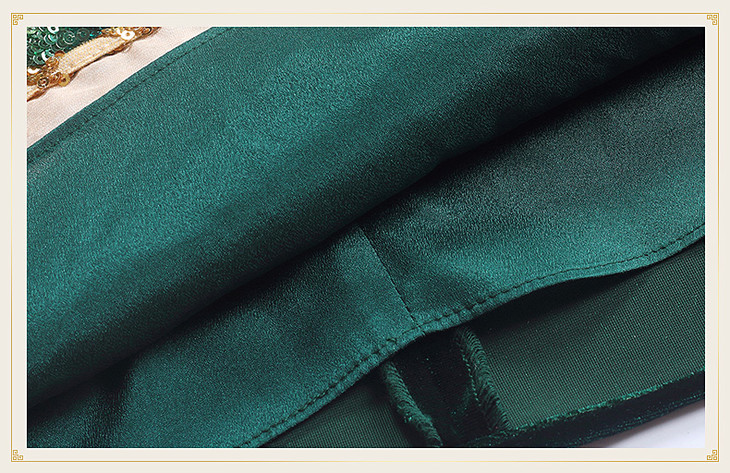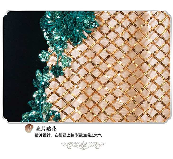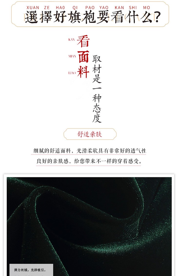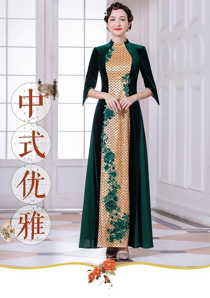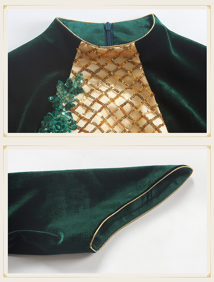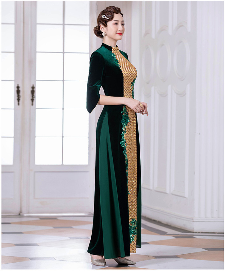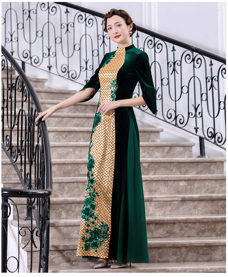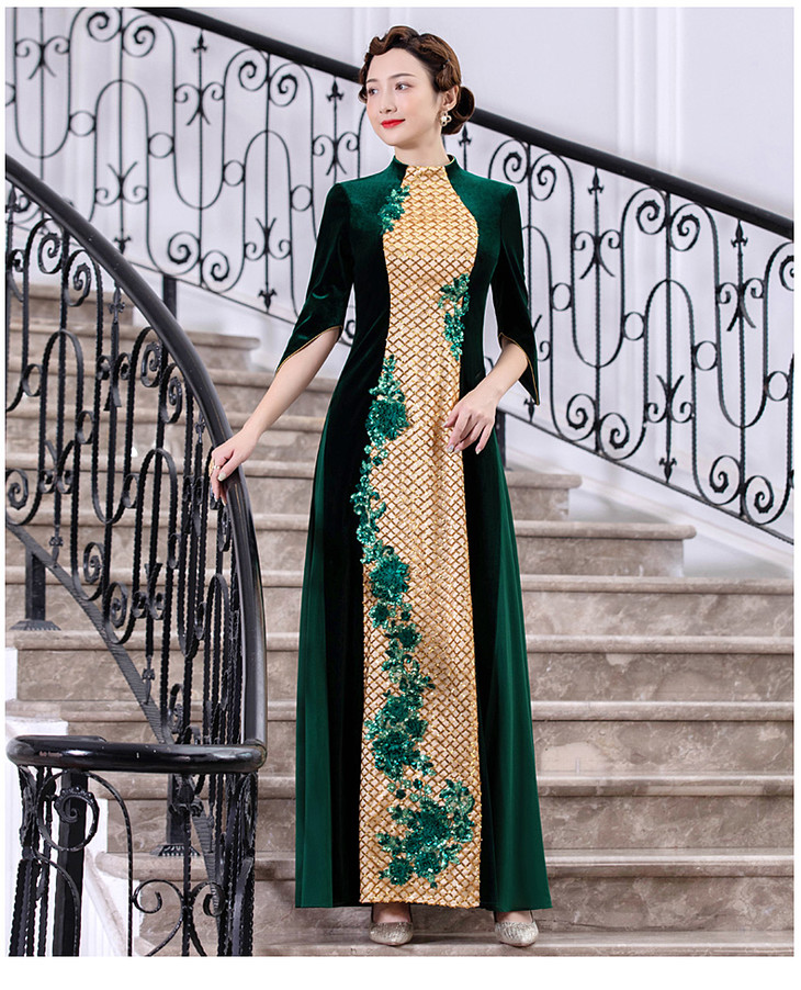 DLQ-A3137新款高端优雅气质修身立领七分袖长款丝绒绣花礼服裙