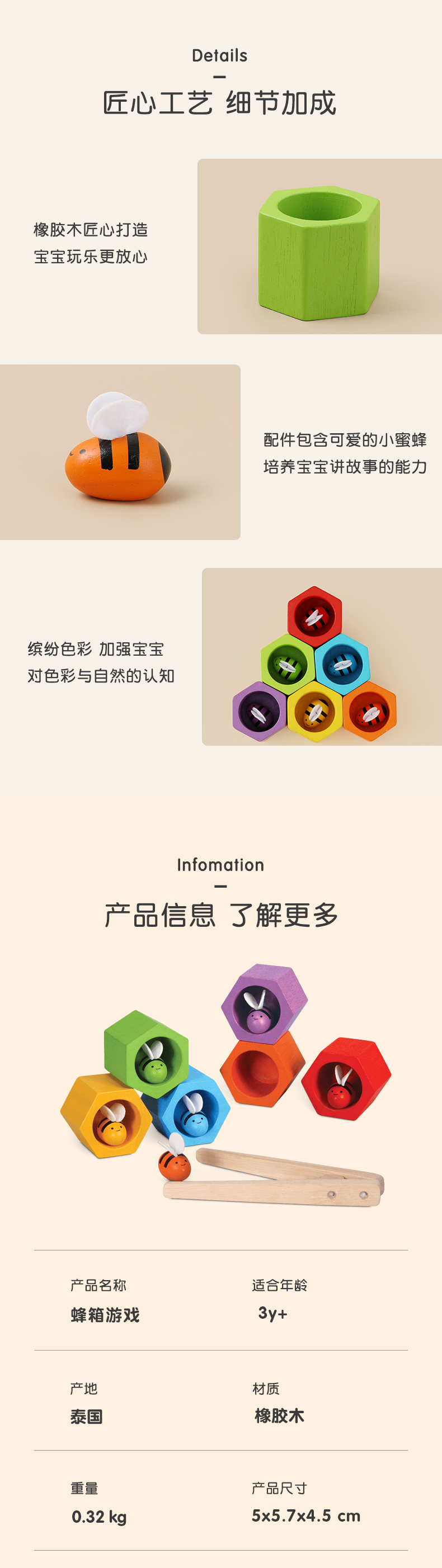 【PlanToys】原装进口益智早教配对儿童木制玩具 4125蜂箱游戏