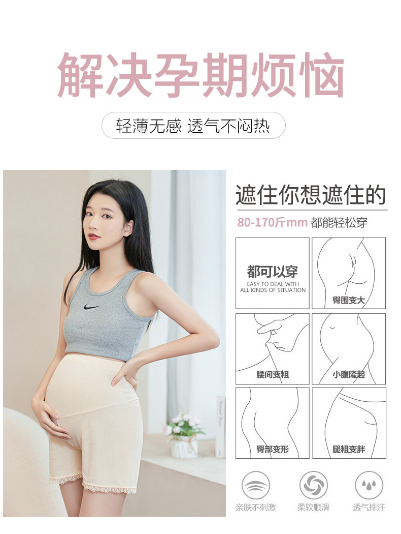 【高腰托腹!冰丝孕妇安全裤】冰丝孕妇安全裤托腹,夏季超薄款,轻薄无感,透气不闷热,宽松大码防走光,舒适不勒肚,减轻腰部负担,可调节腰带,短裤夏装透气打底裤