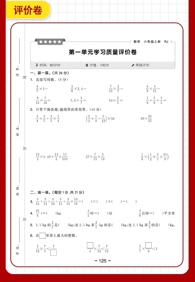 2025秋小学全品作业本上册同步练习册教辅人教版同步训练题练习册