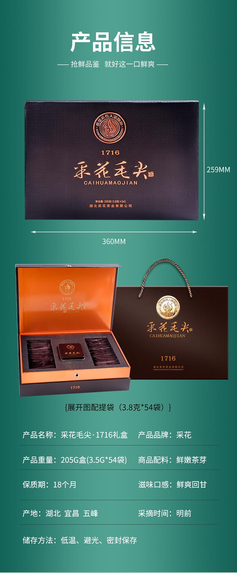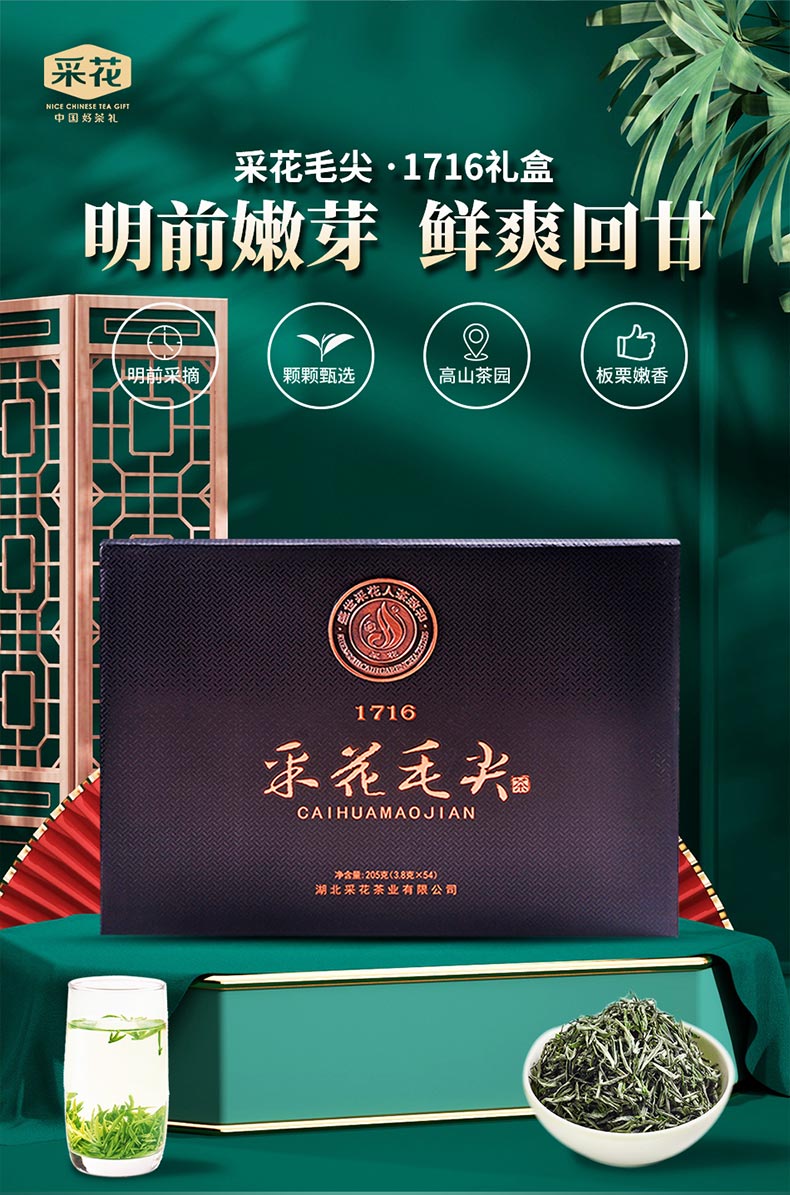 2025采花毛尖明前绿茶高端茶叶1716礼盒装205g/提 袋泡炒青茶送礼推荐