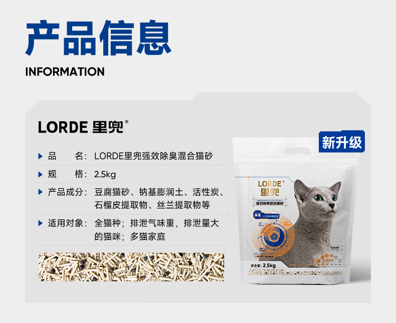 【强效除臭】LORDE里兜小黑核混合猫砂除臭豆腐砂低尘去味结团2.5kg